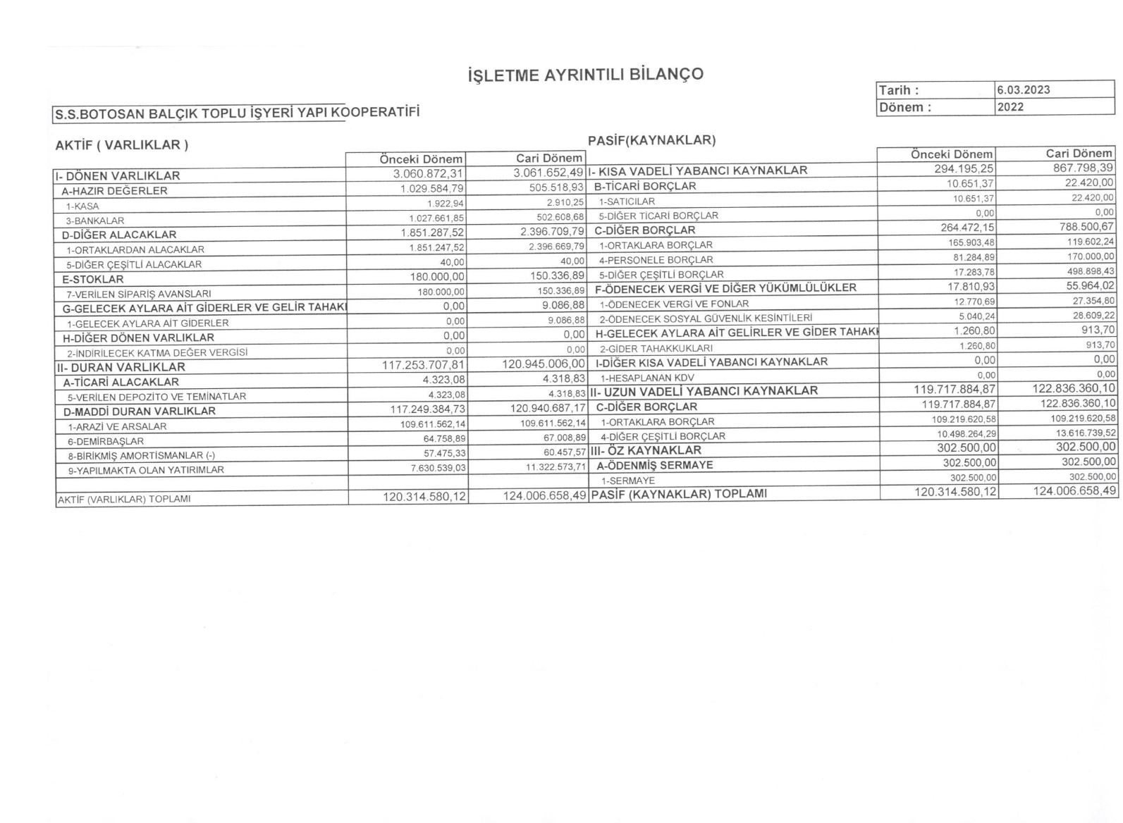 2022 Yılı Ayrıntılı Bilançosu