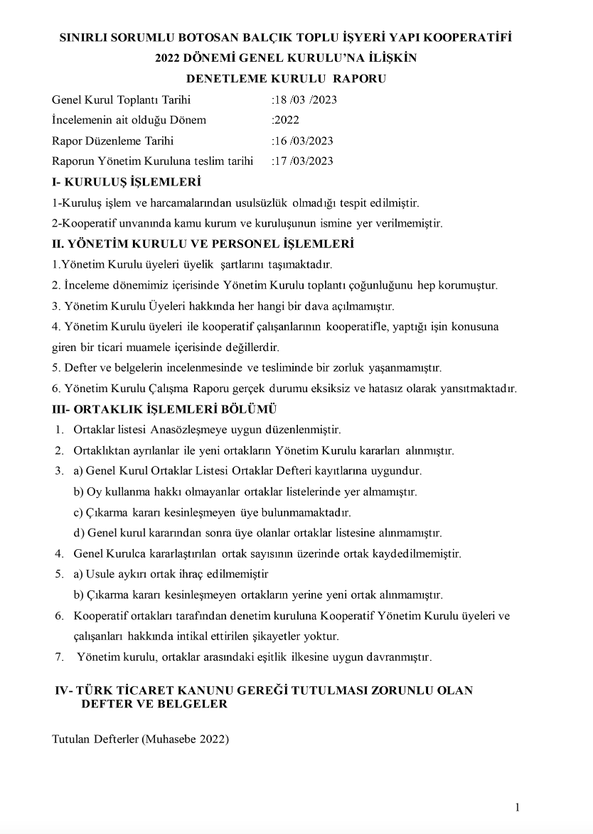 Botosan 2022 Denetim Kurulu Raporu