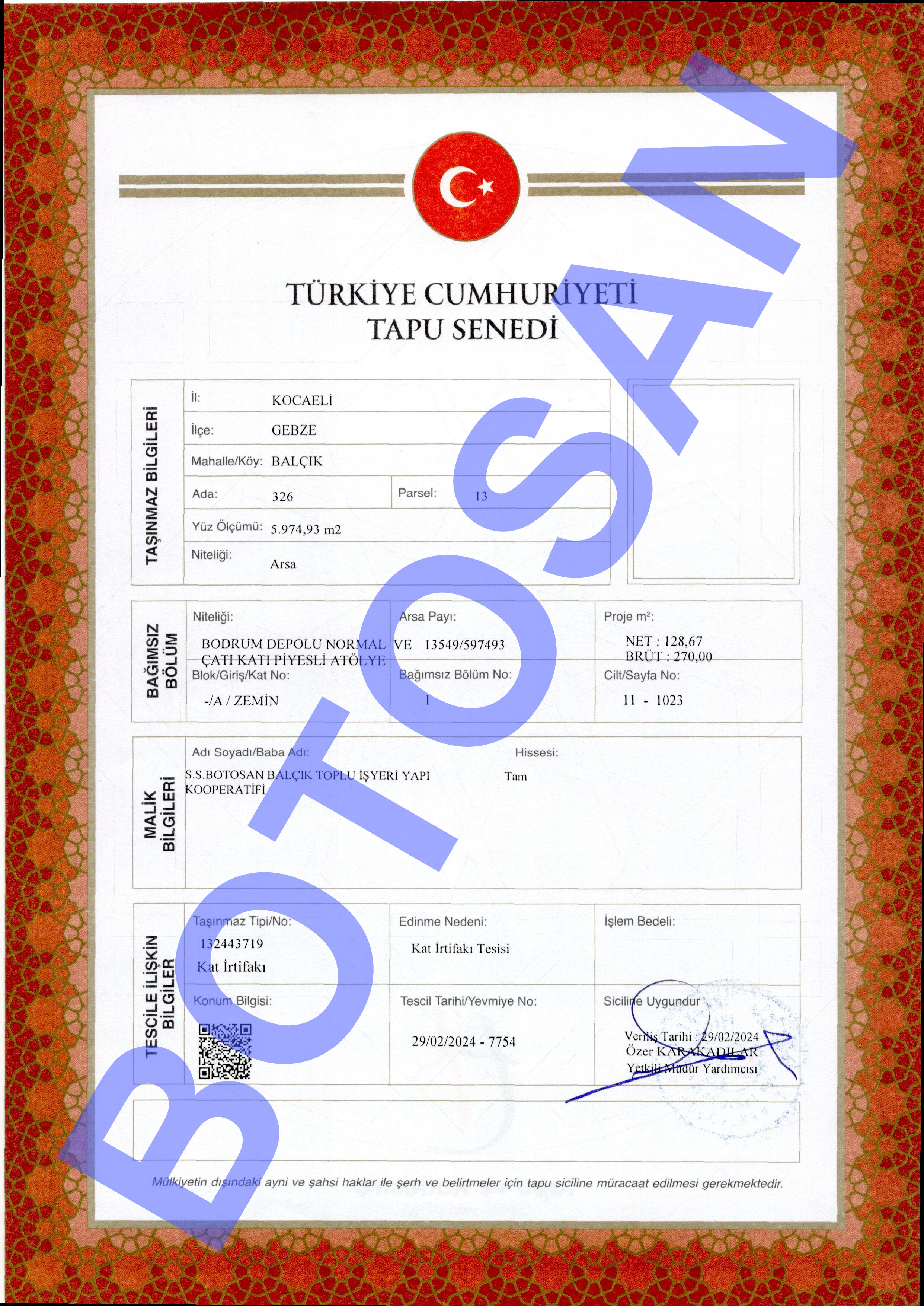 326-13 PARSEL KAT İRTİFAK TAPULARI G1