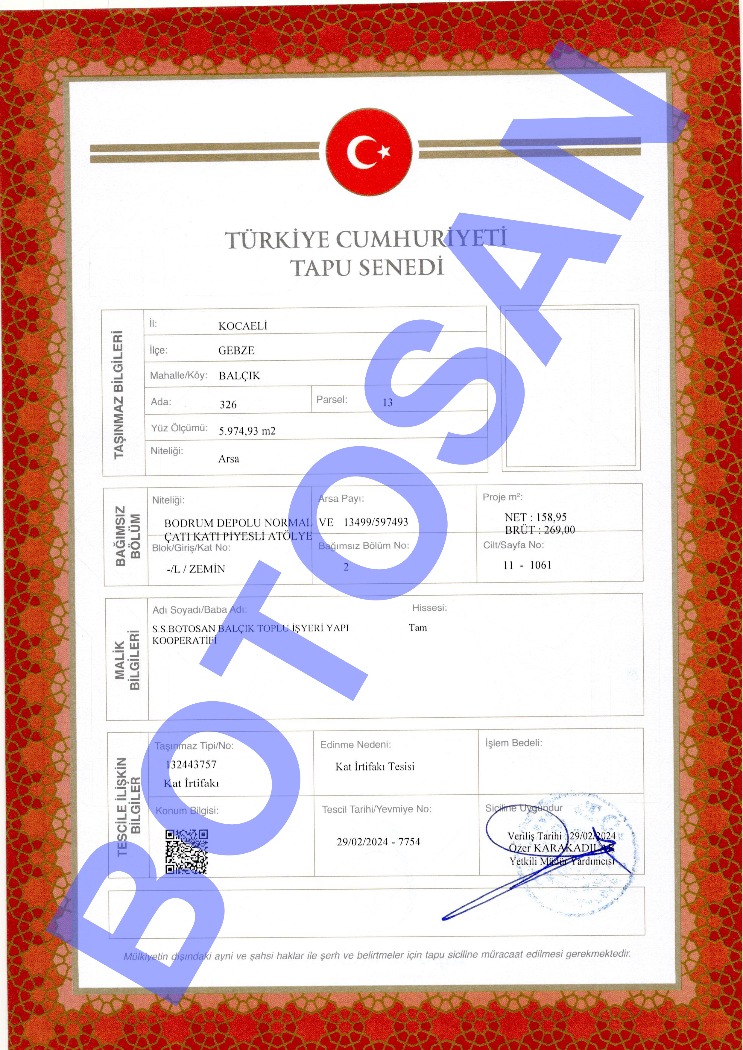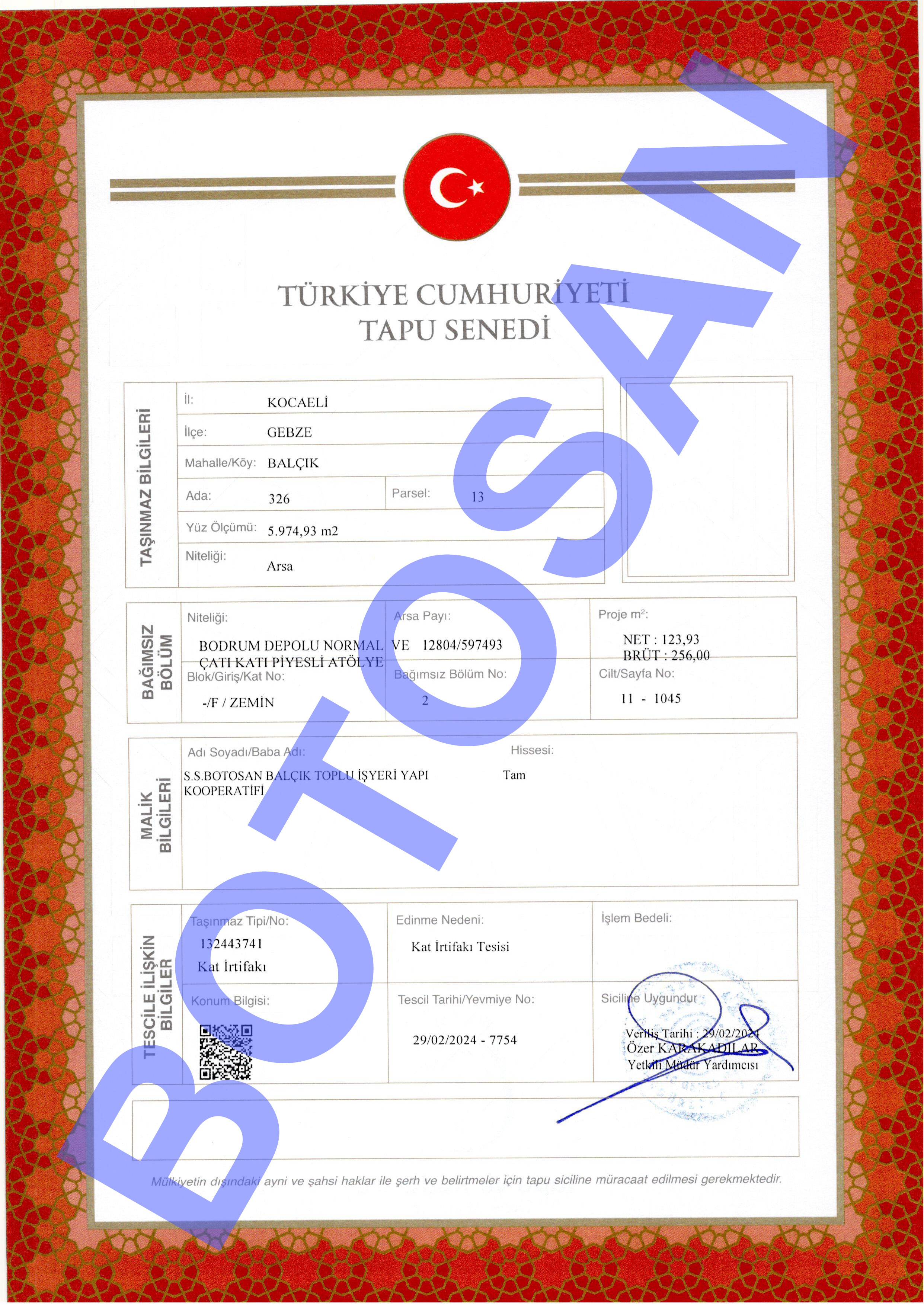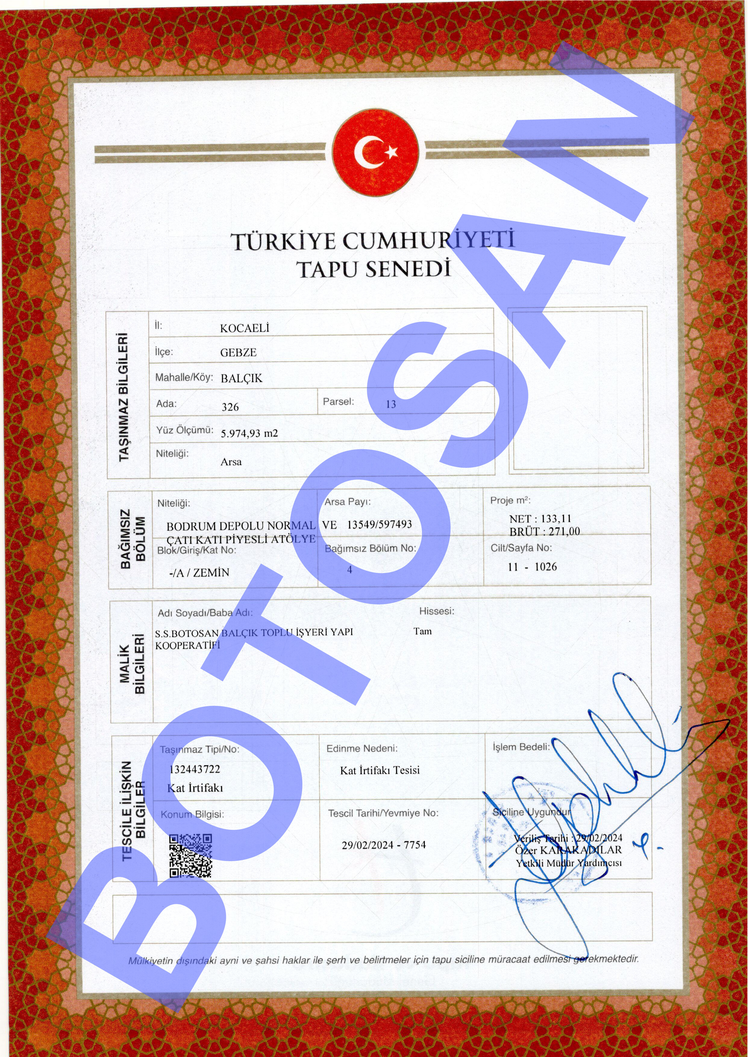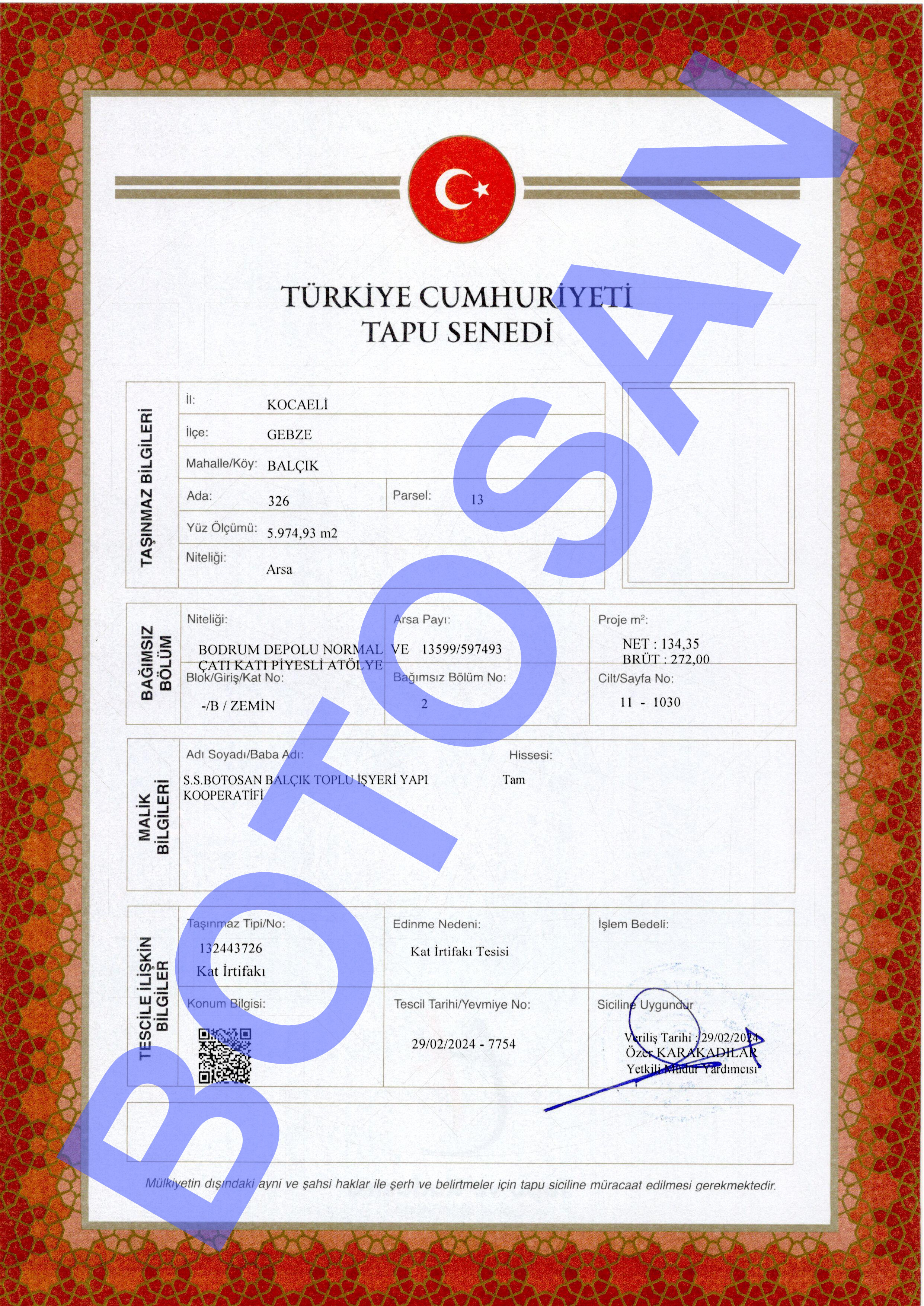 326-13 PARSEL KAT İRTİFAK TAPULARI B4
