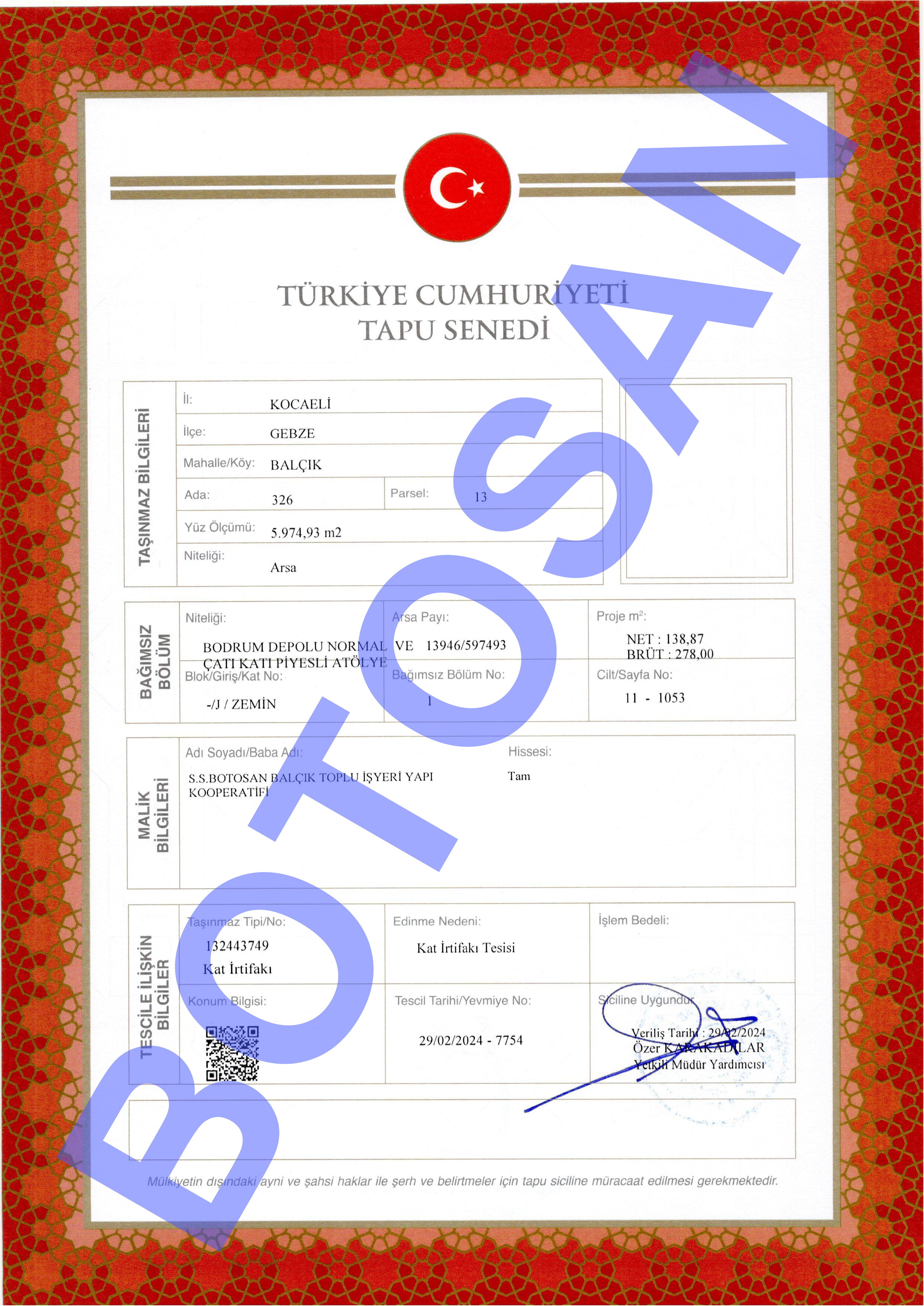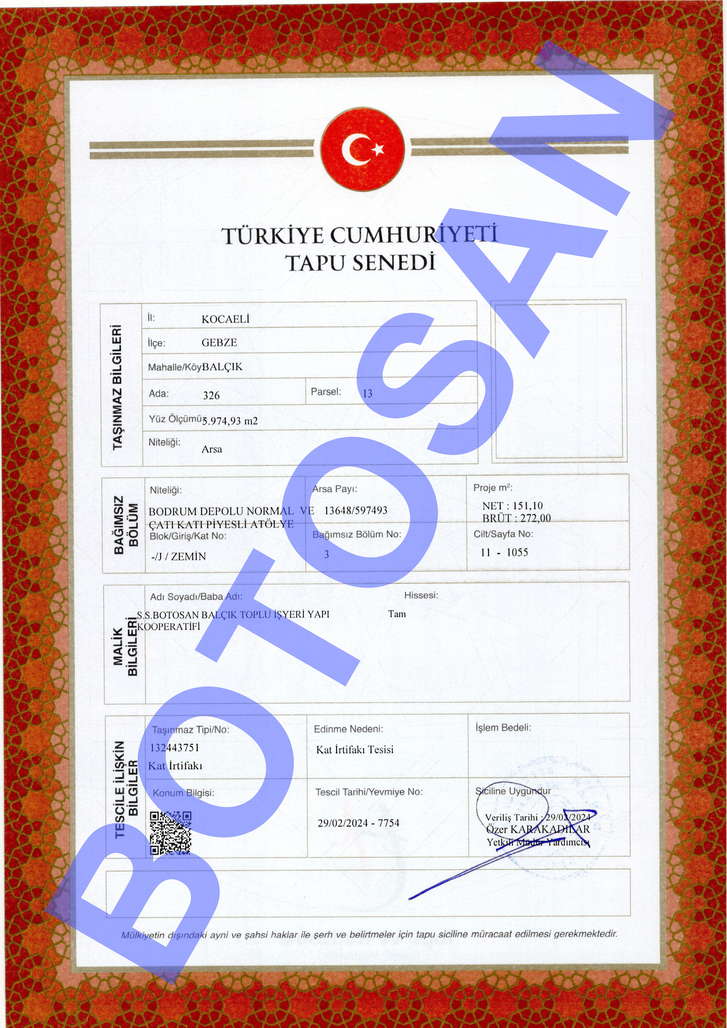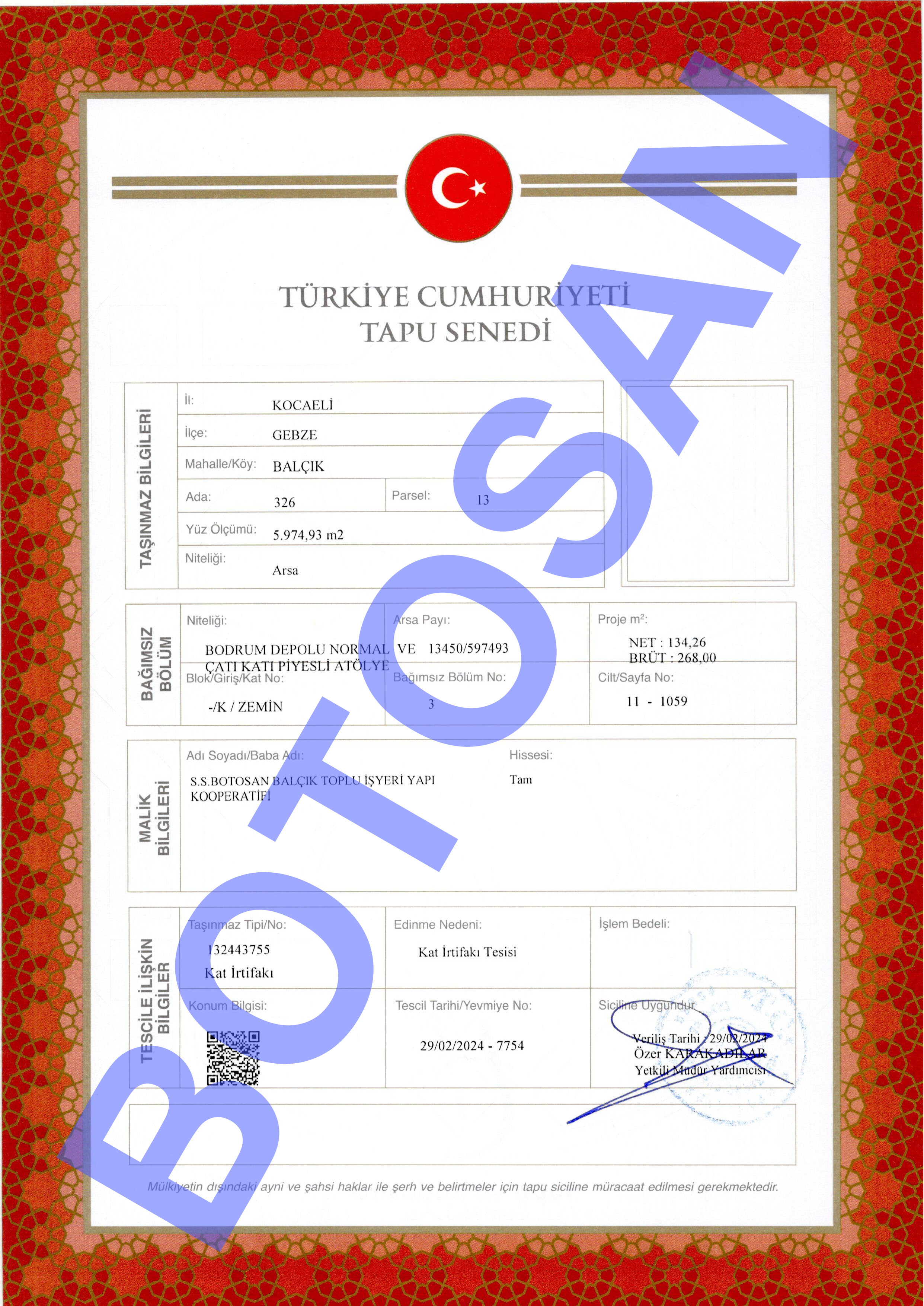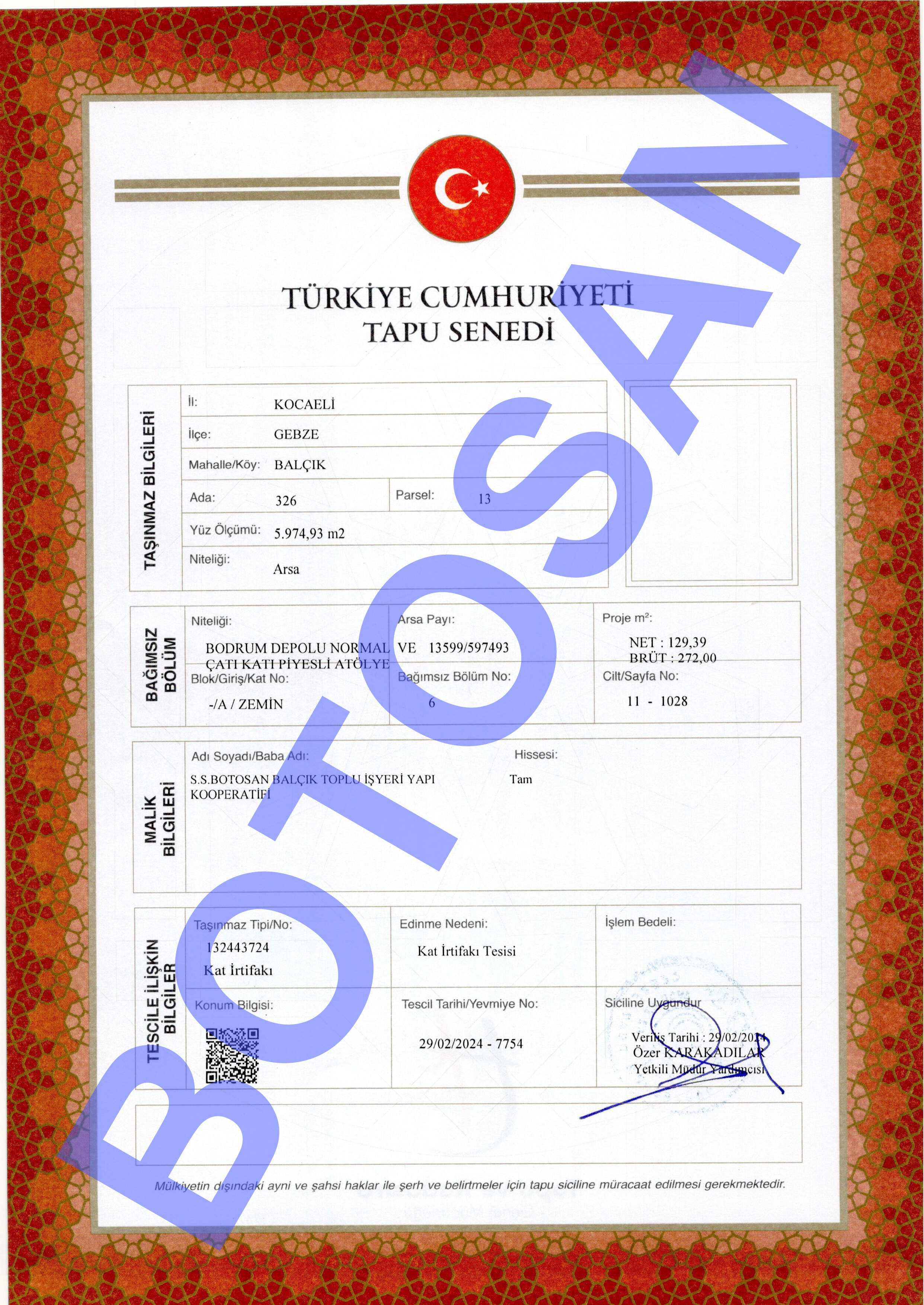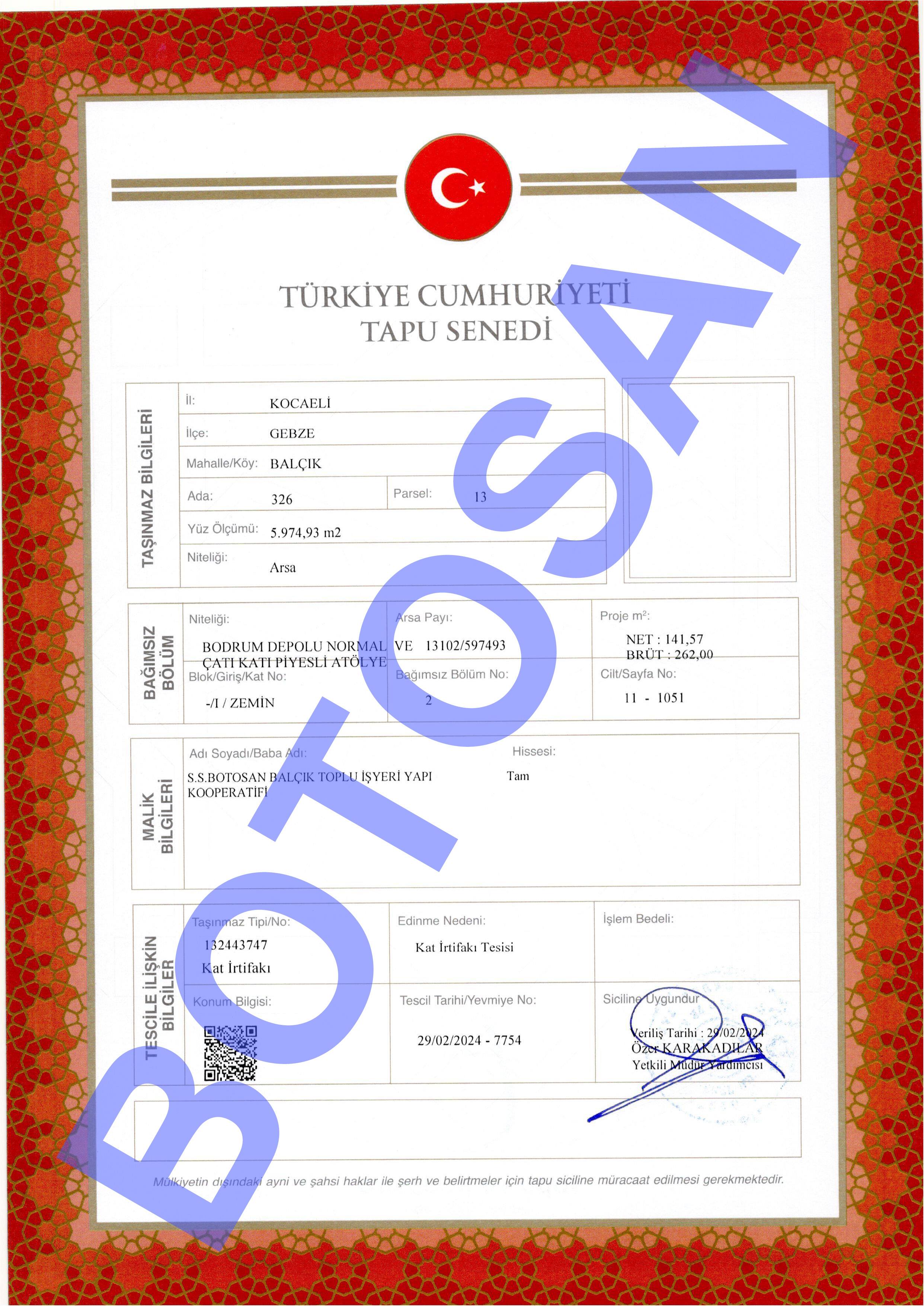 326-13 PARSEL KAT İRTİFAK TAPULARI B4
