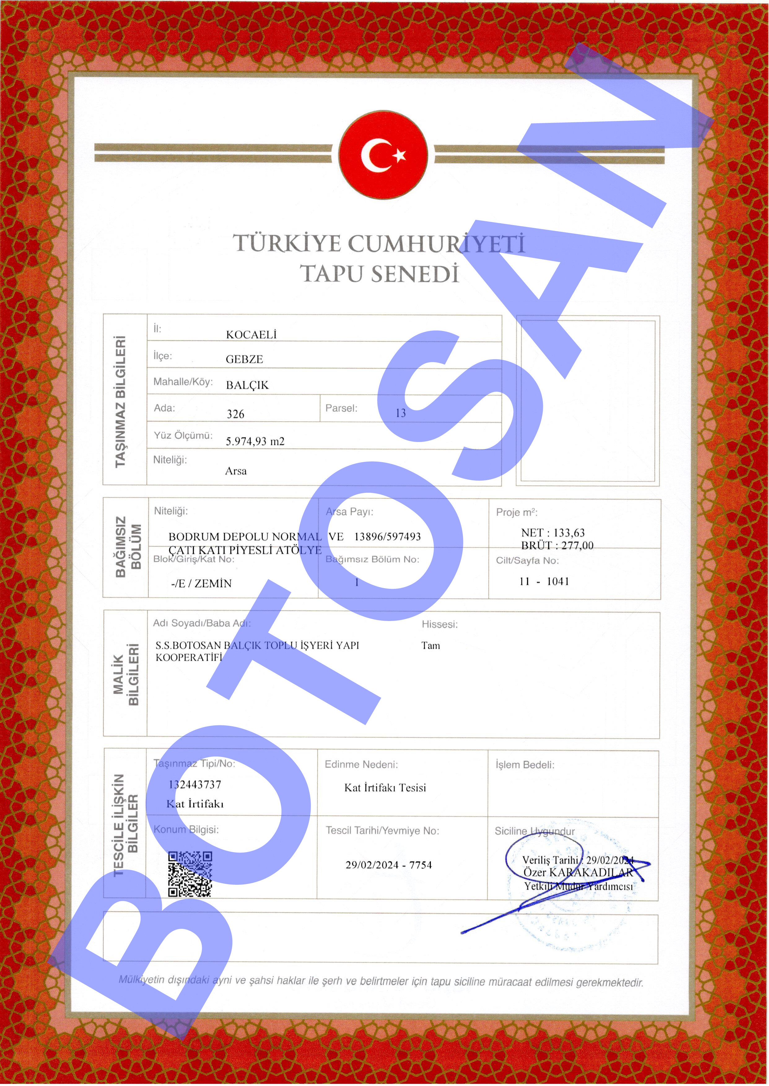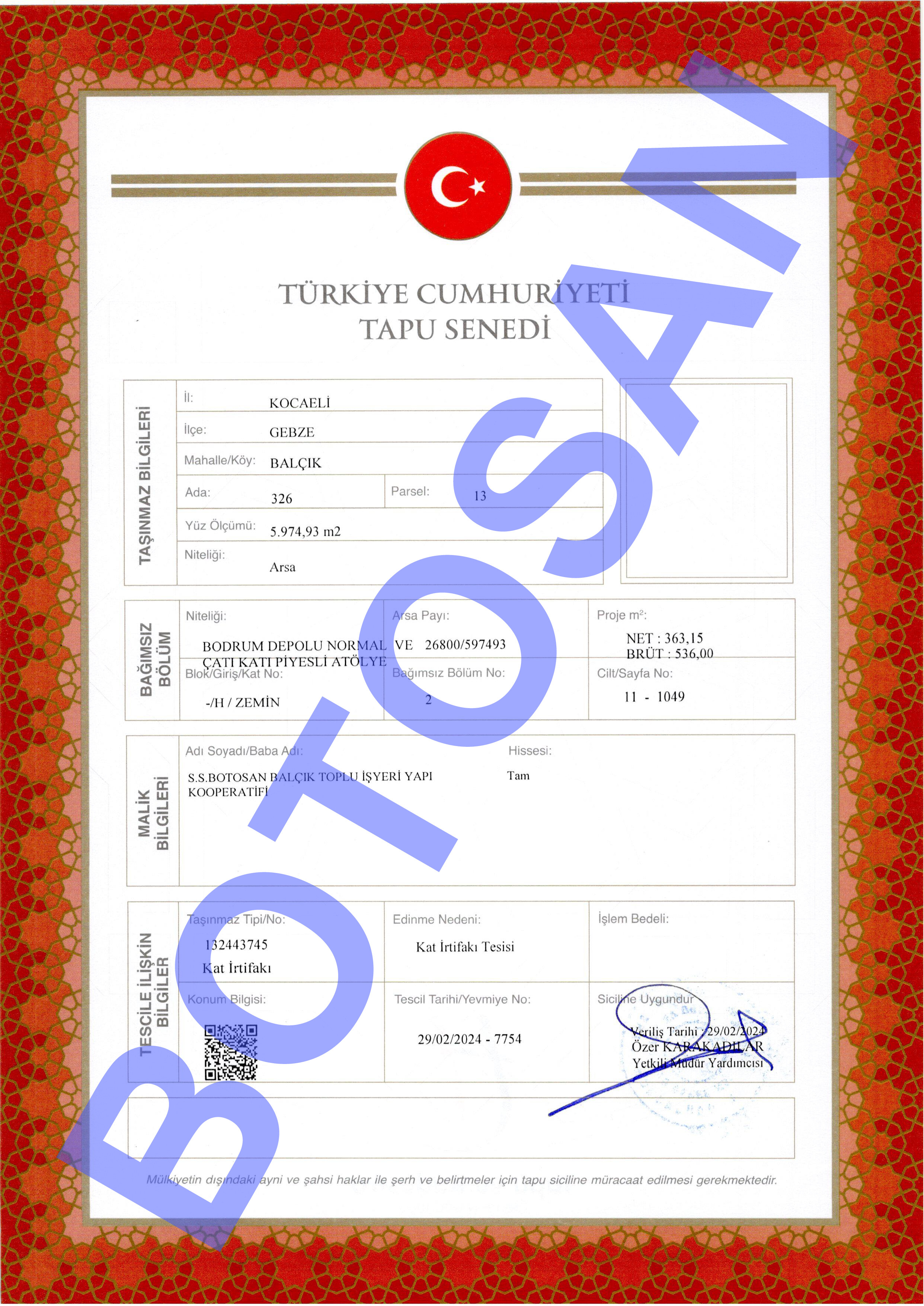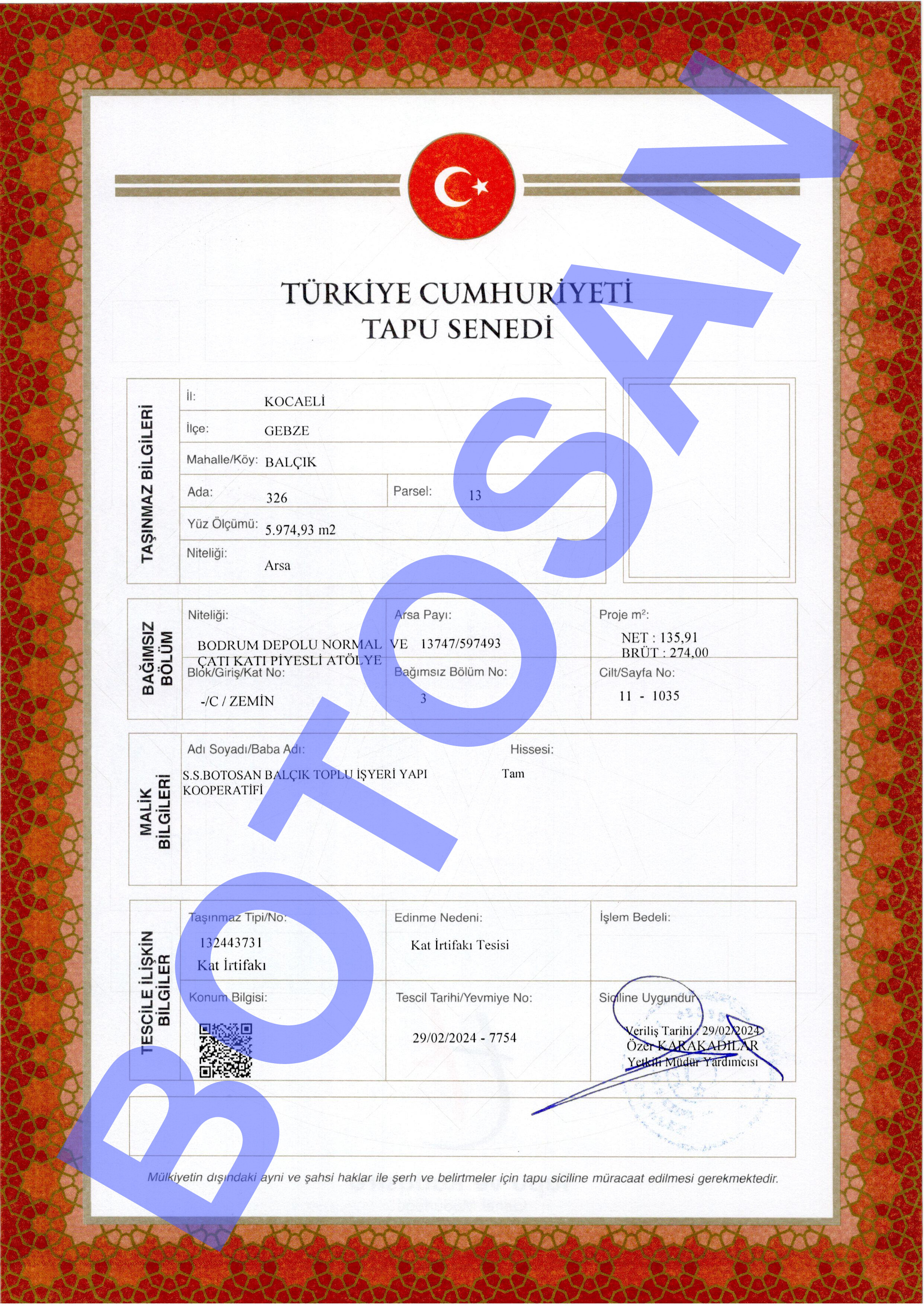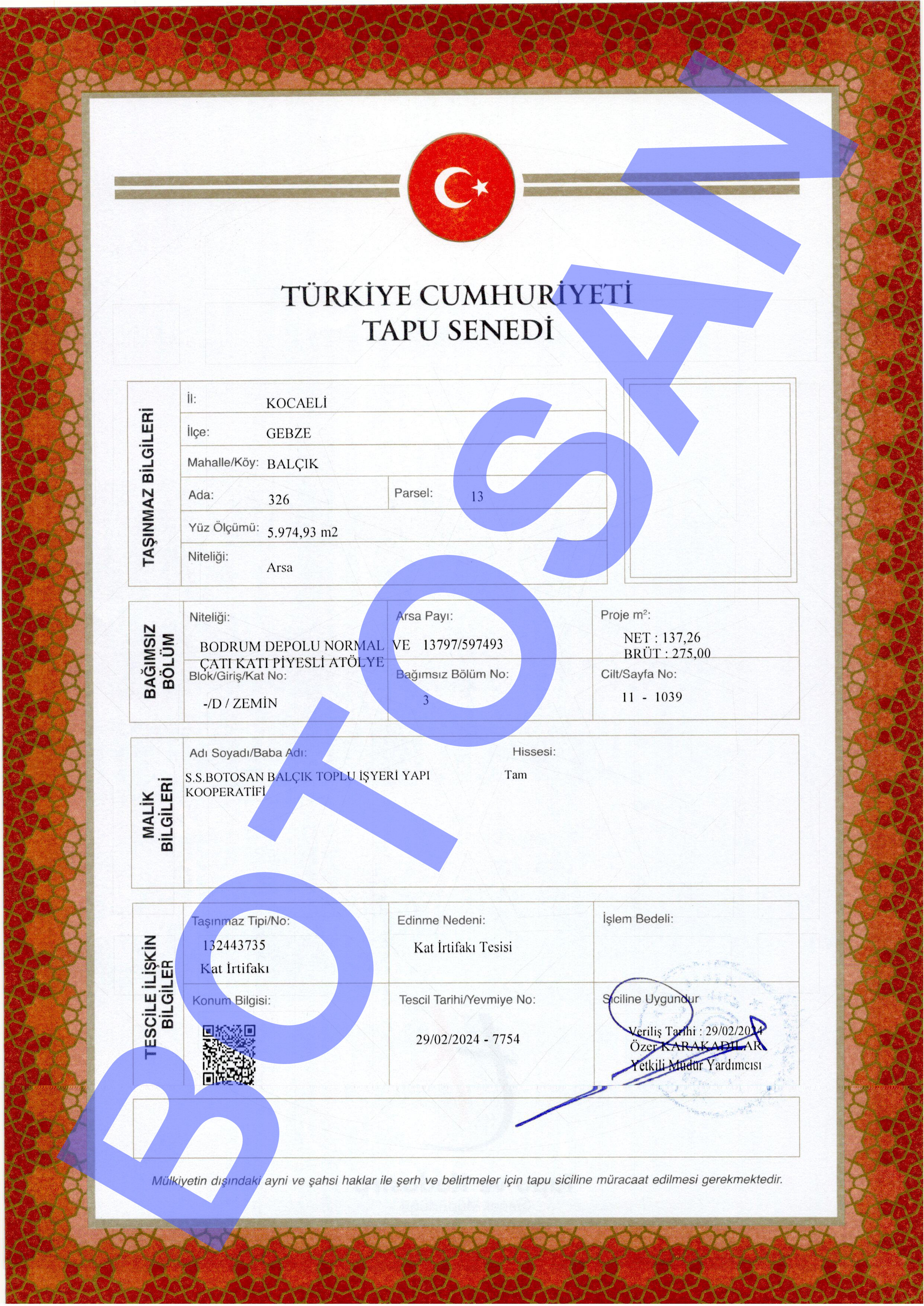 326-13 PARSEL KAT İRTİFAK TAPULARI B4