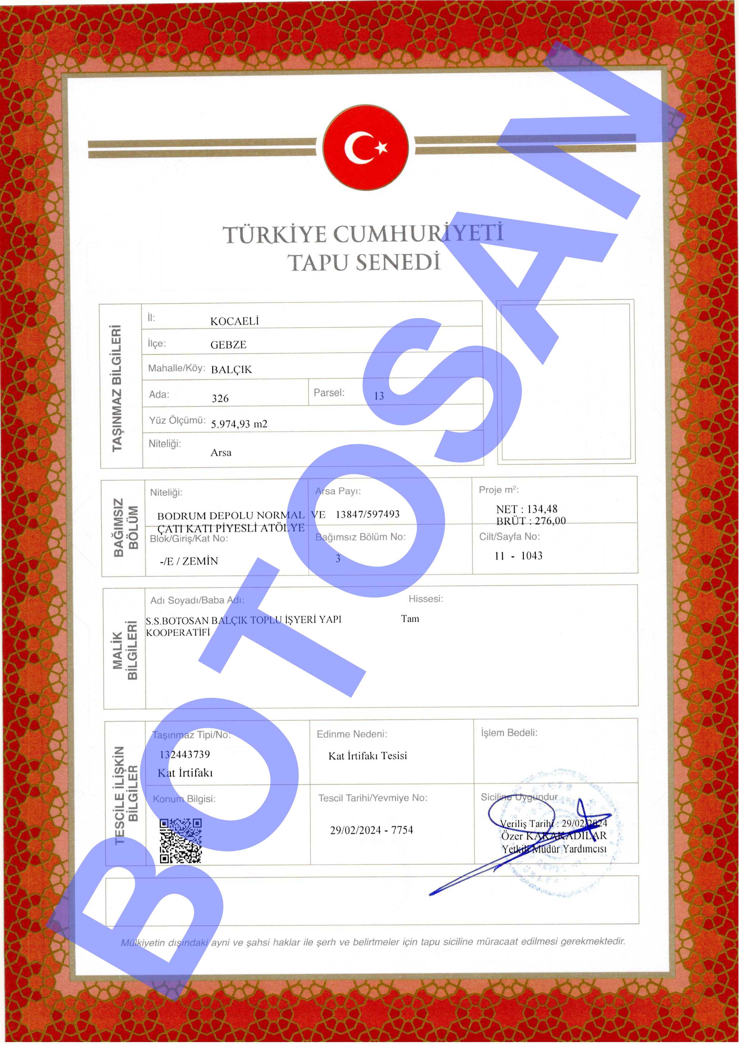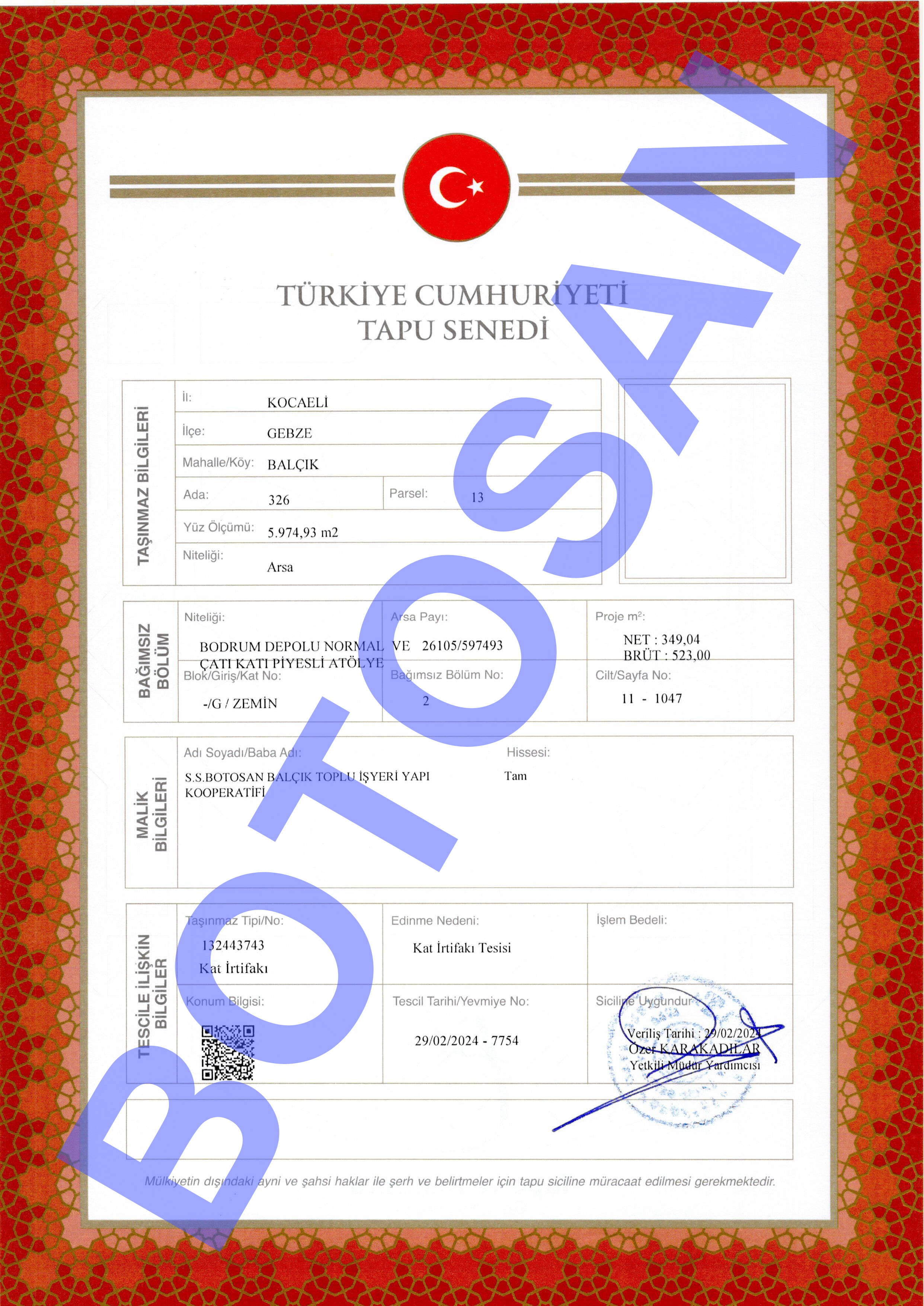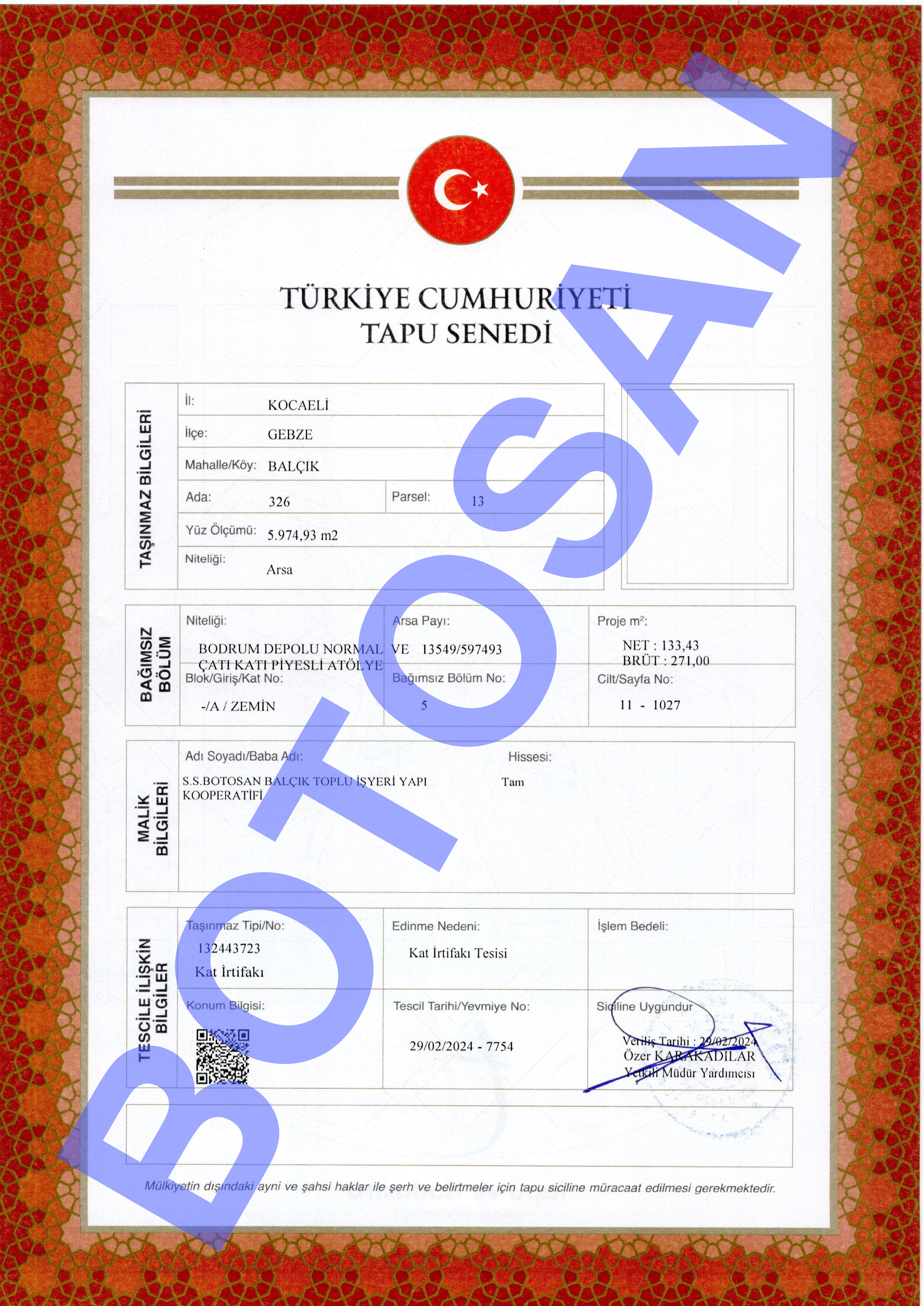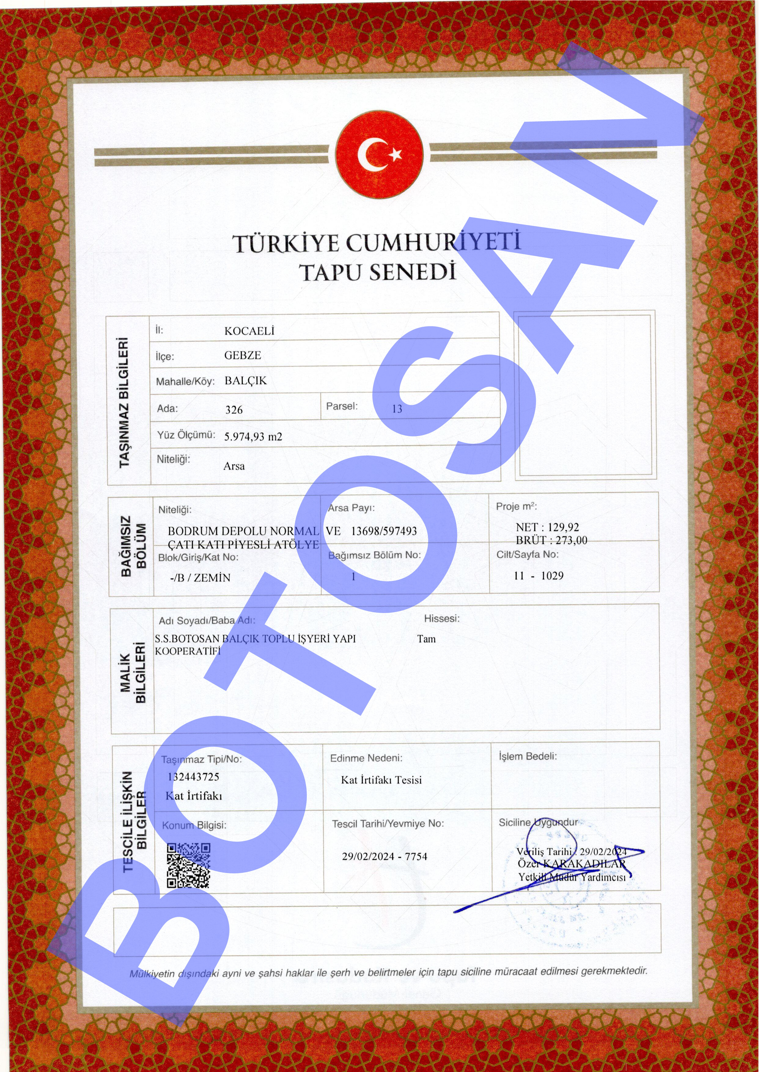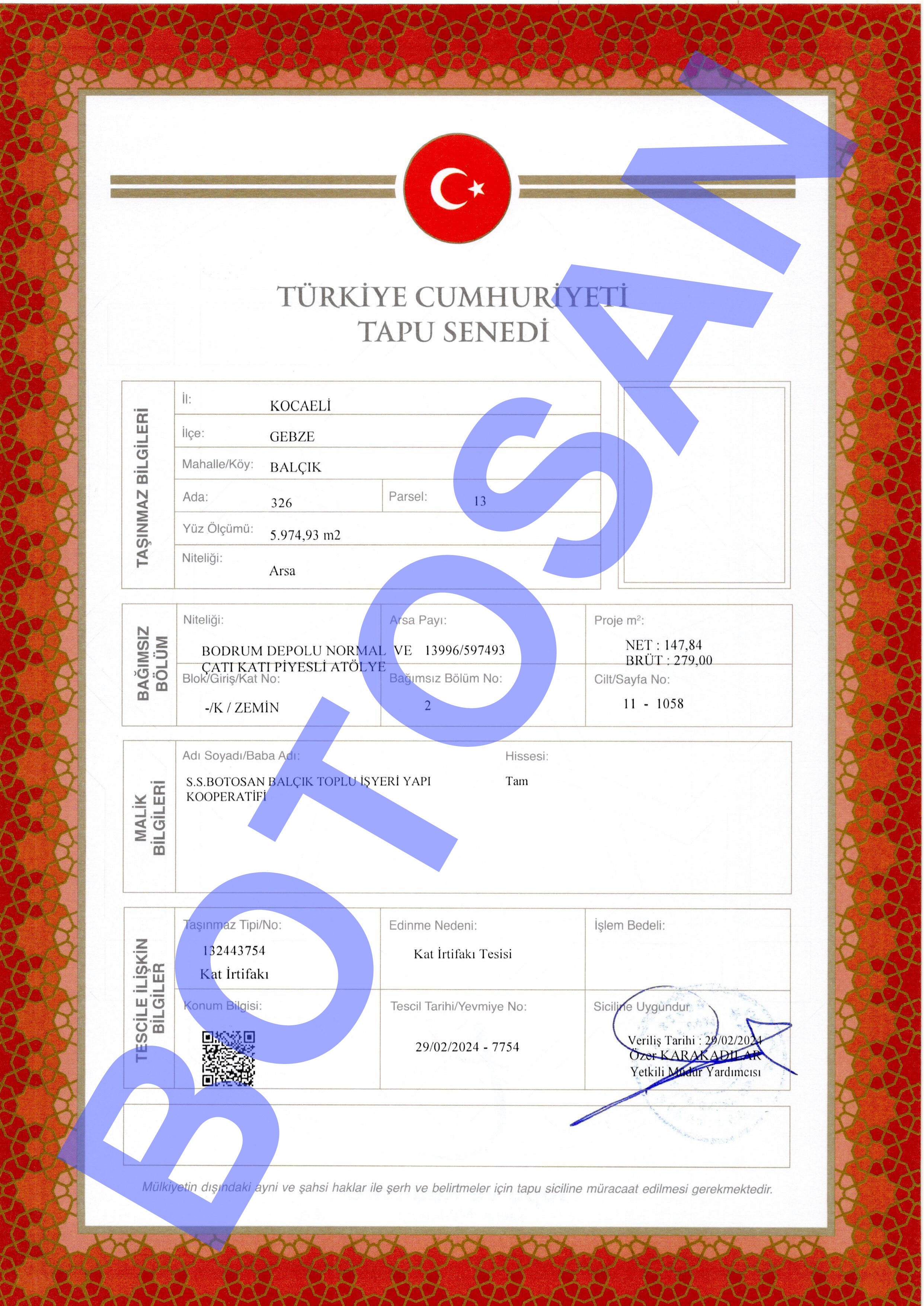 326-13 PARSEL KAT İRTİFAK TAPULARI B4