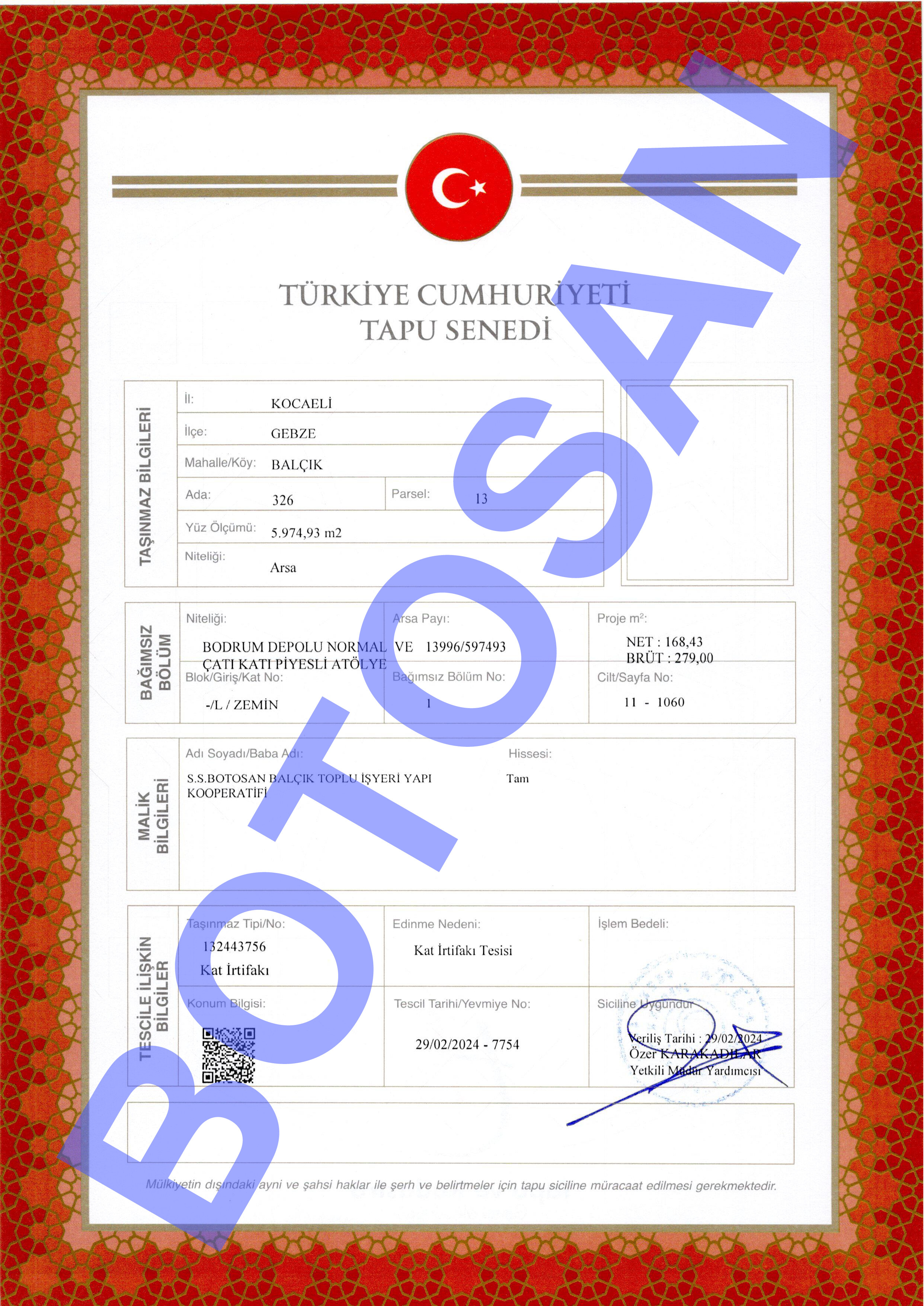 326-13 PARSEL KAT İRTİFAK TAPULARI A5