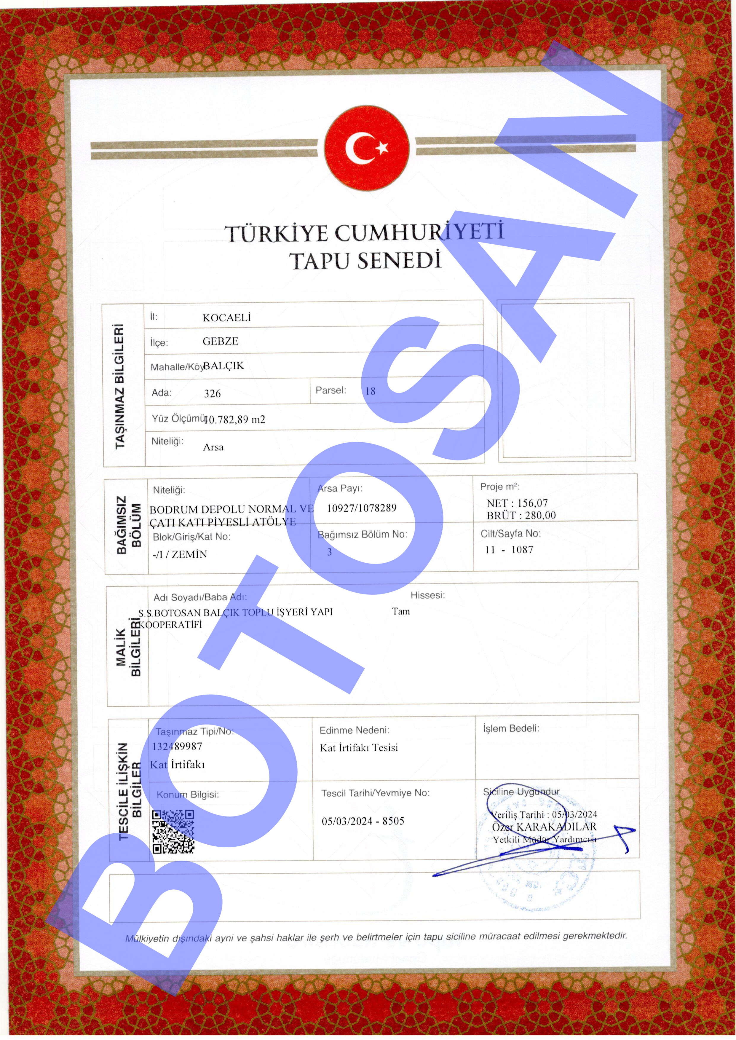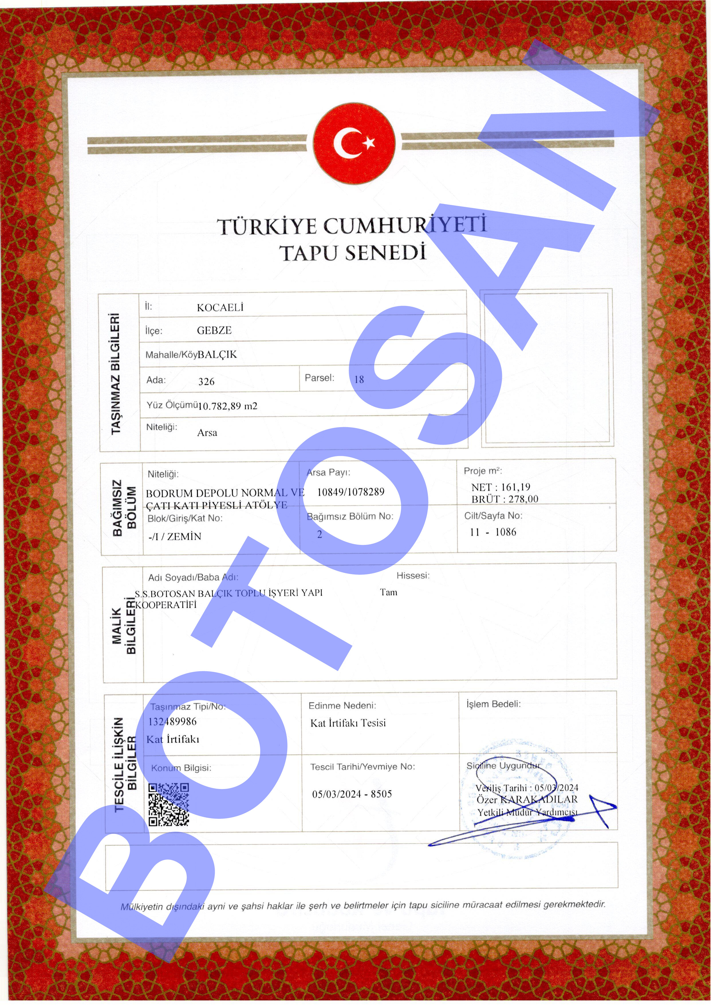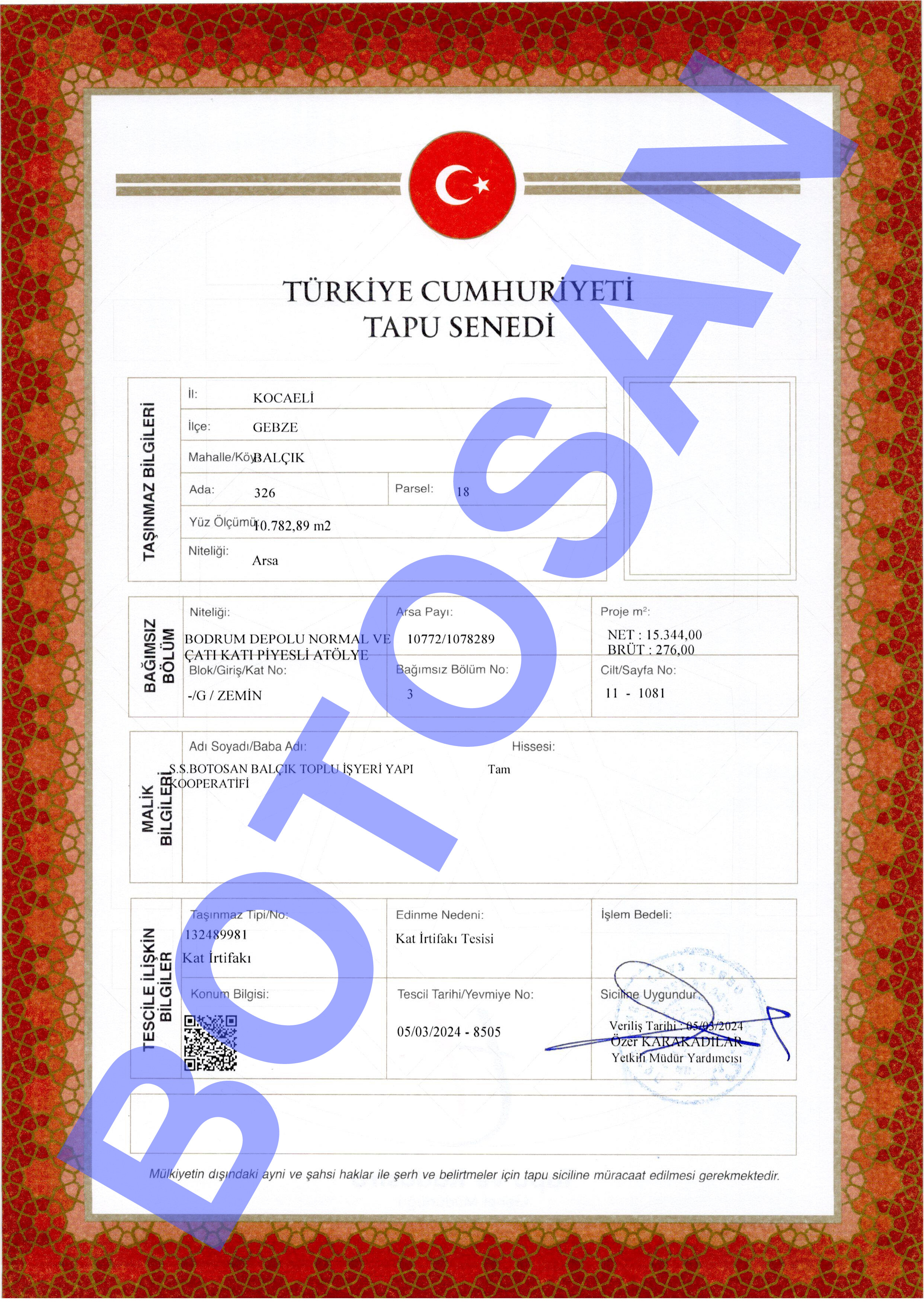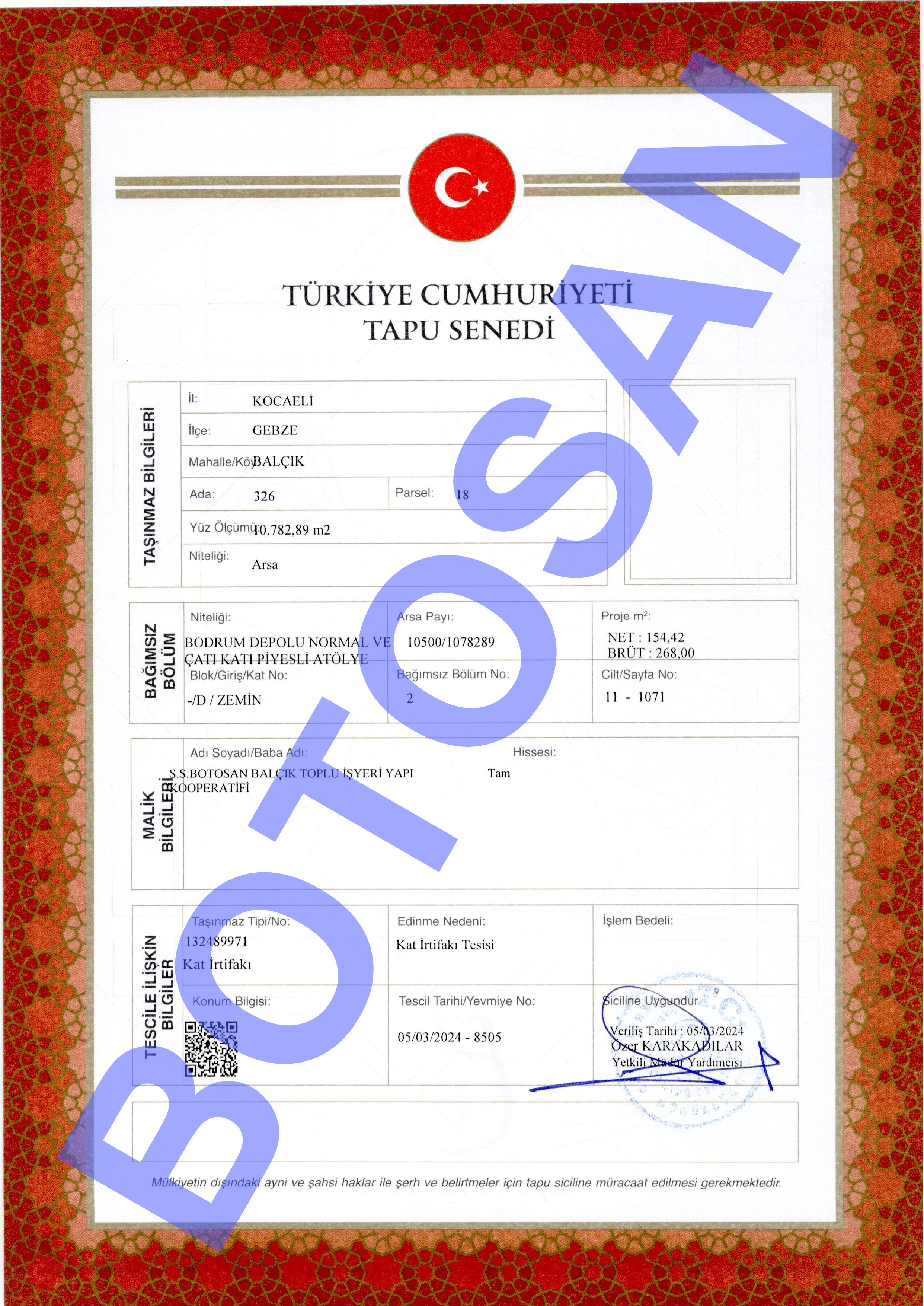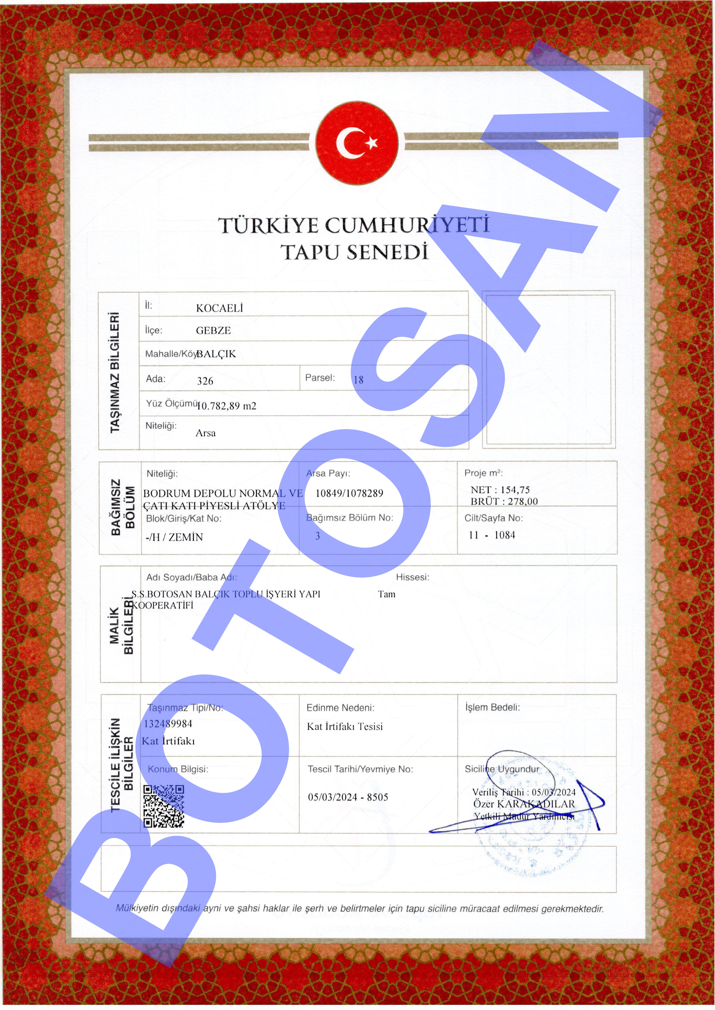 326-18 PARSEL KAT İRTİFAK TAPULARI G3