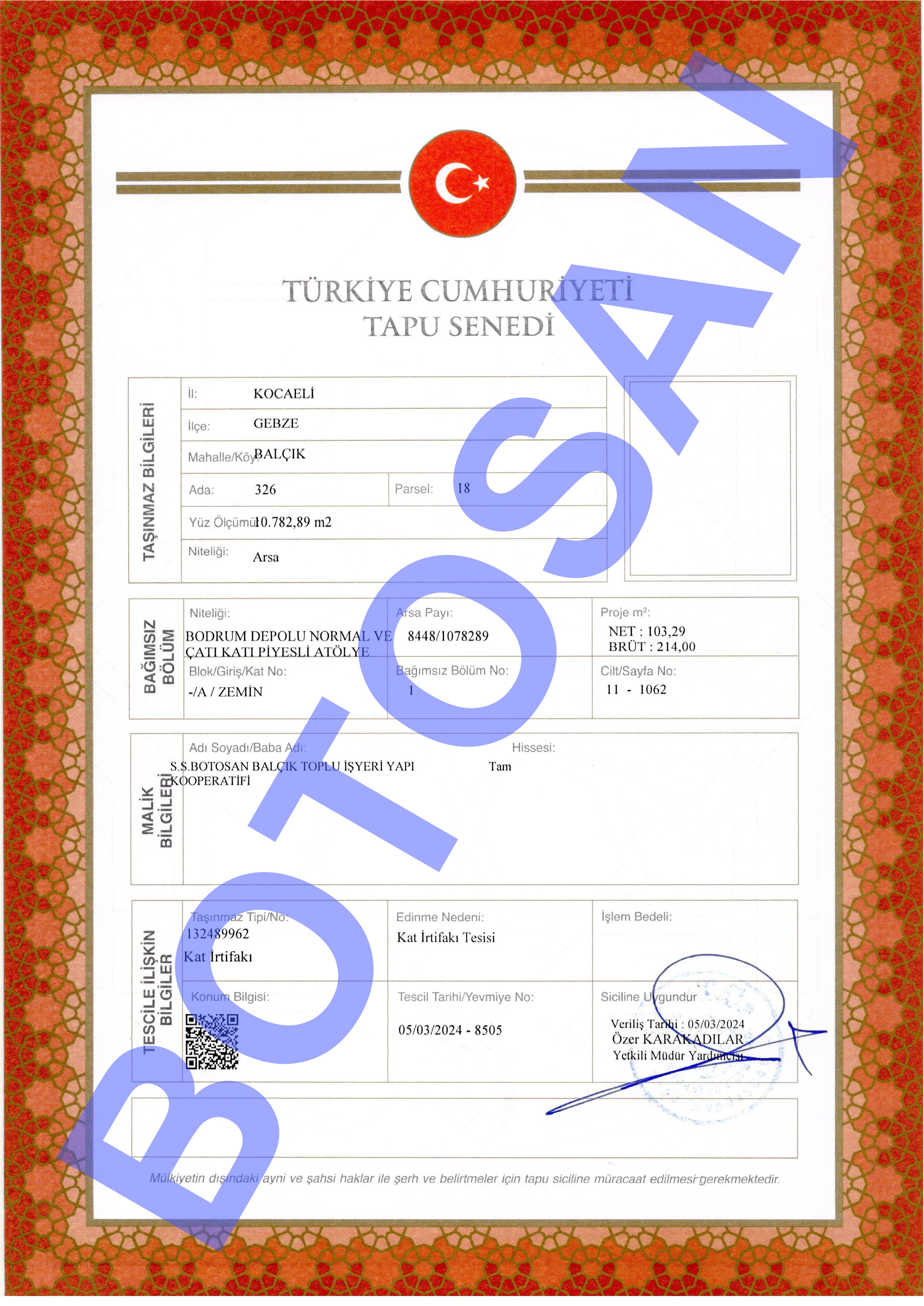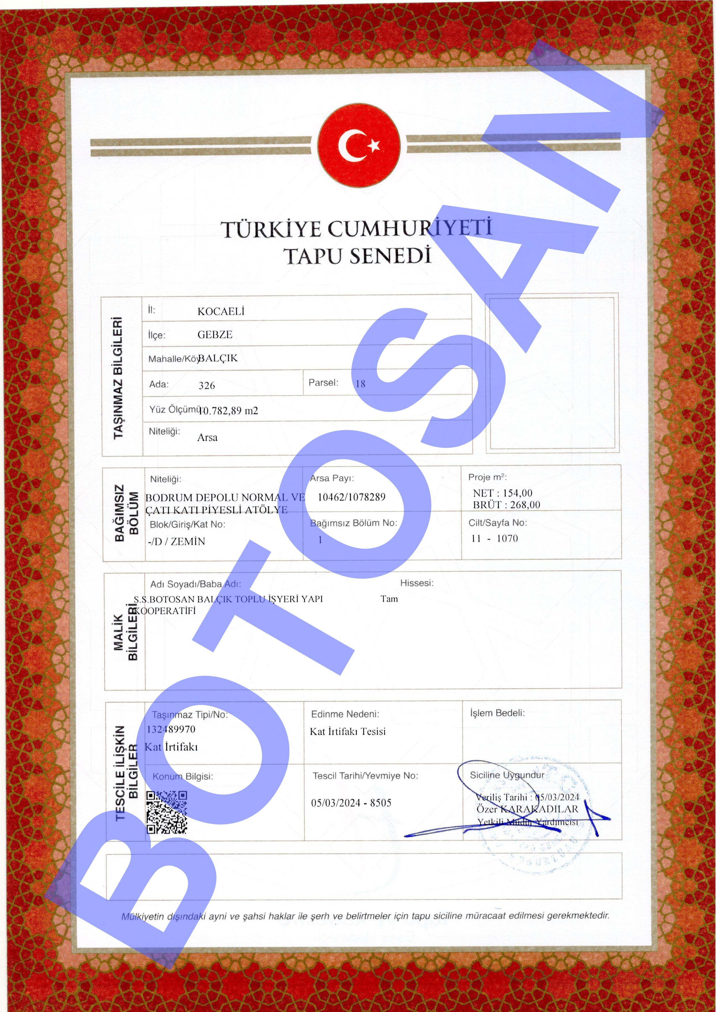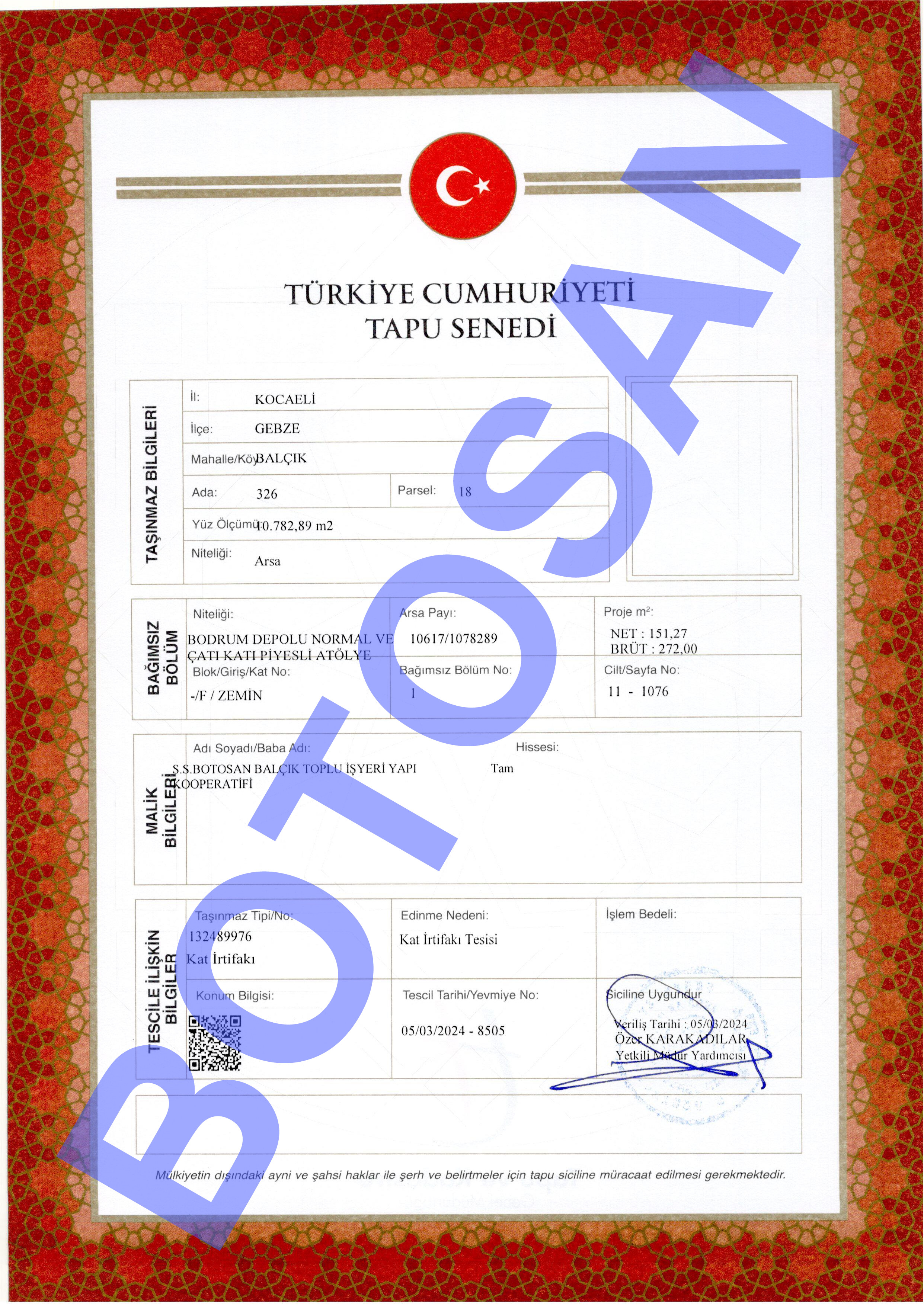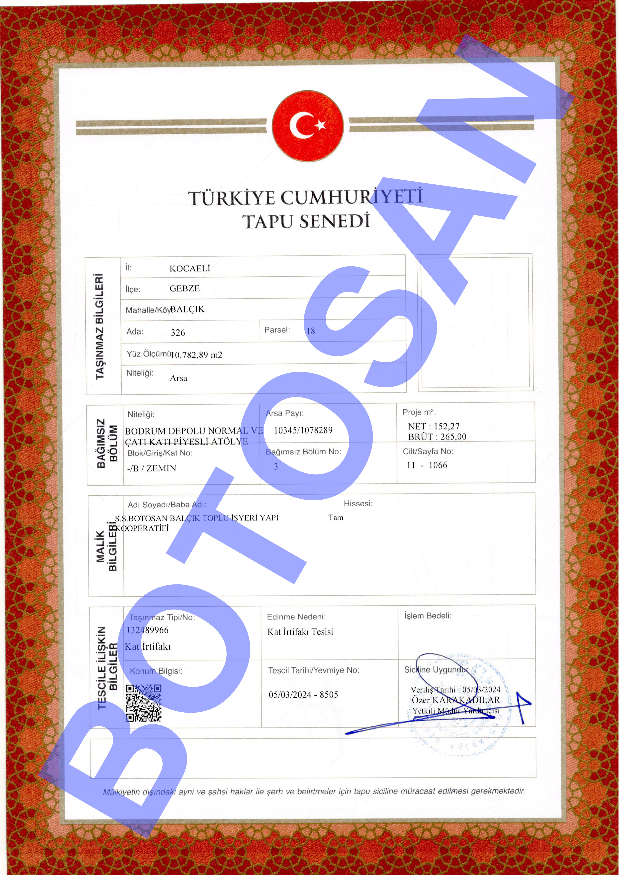 326-18 PARSEL KAT İRTİFAK TAPULARI G3