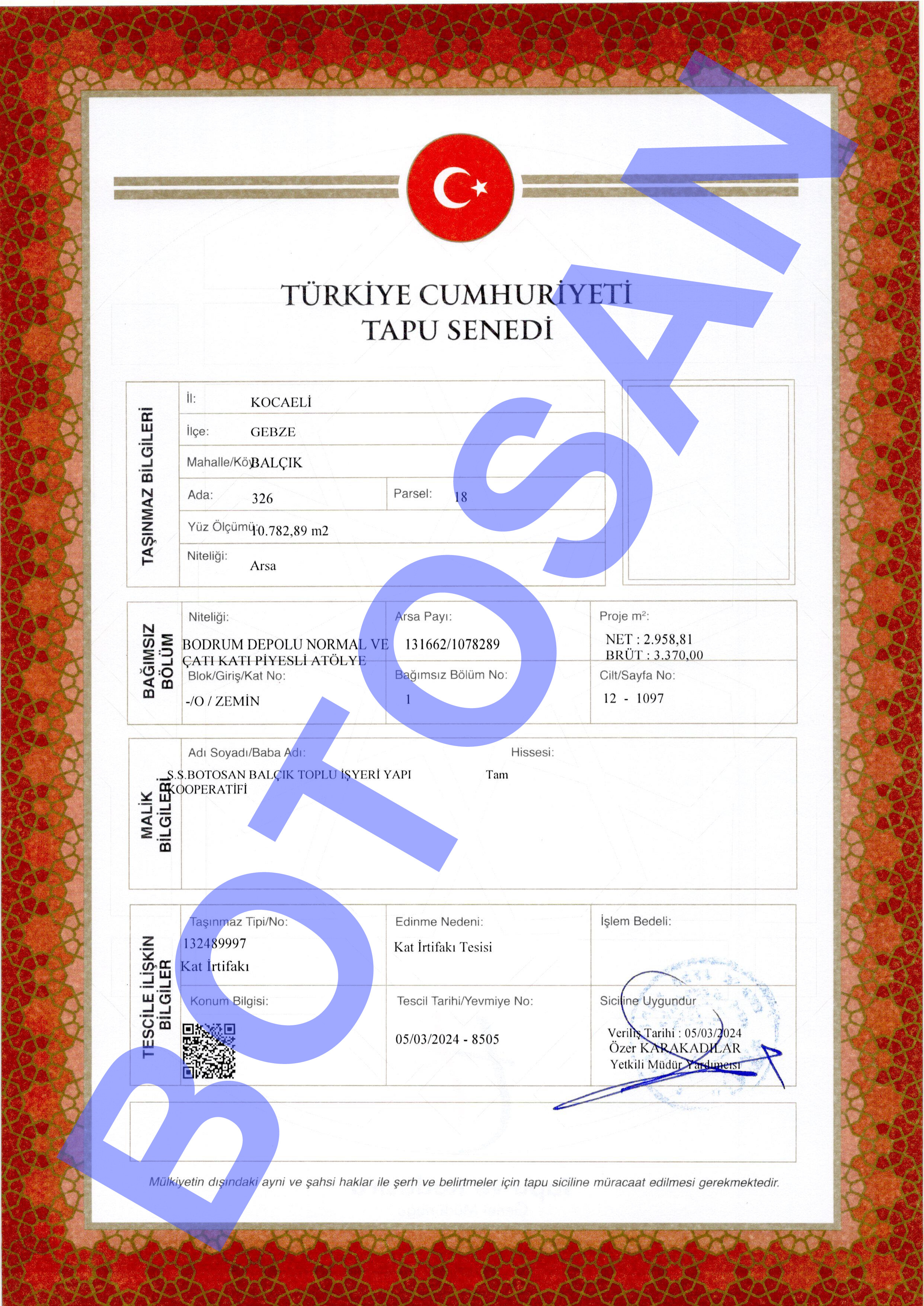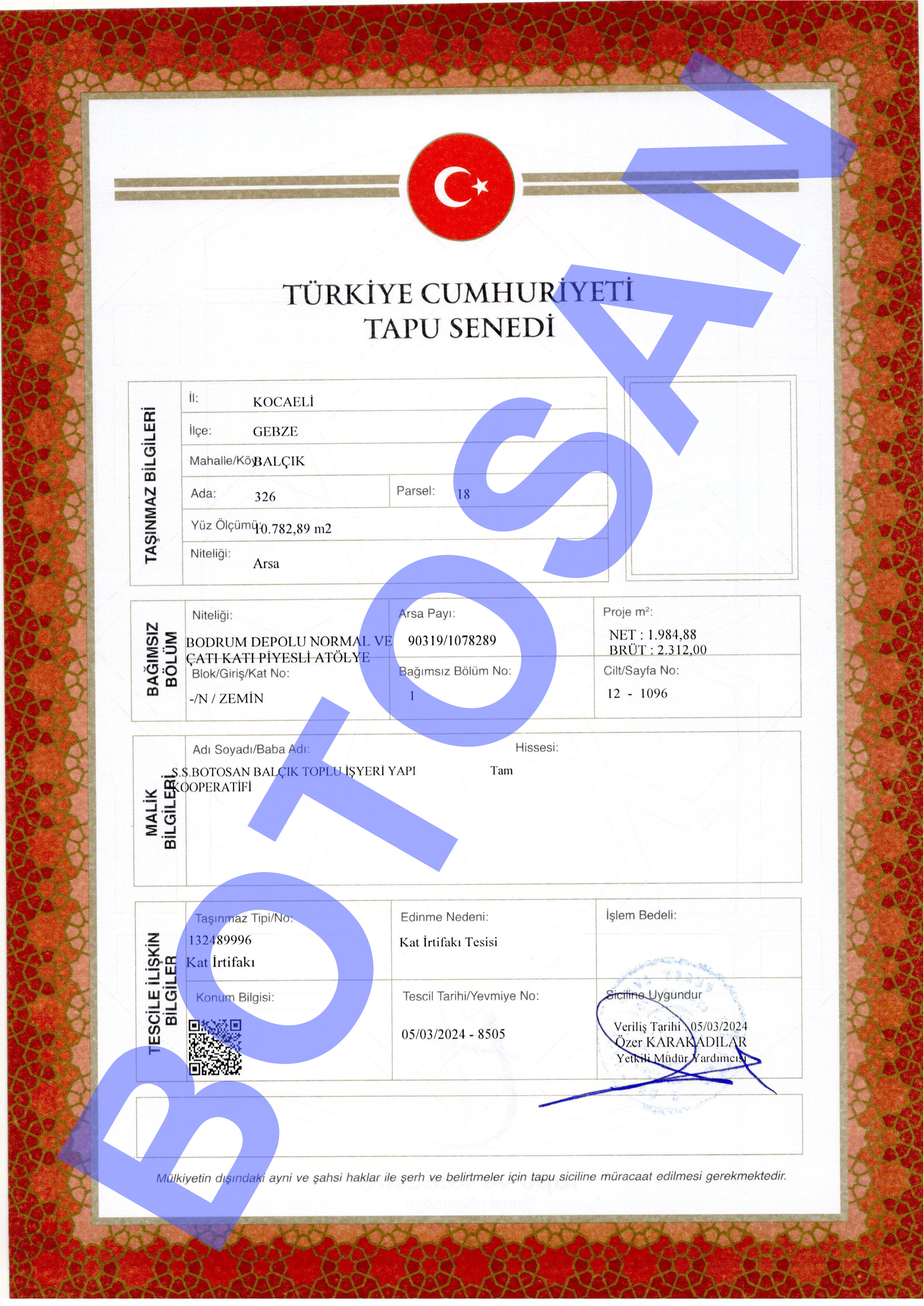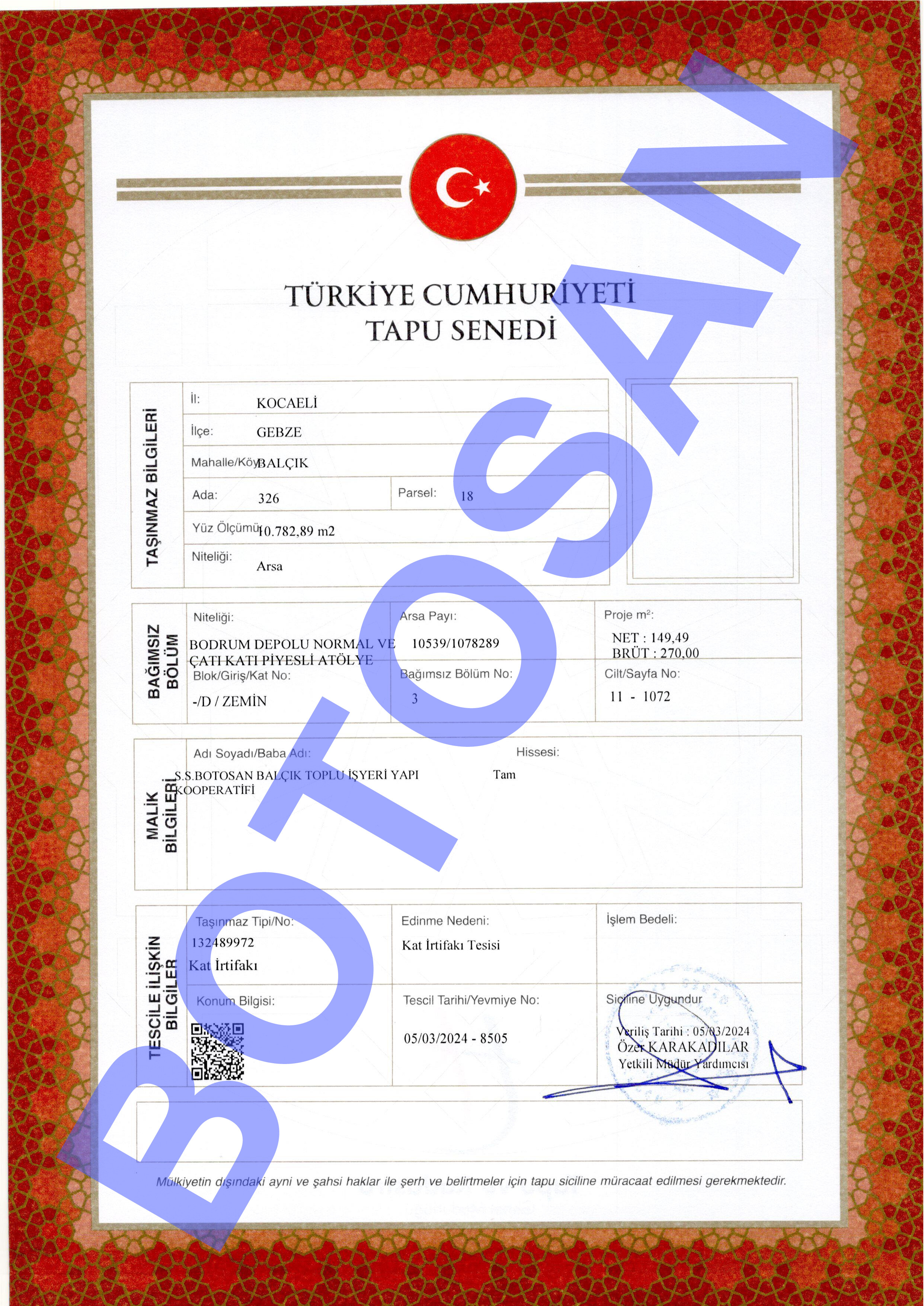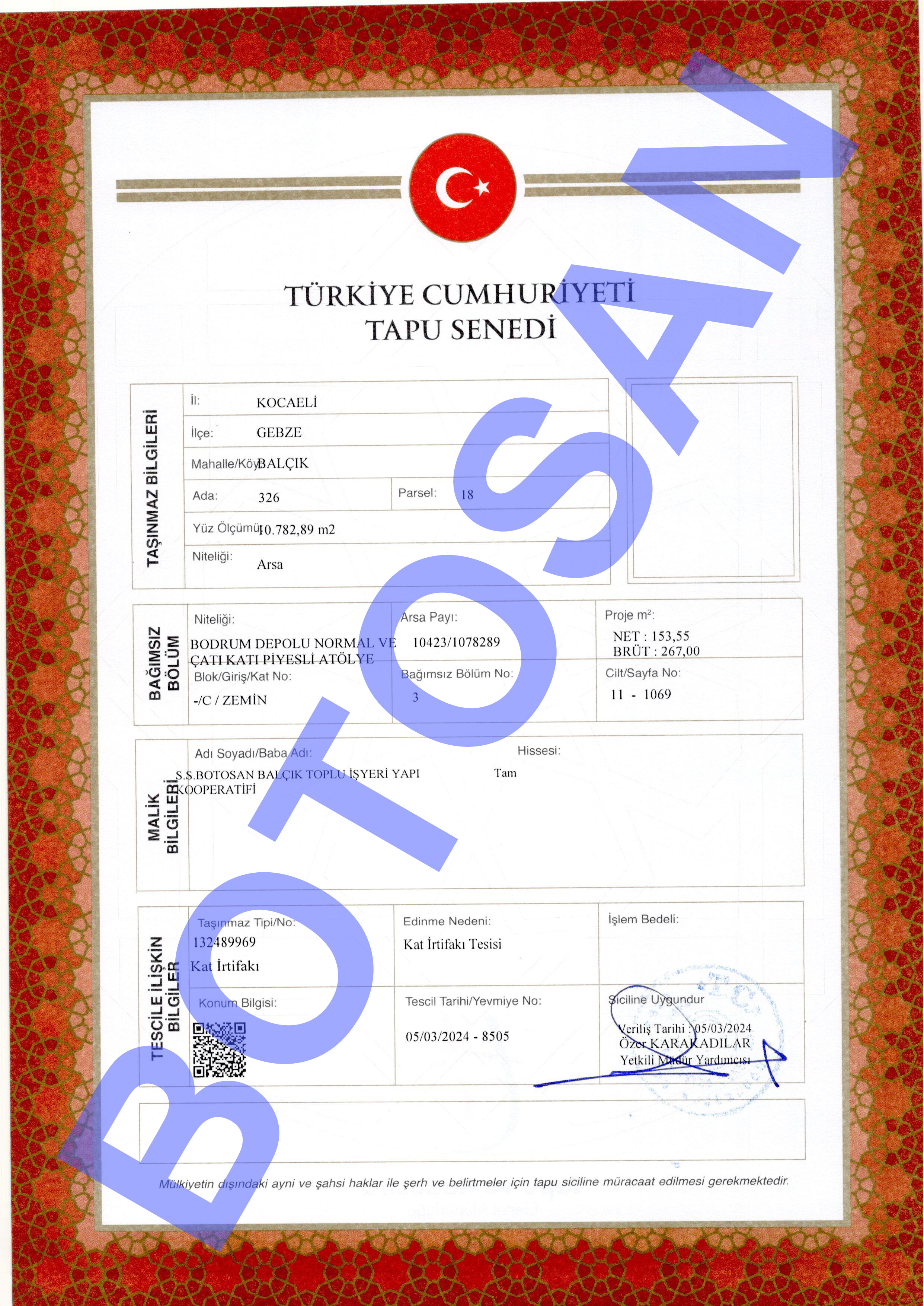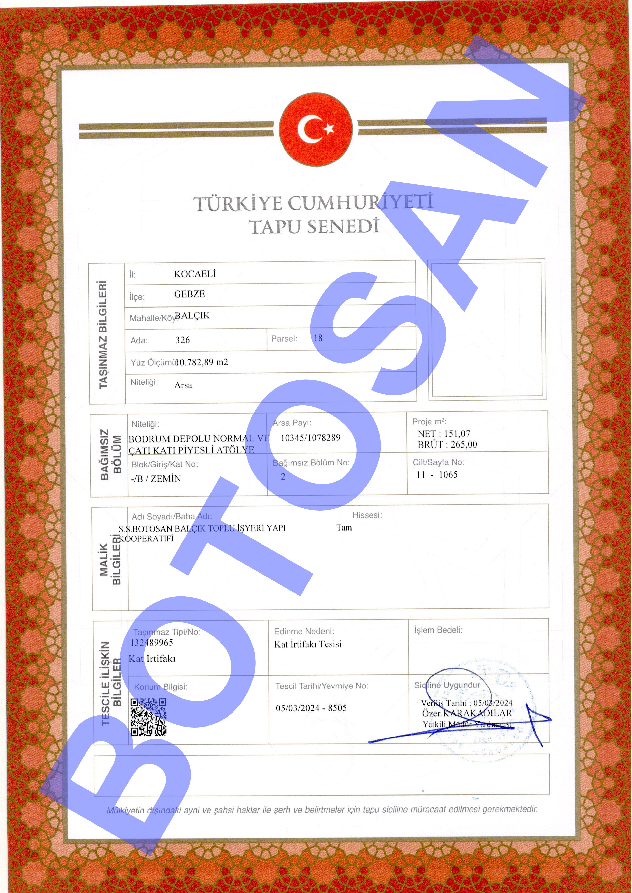 326-18 PARSEL KAT İRTİFAK TAPULARI G3