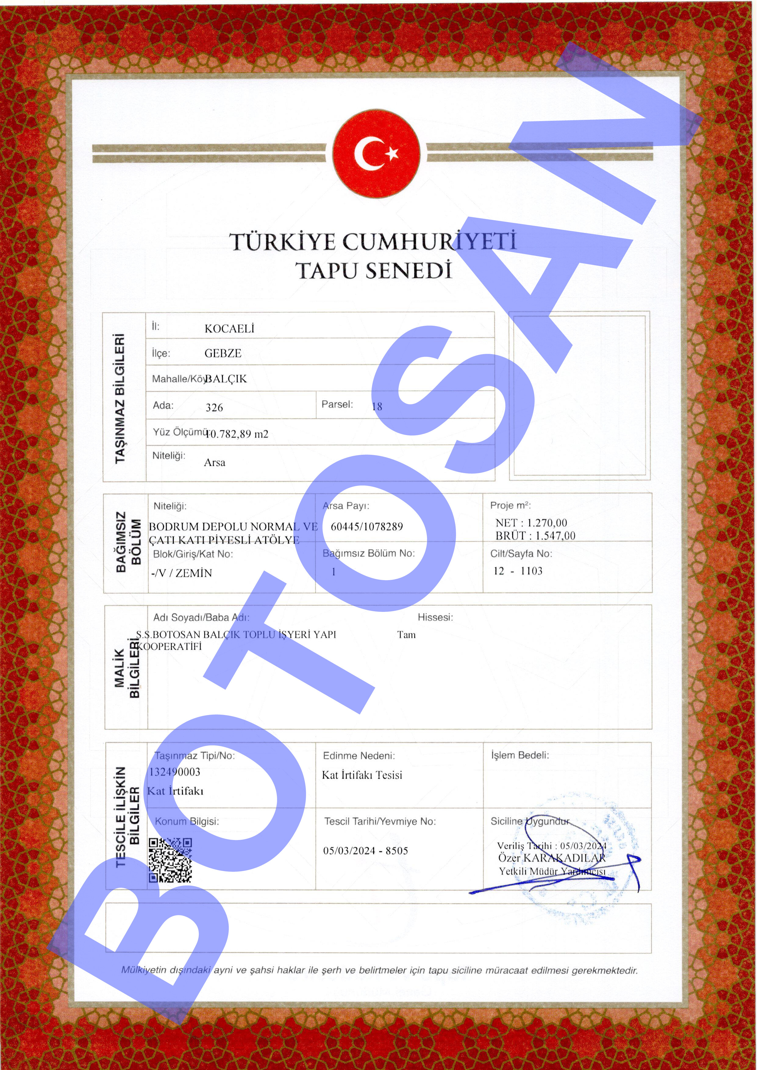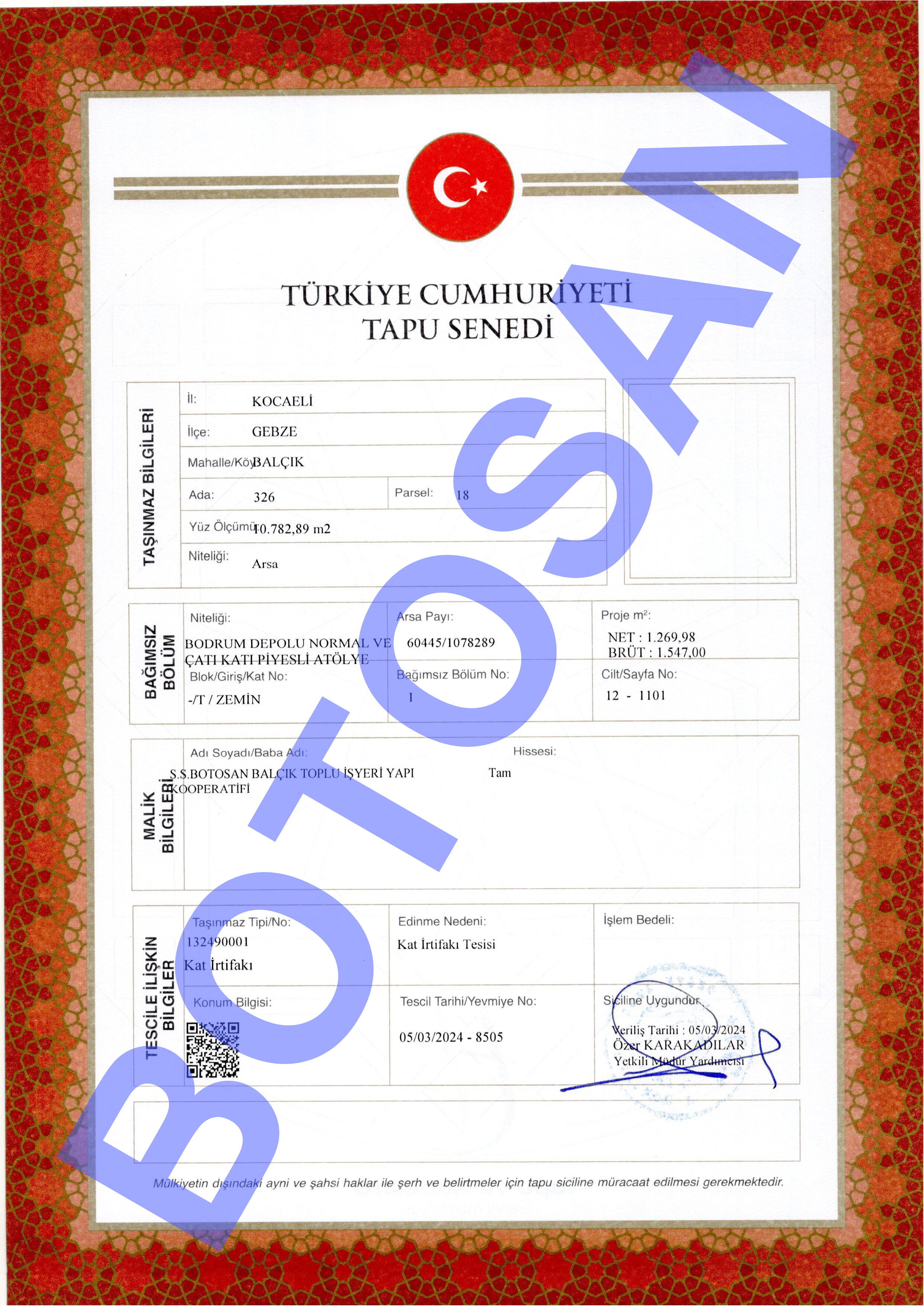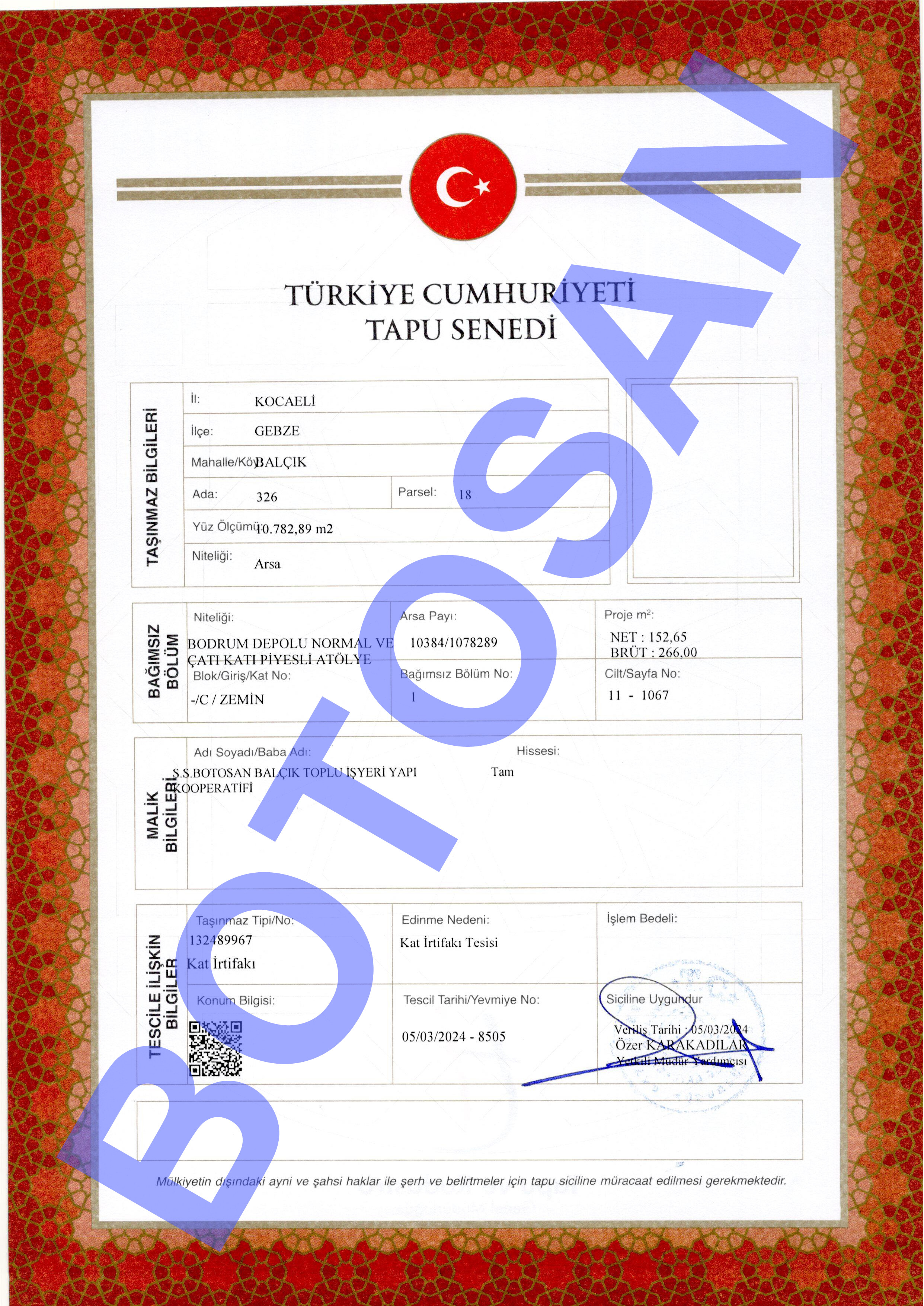 326-18 PARSEL KAT İRTİFAK TAPULARI O1