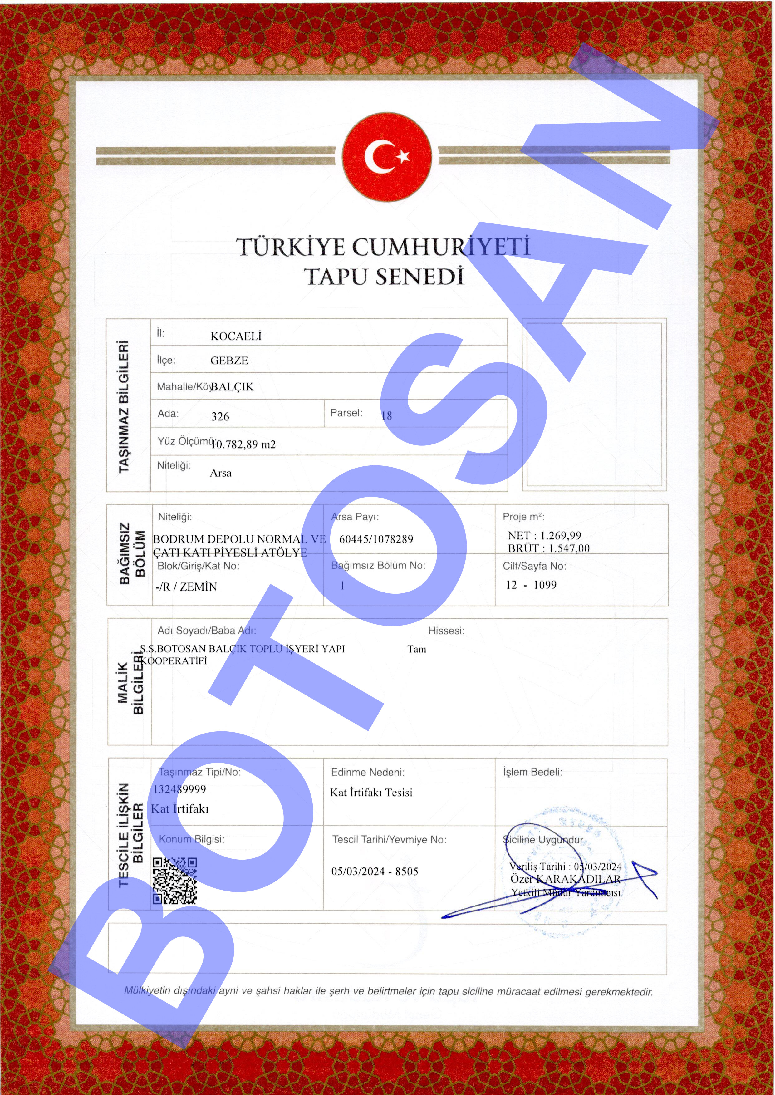 326-18 PARSEL KAT İRTİFAK TAPULARI J1