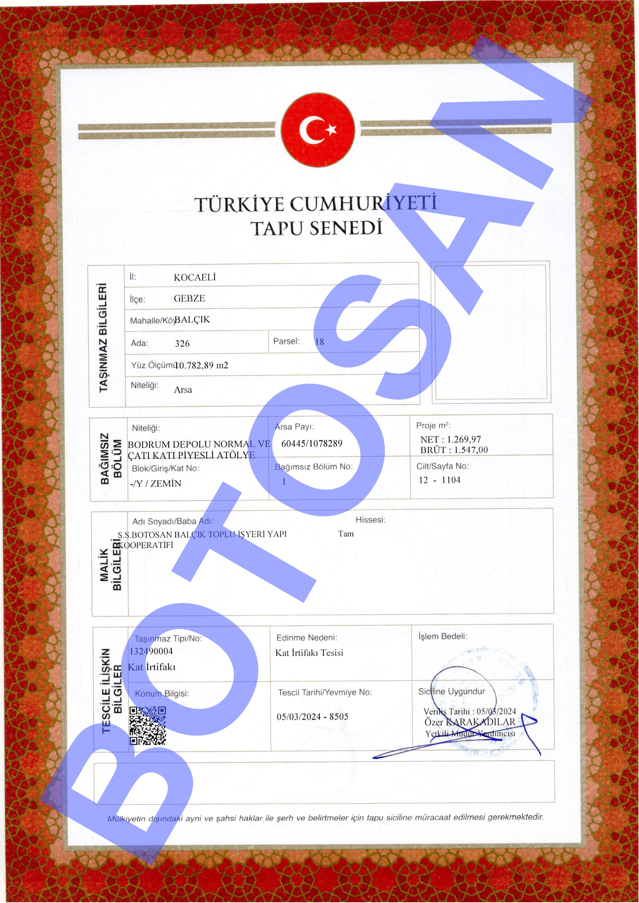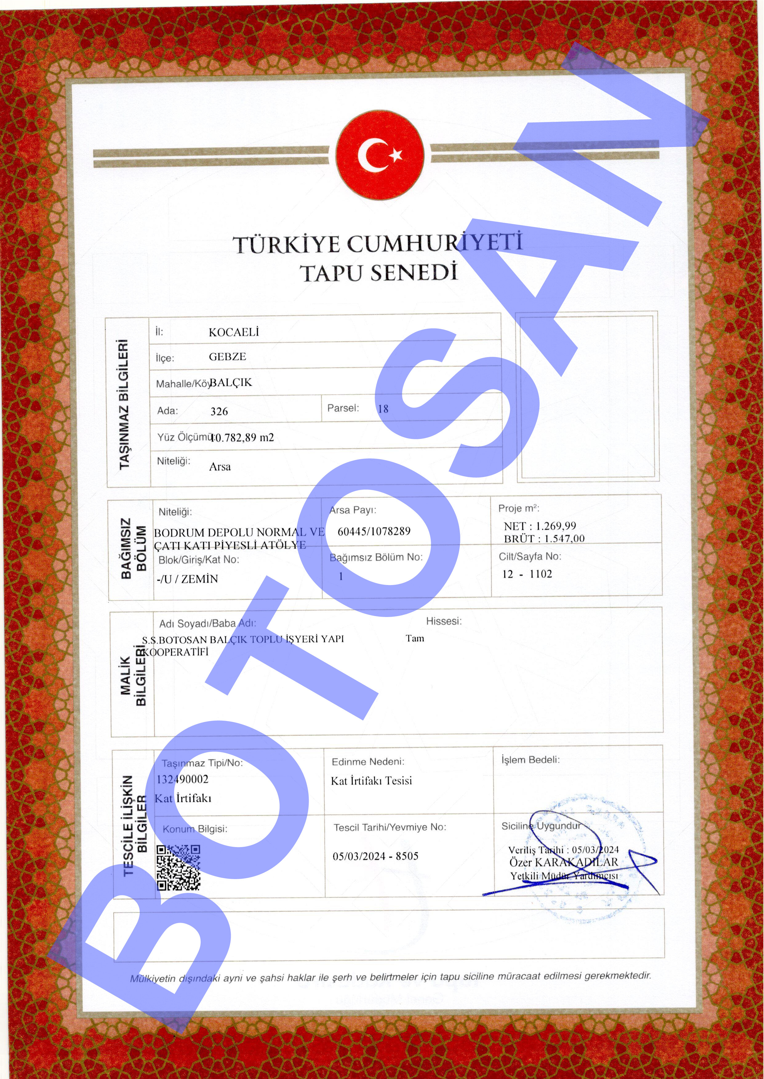 326-18 PARSEL KAT İRTİFAK TAPULARI G1
