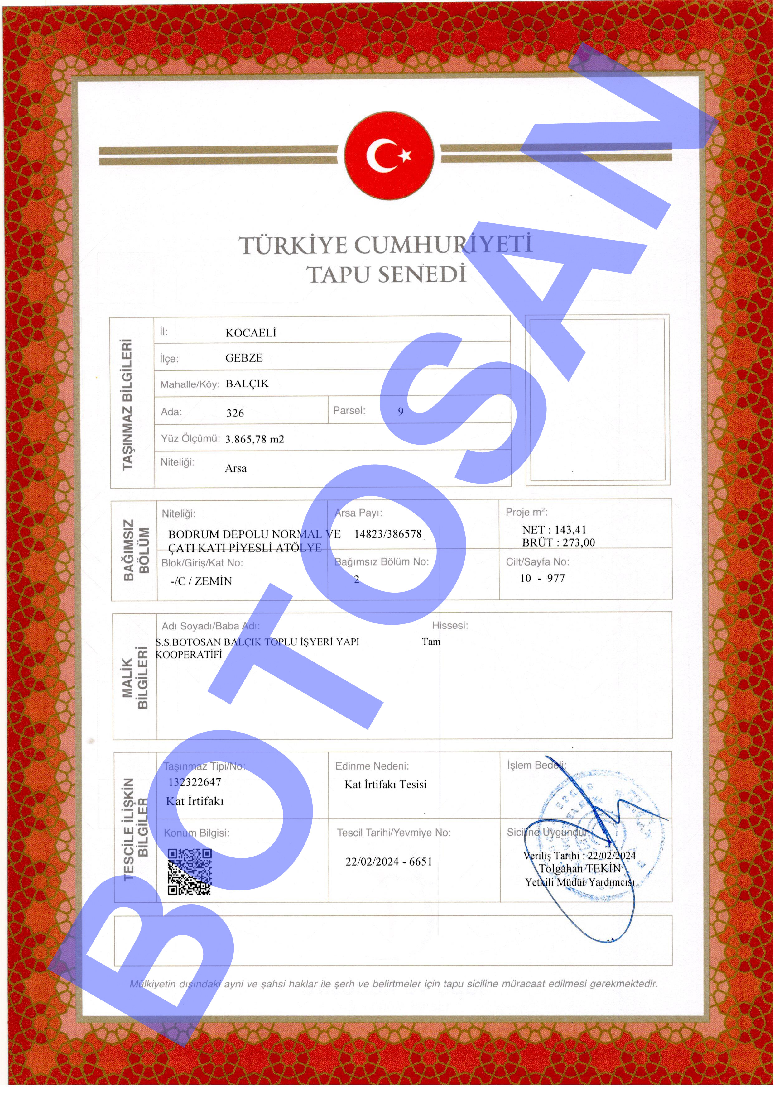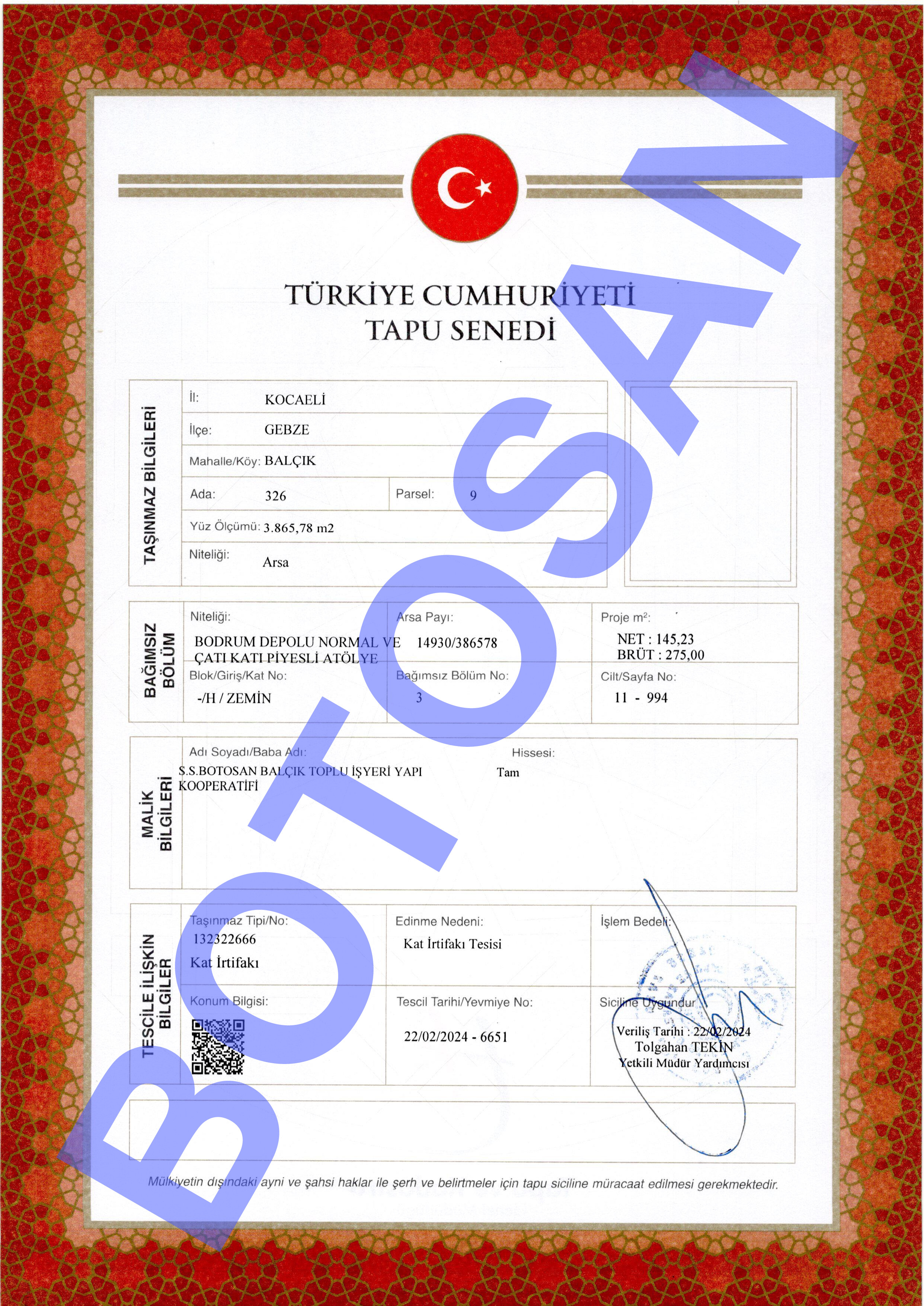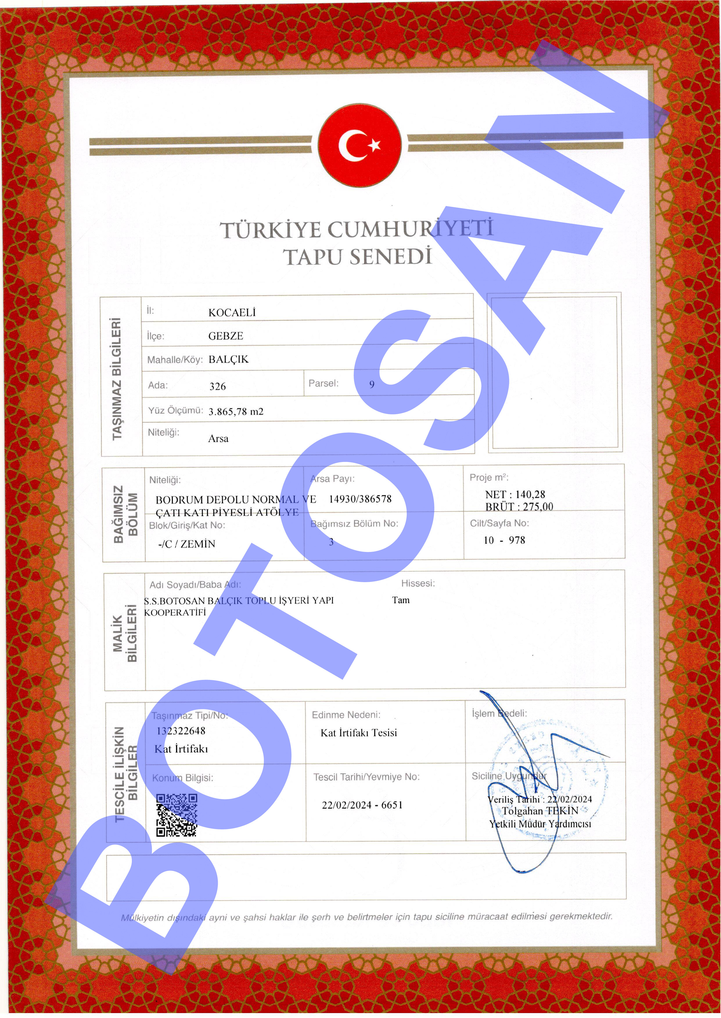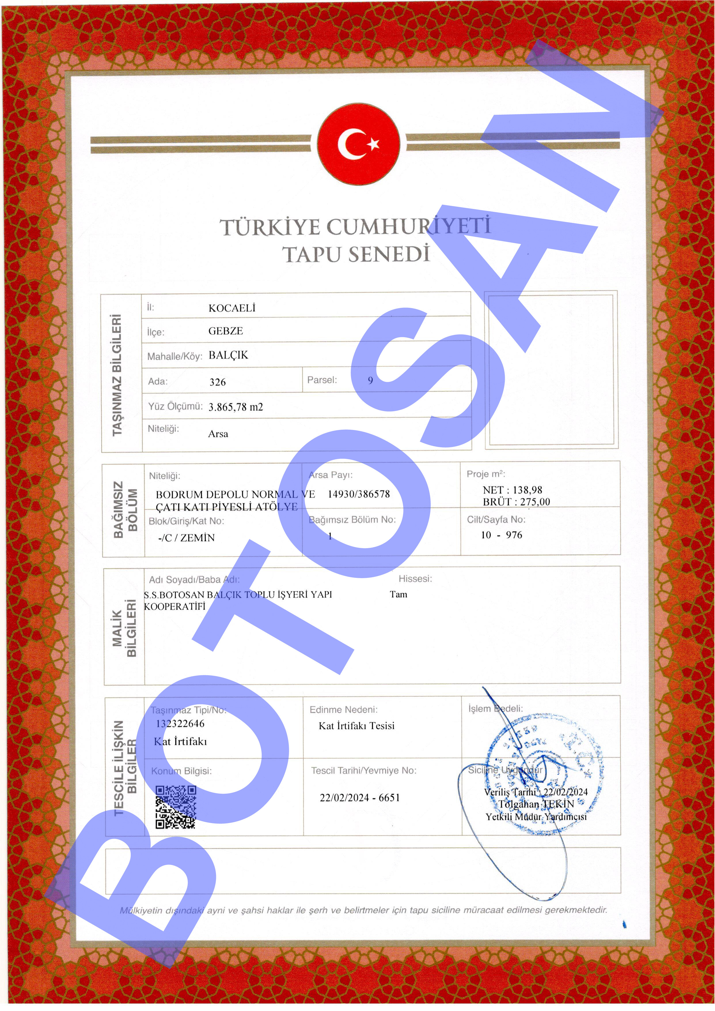 326-9 PARSEL KAT İRTİFAKLI TAPULARI C3