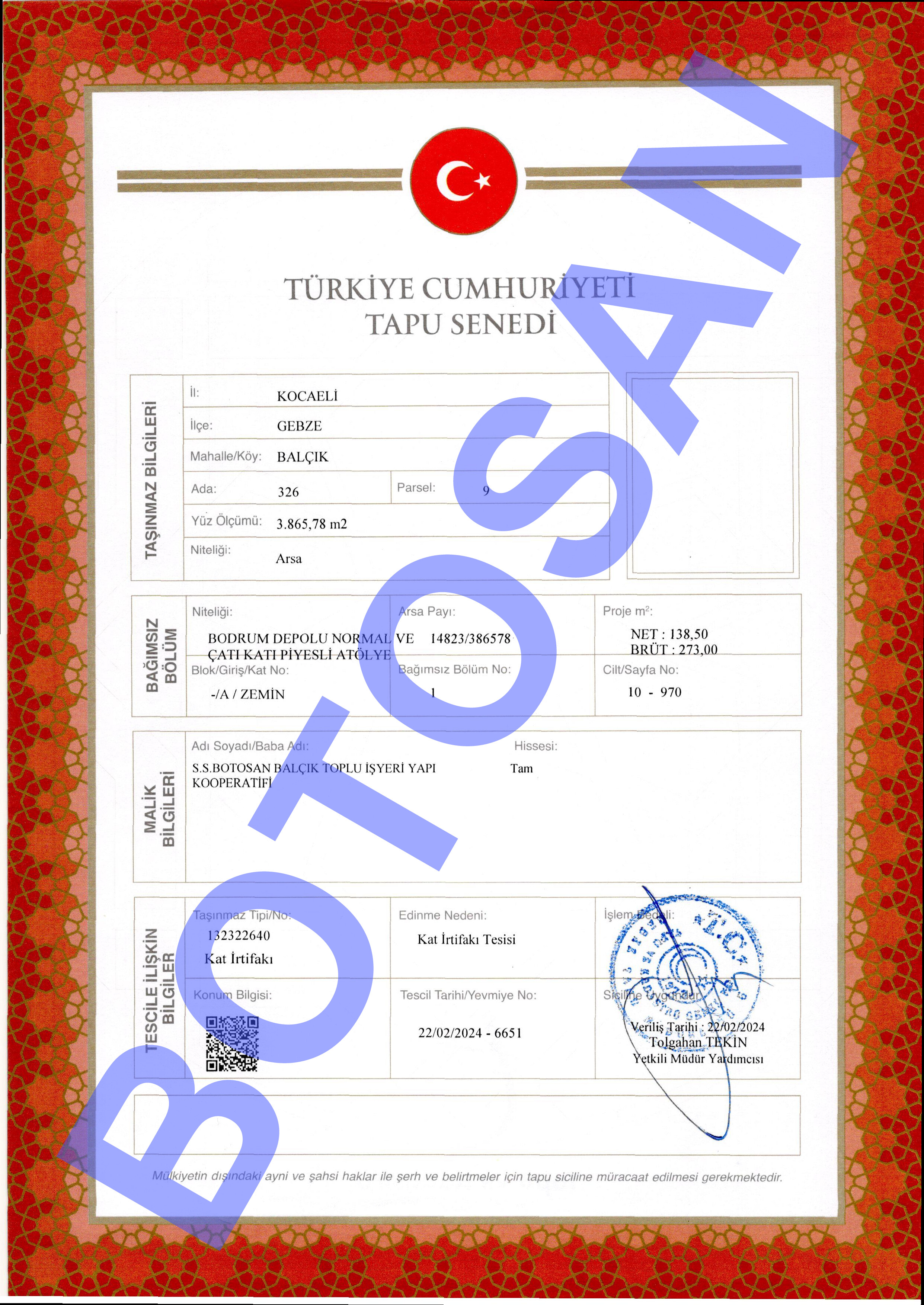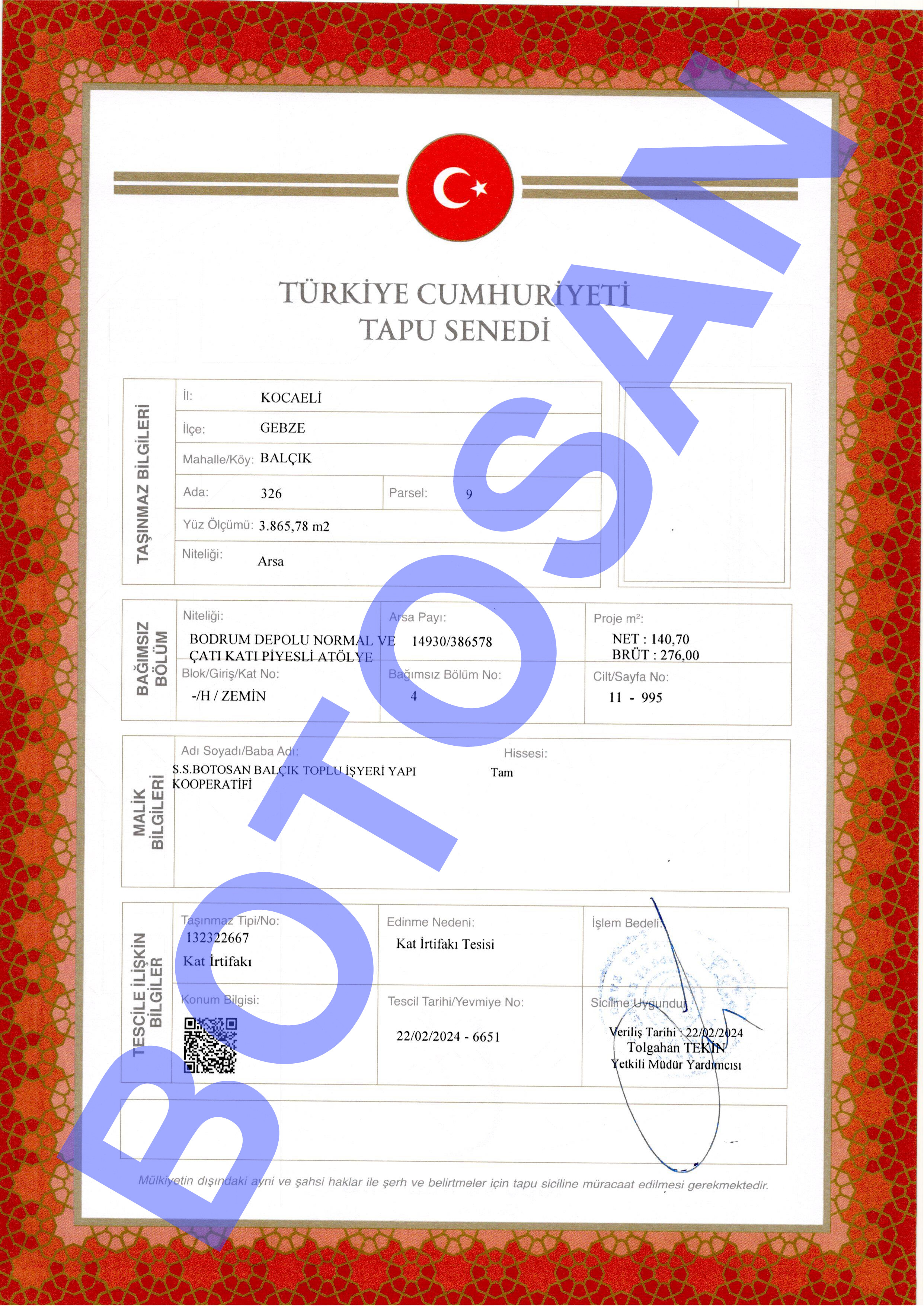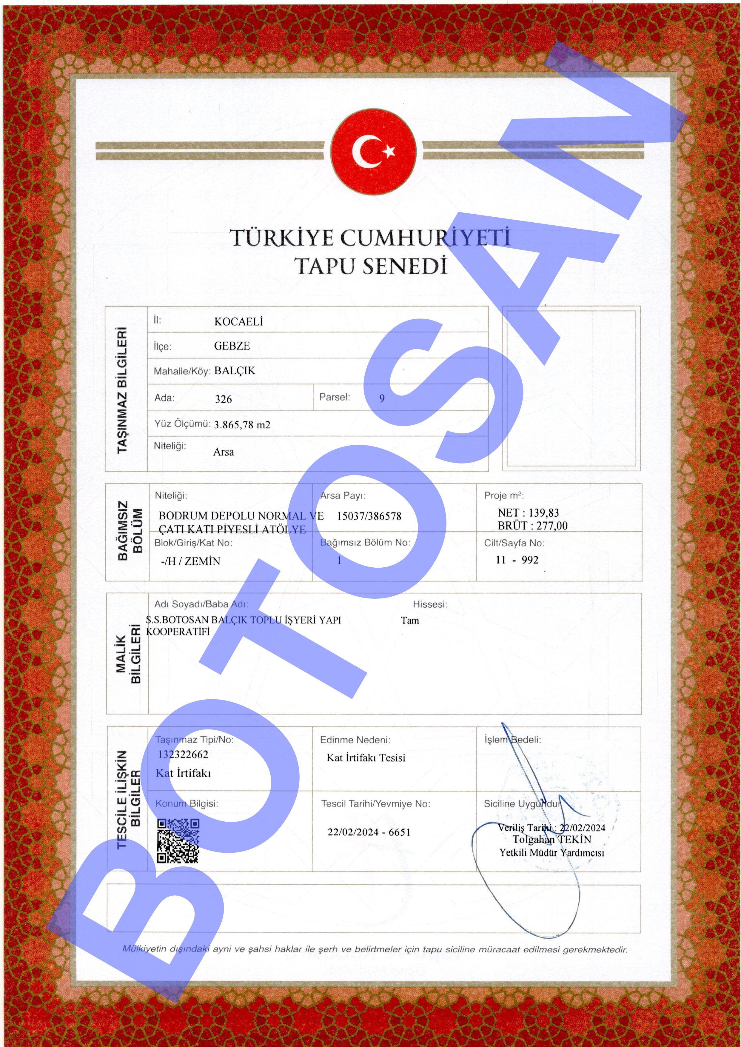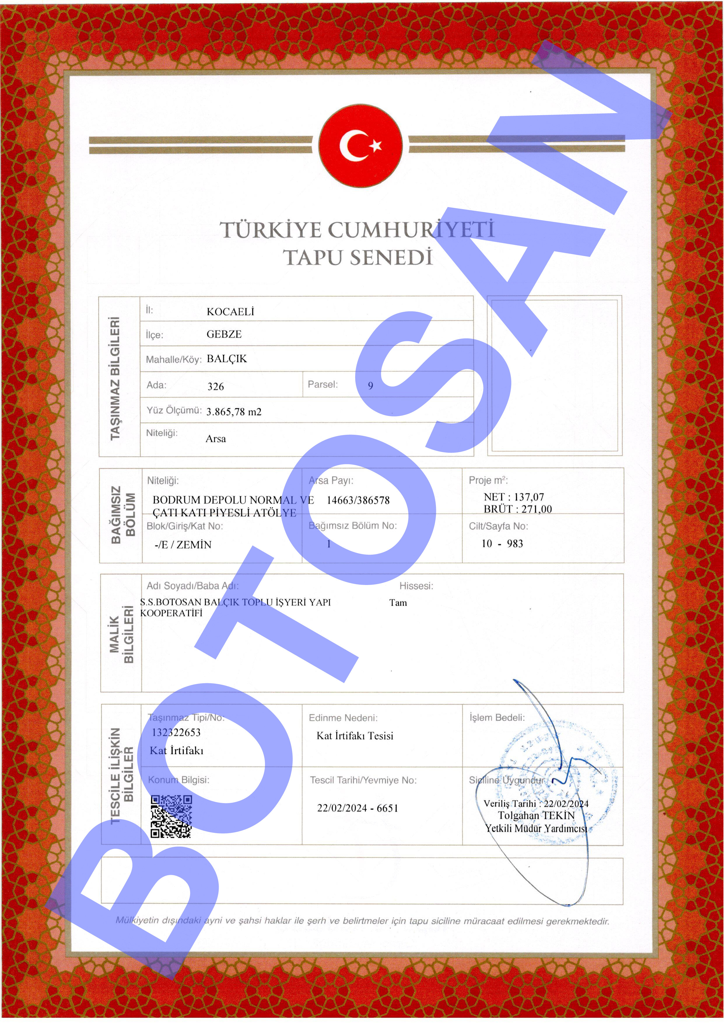 326-9 PARSEL KAT İRTİFAKLI TAPULARI C3