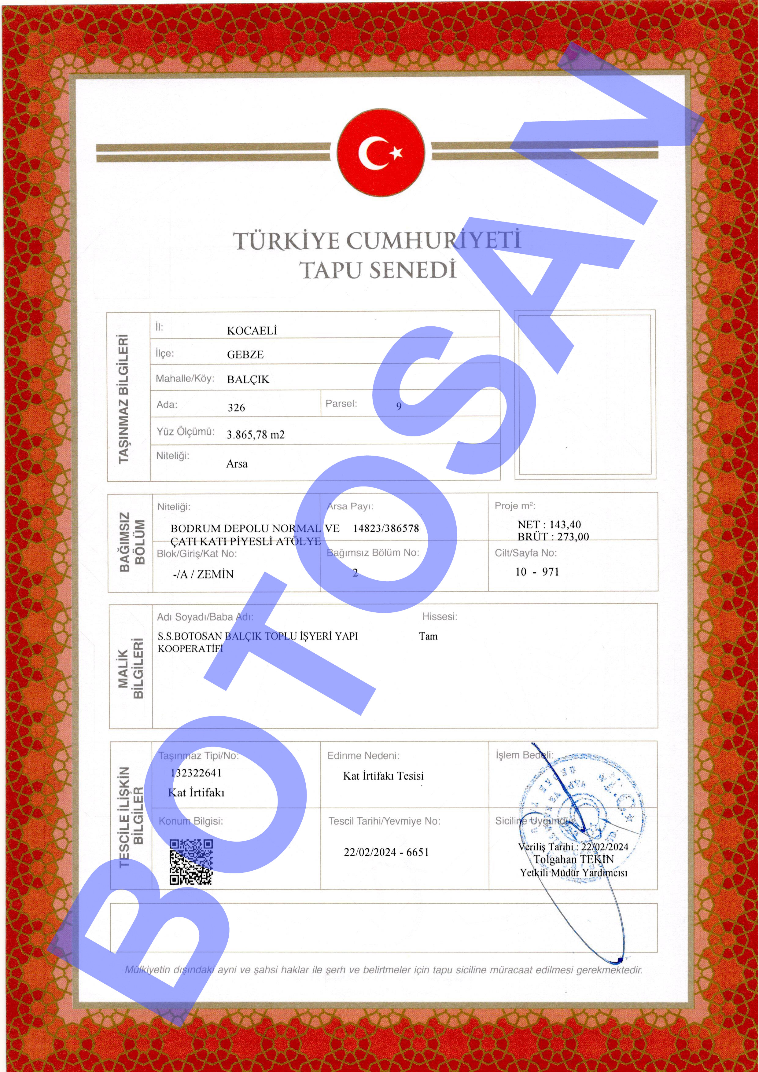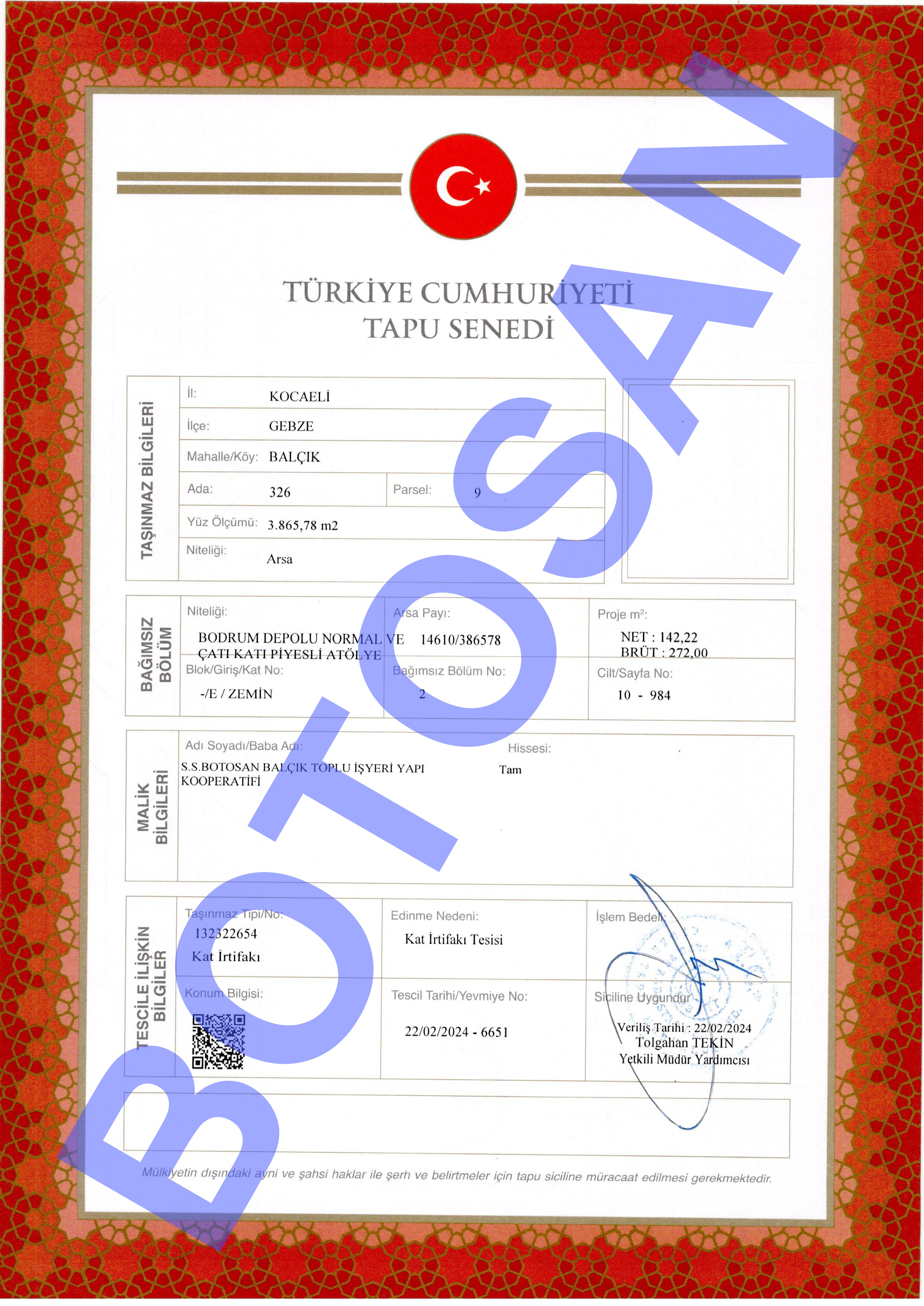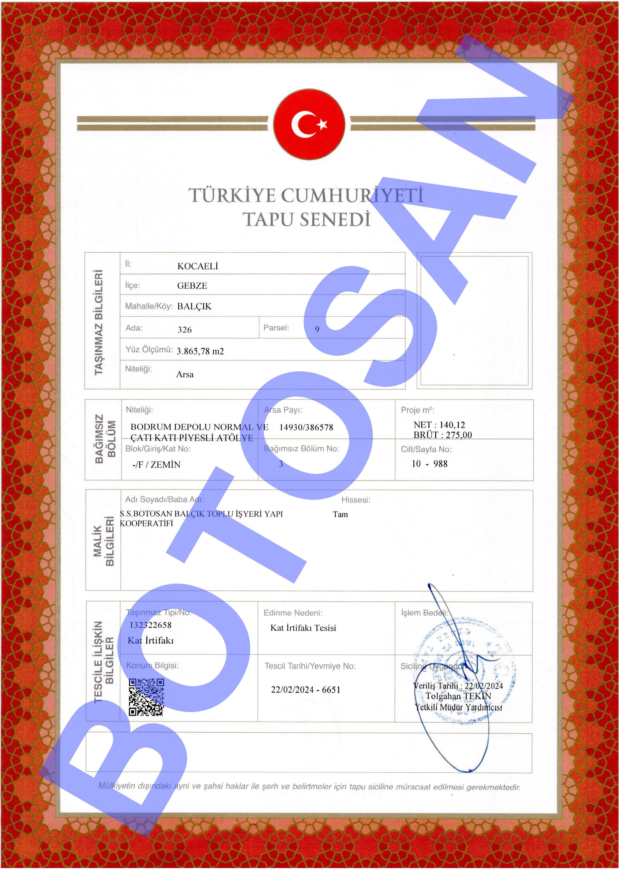 326-9 PARSEL KAT İRTİFAKLI TAPULARI G3