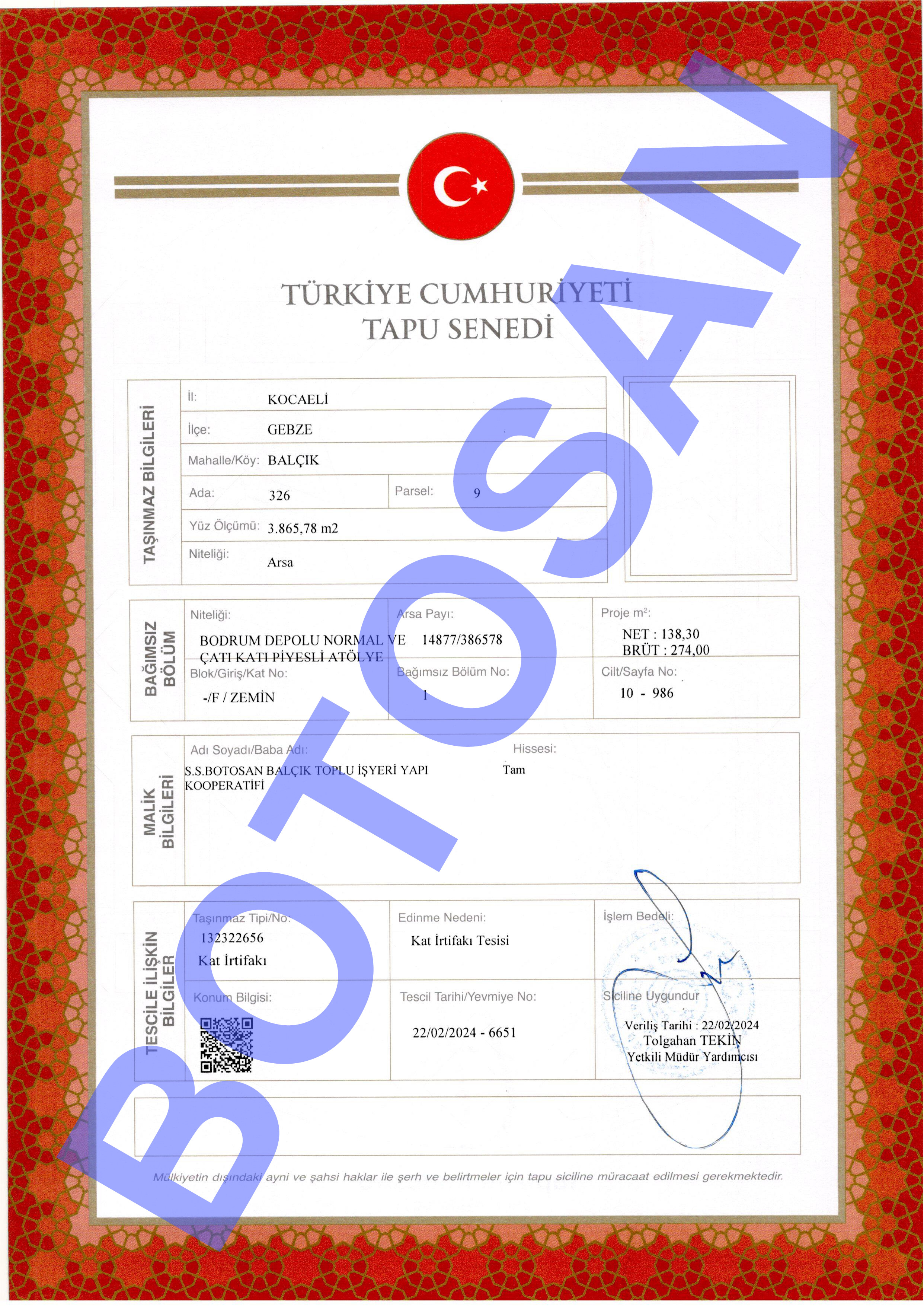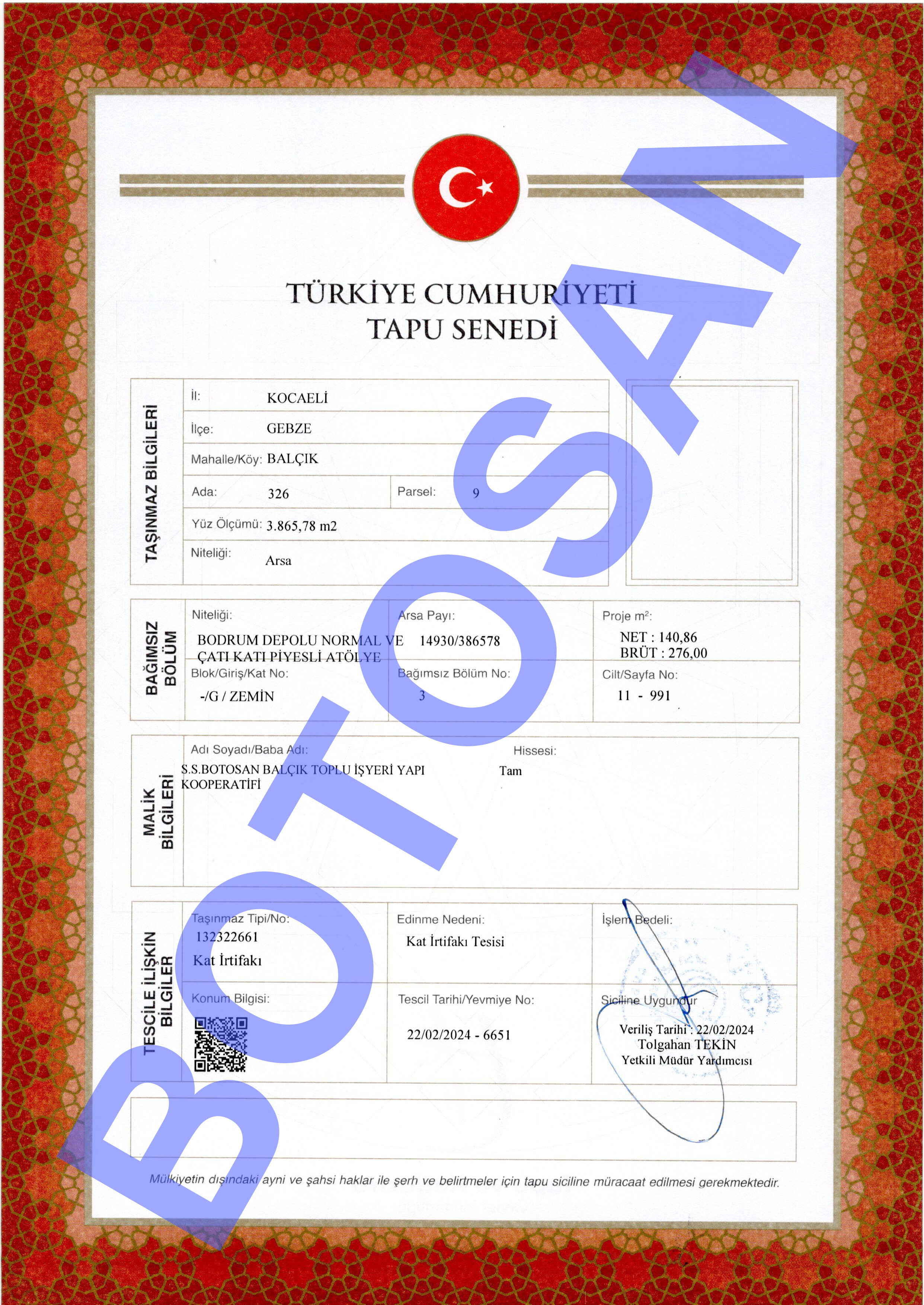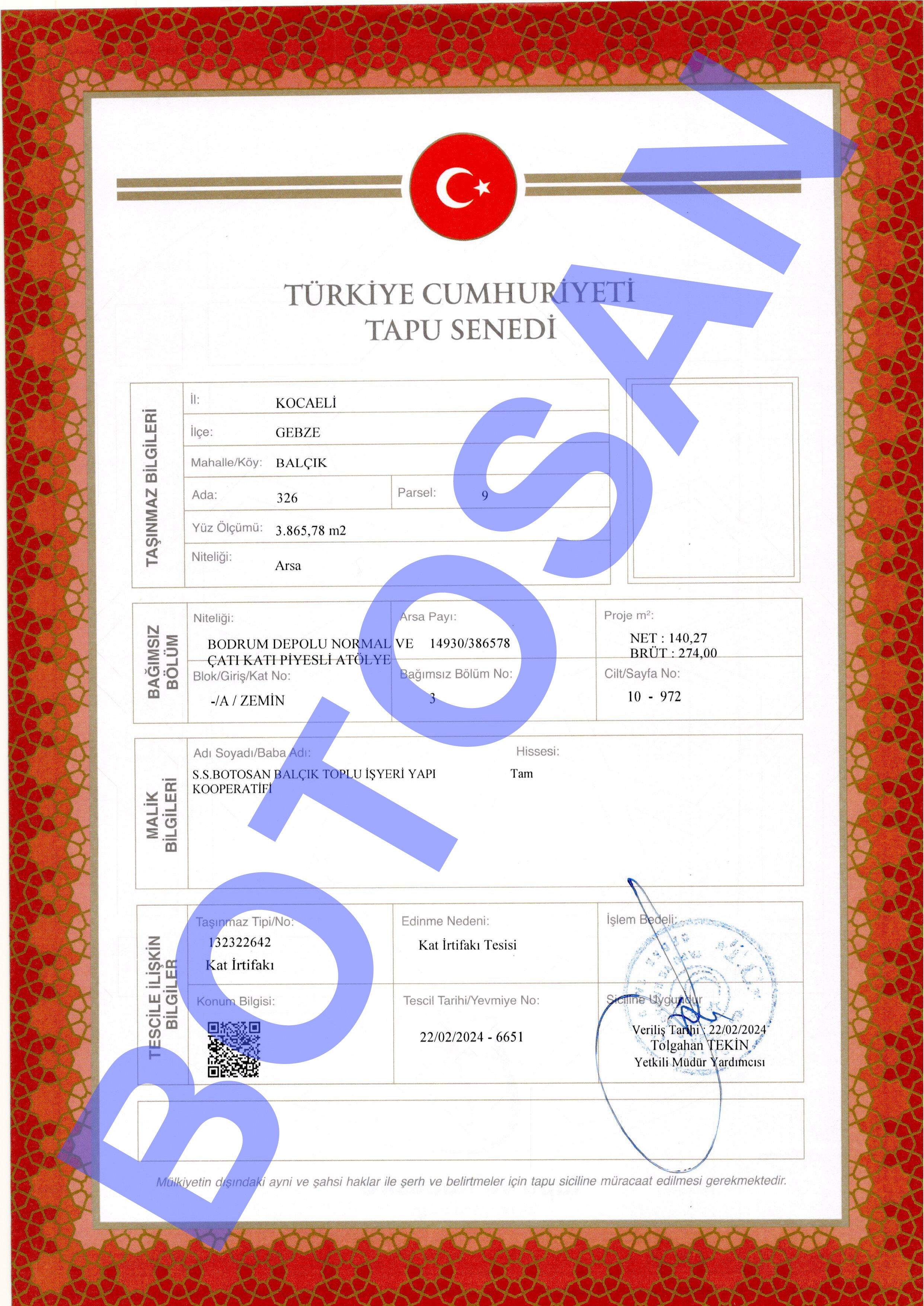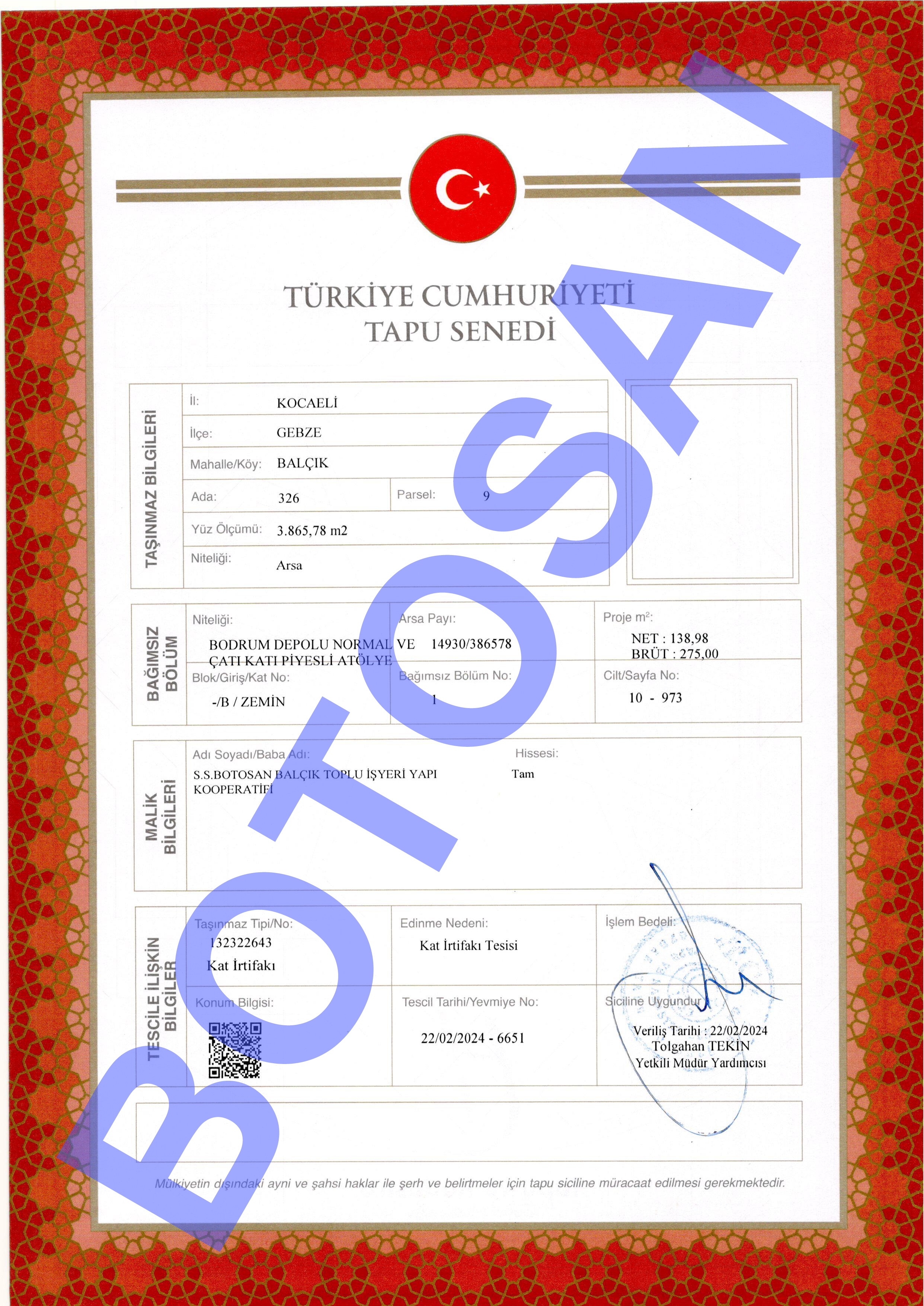 326-9 PARSEL KAT İRTİFAKLI TAPULARI G3