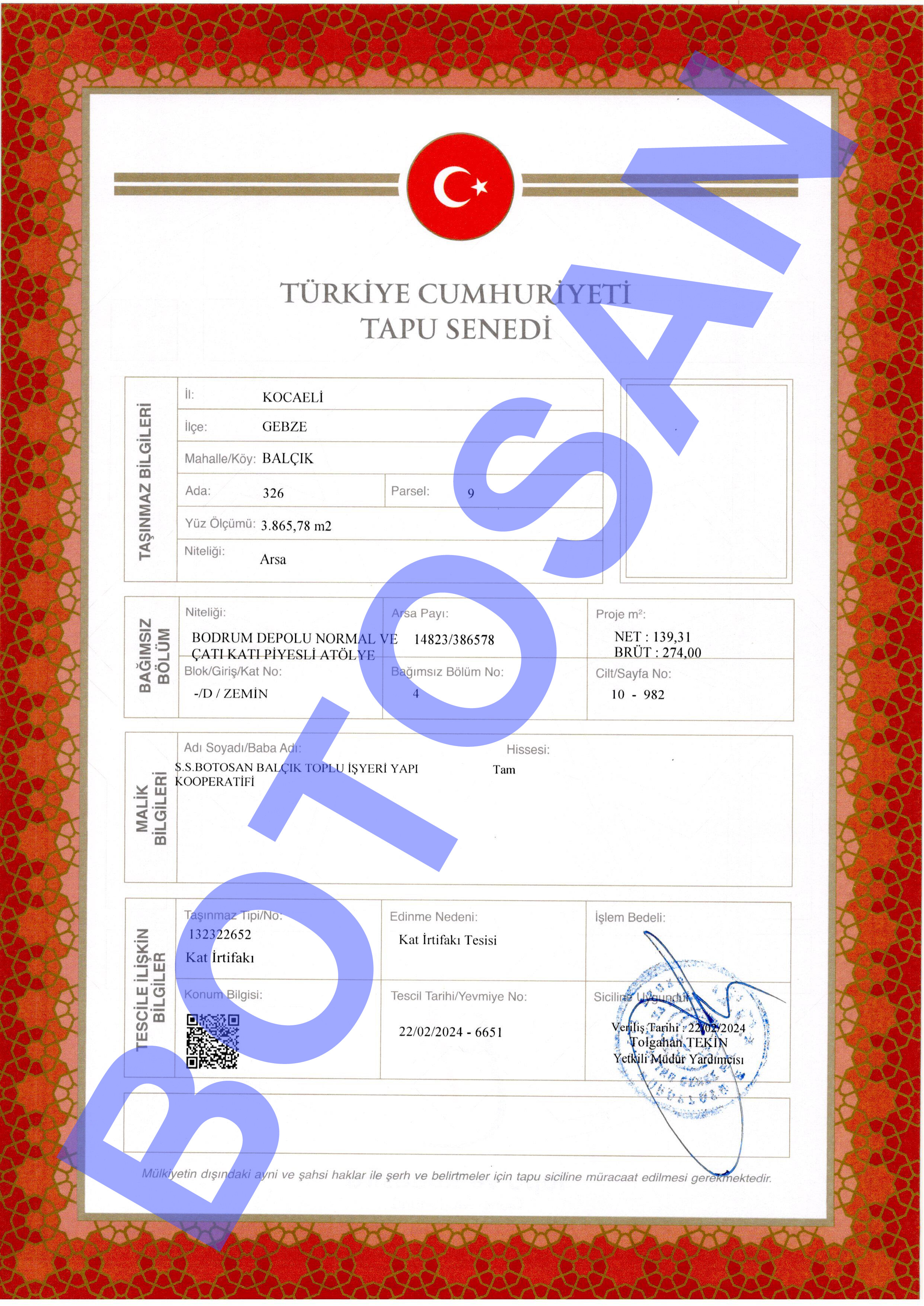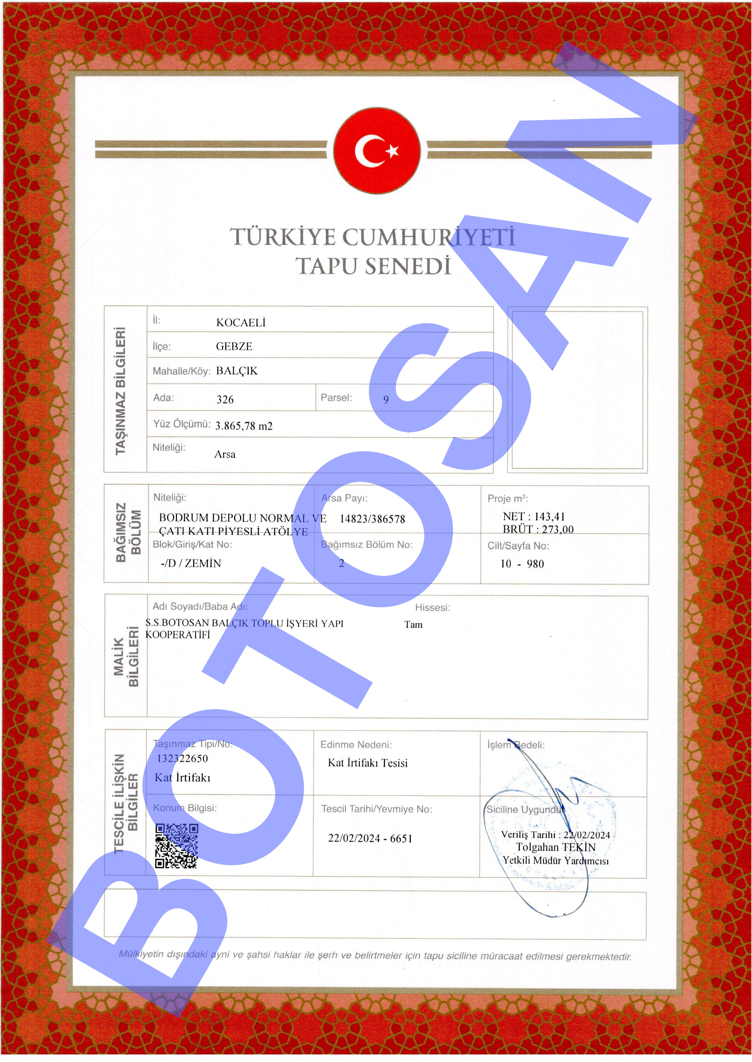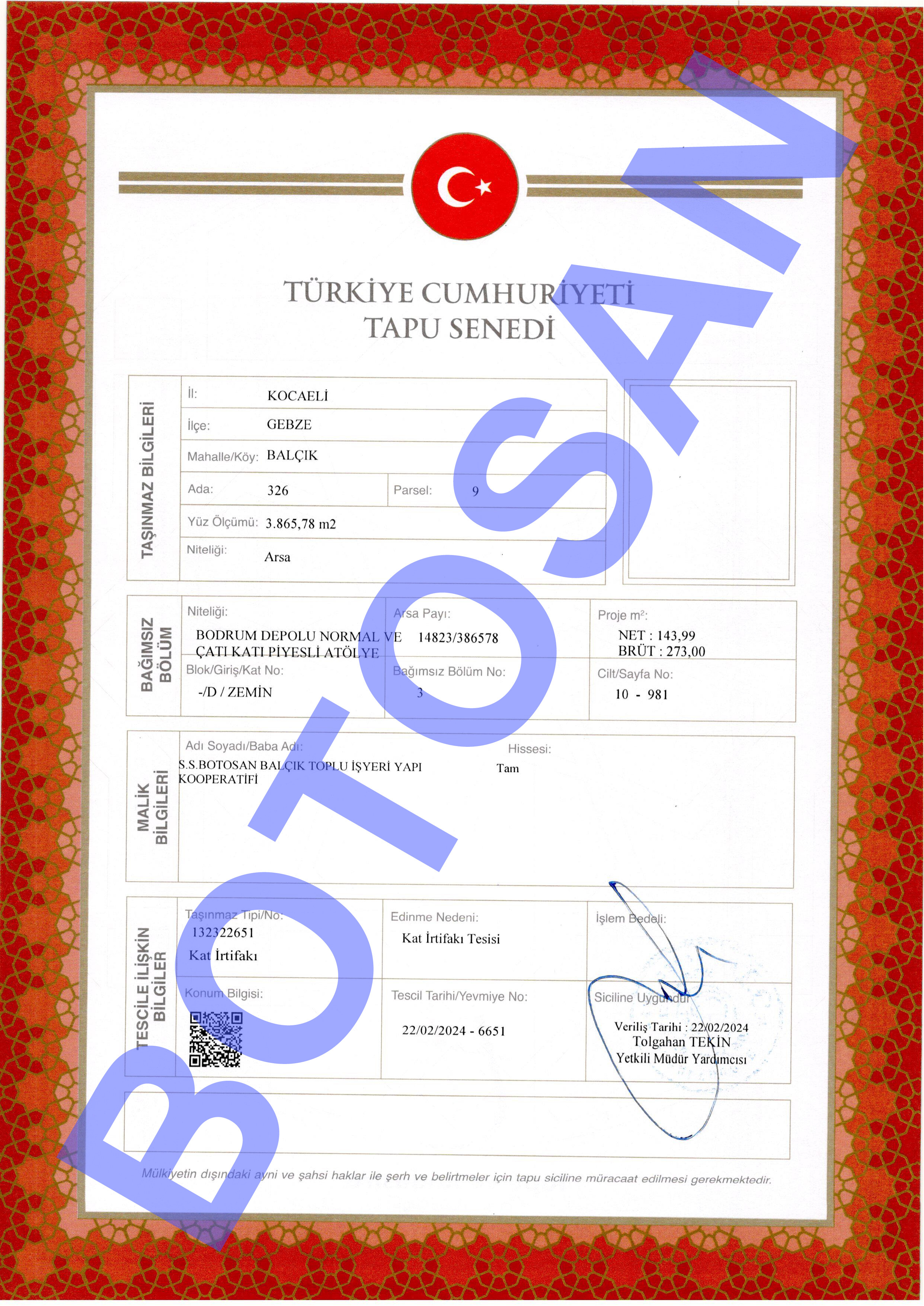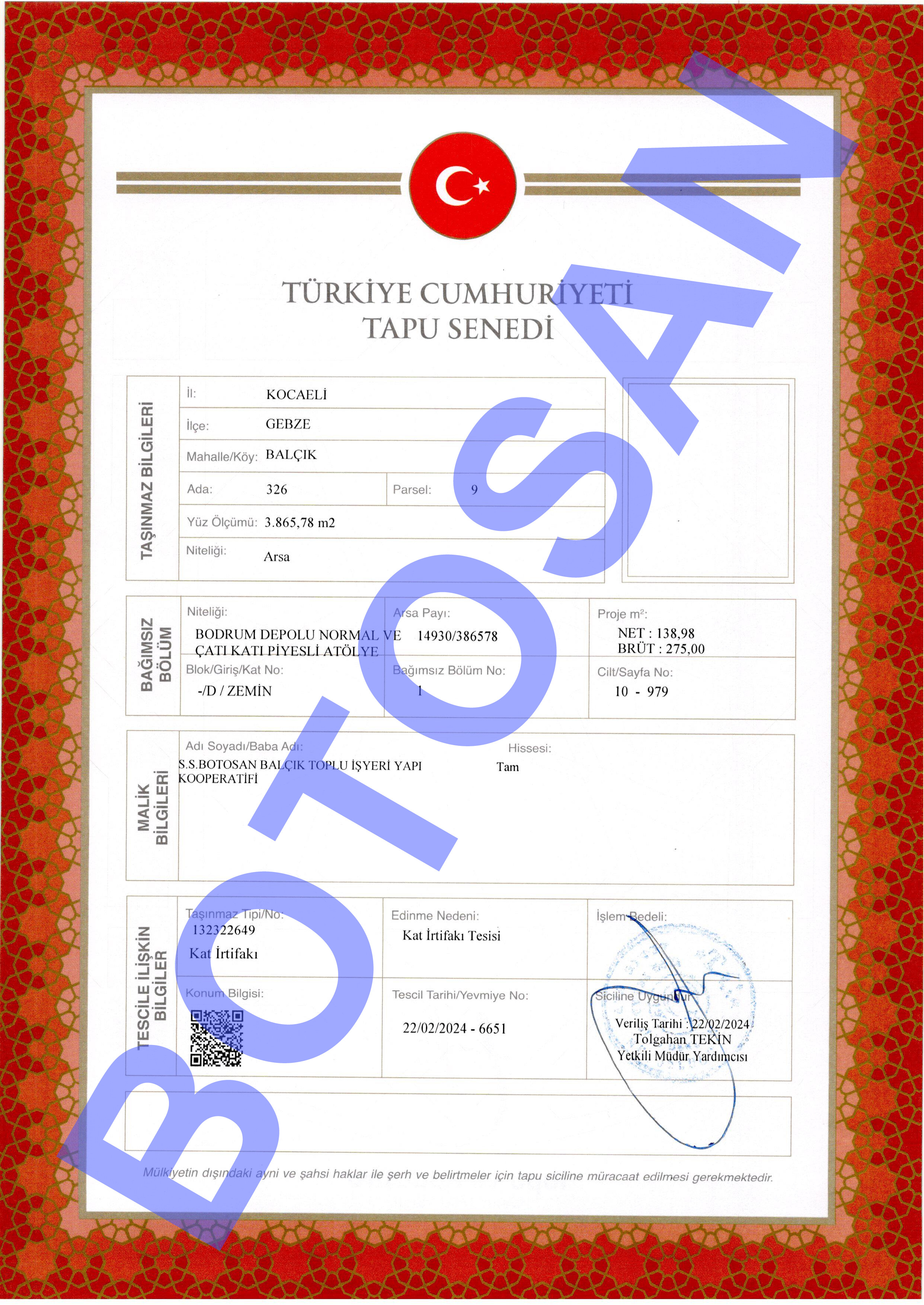 326-9 PARSEL KAT İRTİFAKLI TAPULARI D3