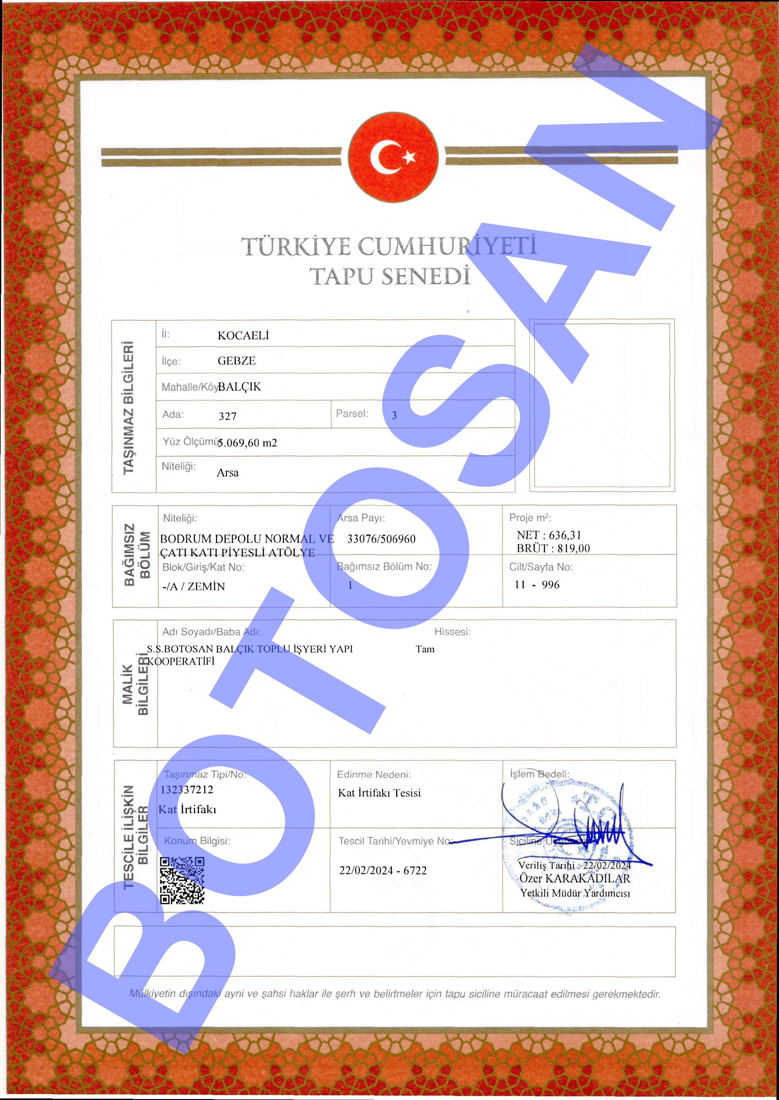 327-3 PARSEL KAT İRTİFAK TAPULARI G3