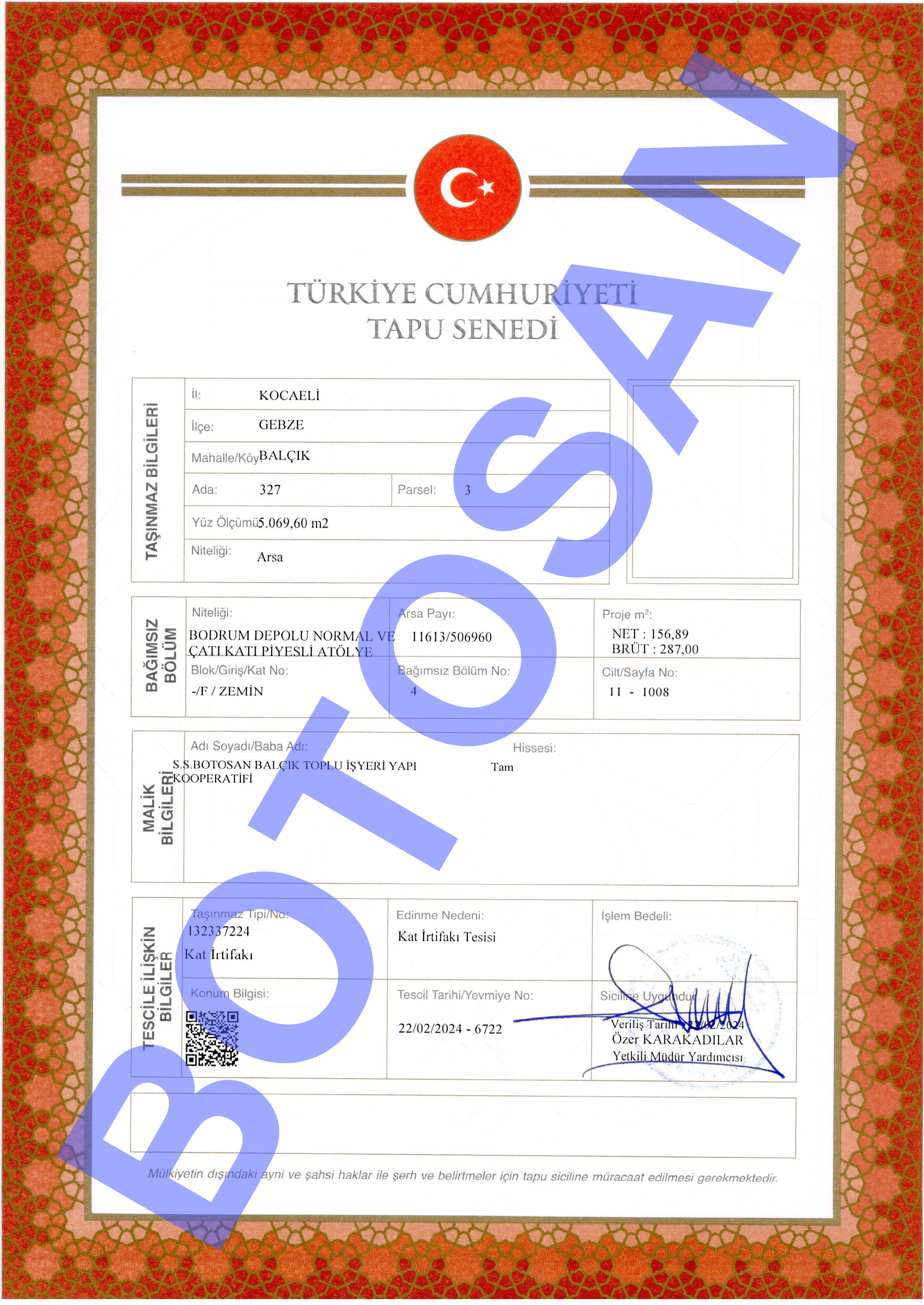 327-3 PARSEL KAT İRTİFAK TAPULARI H1