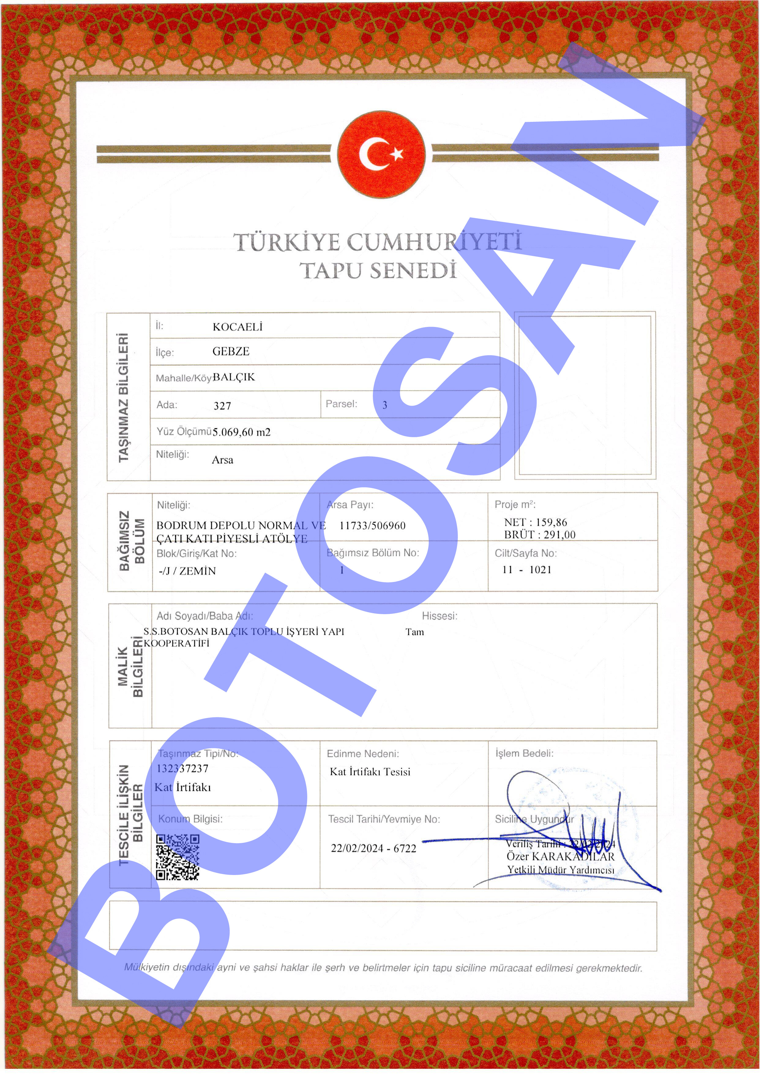 327-3 PARSEL KAT İRTİFAK TAPULARI J1