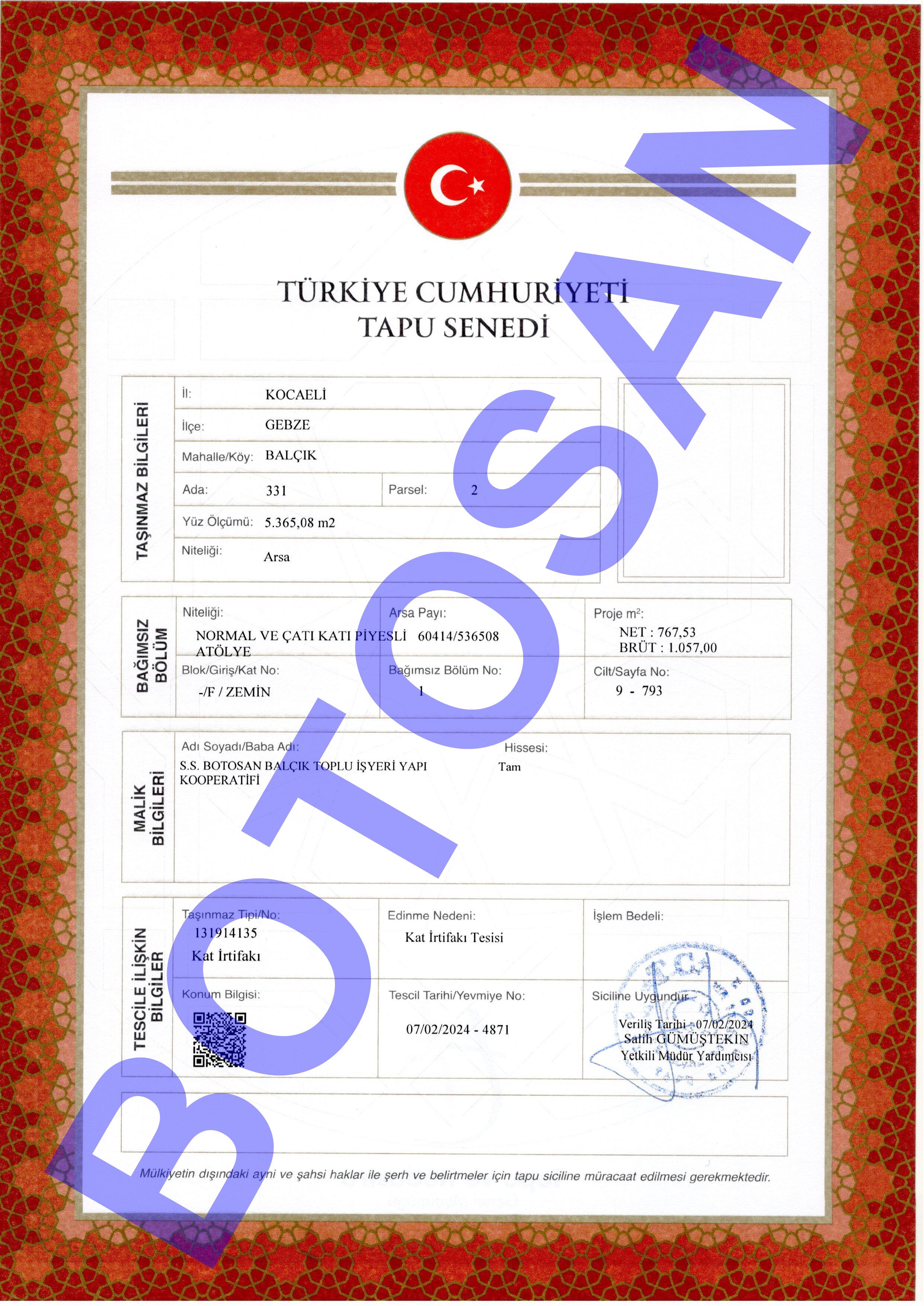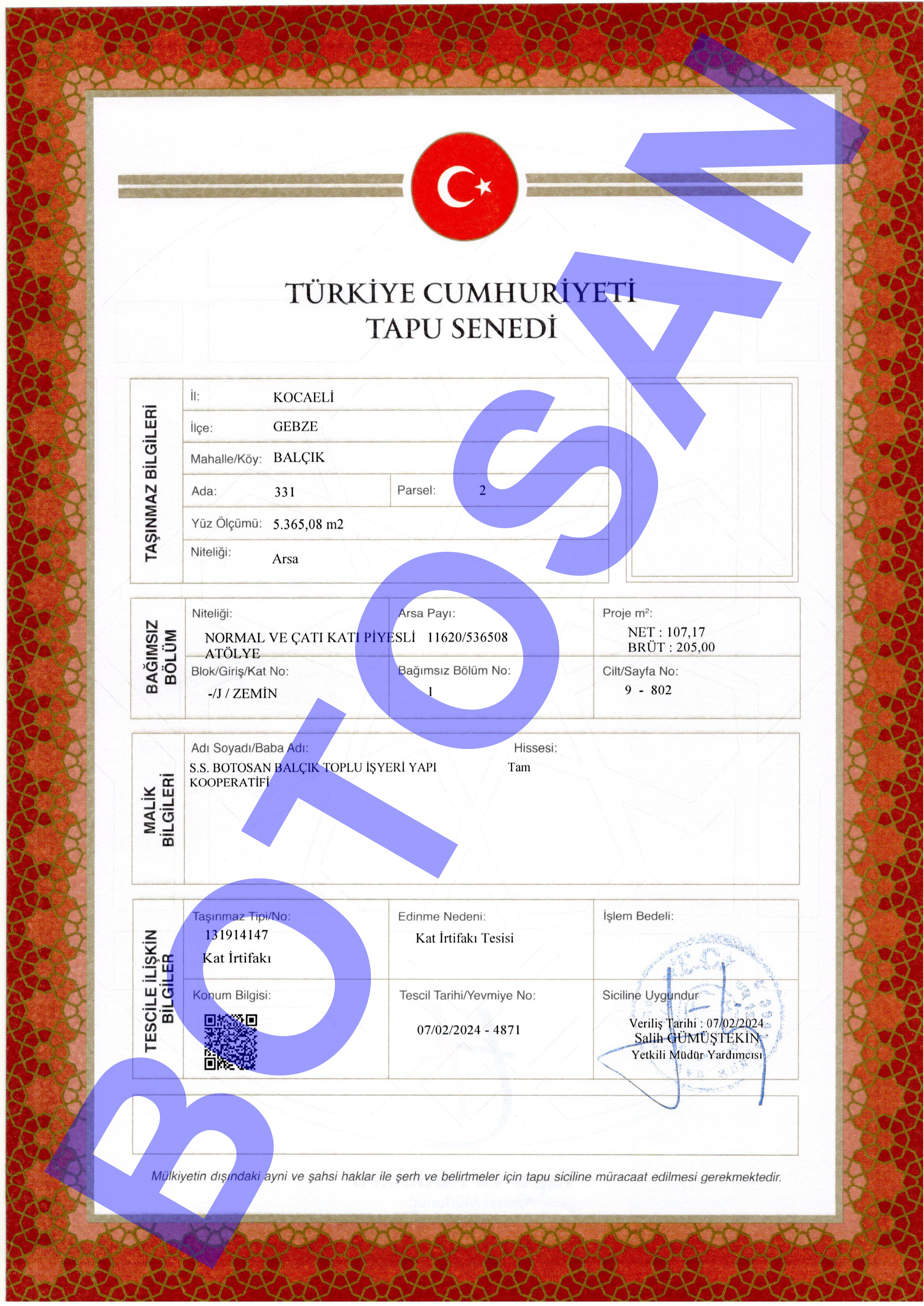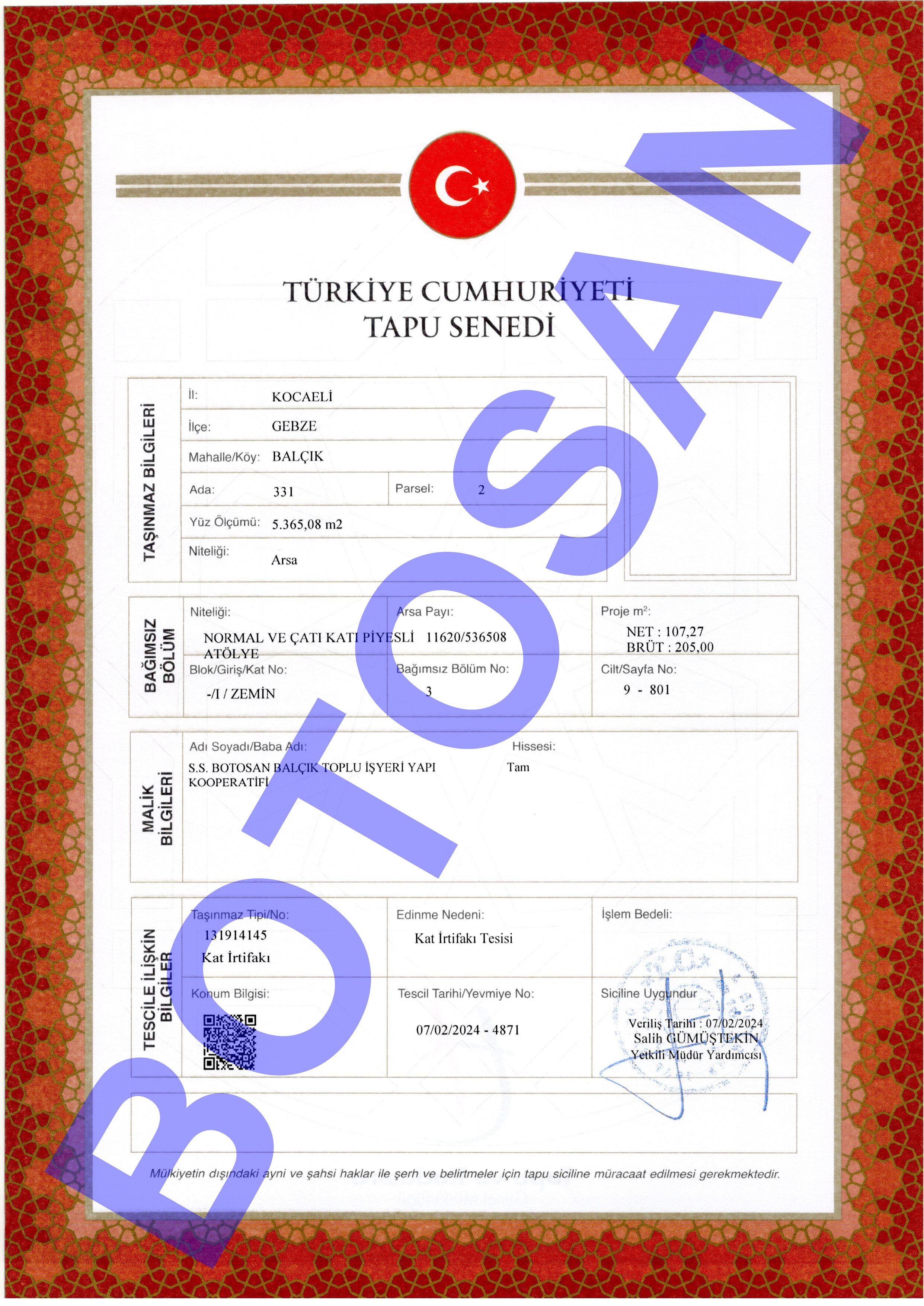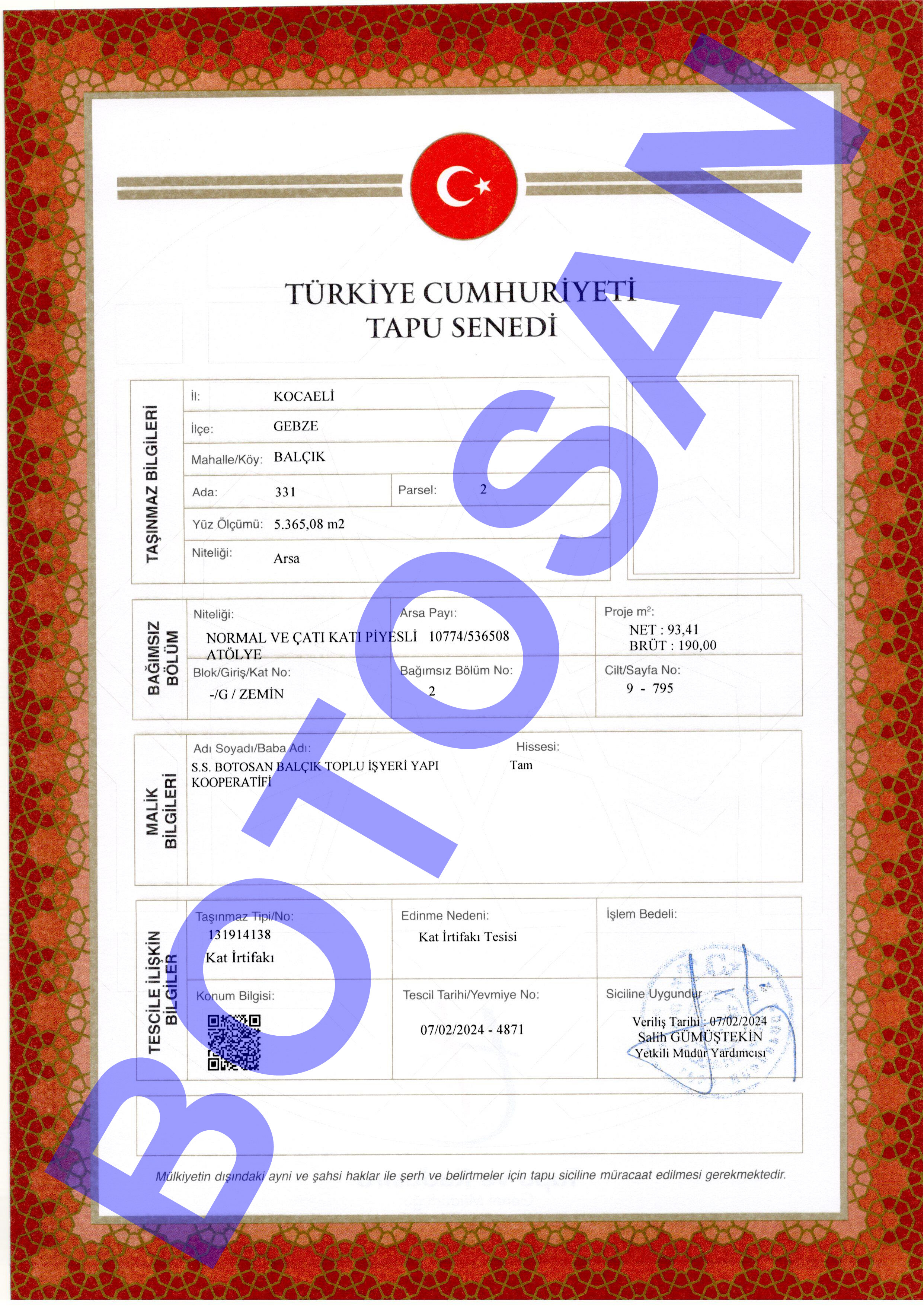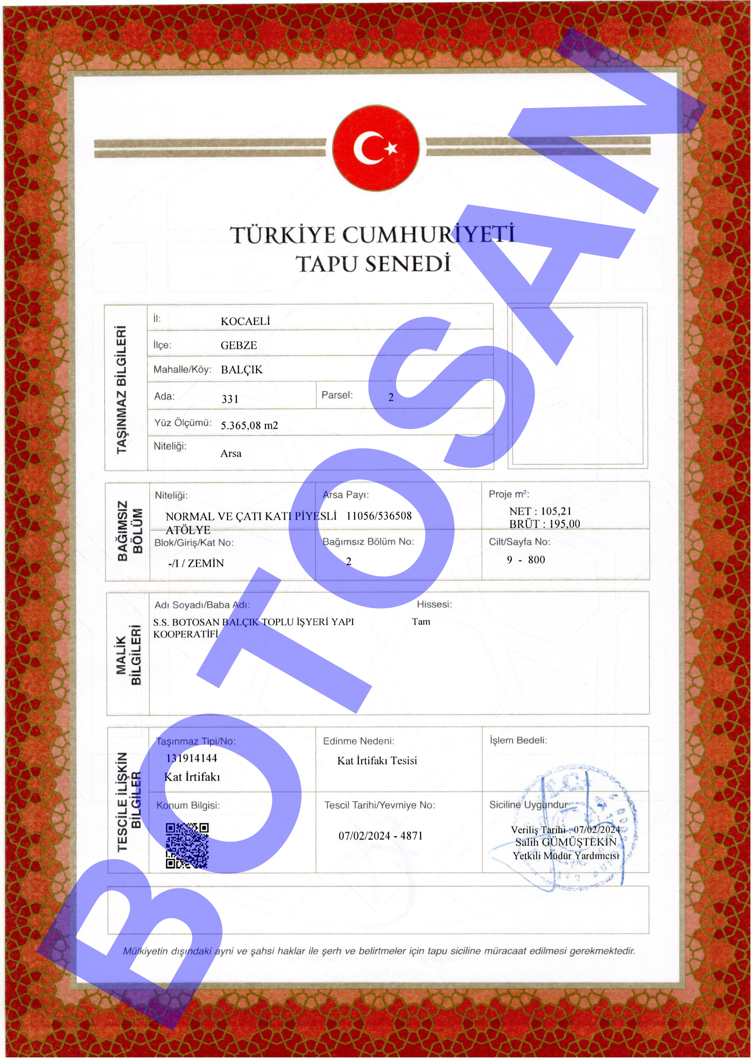 331ADA2PARSEL KAT İRTİFAKLI TAPULARI G1