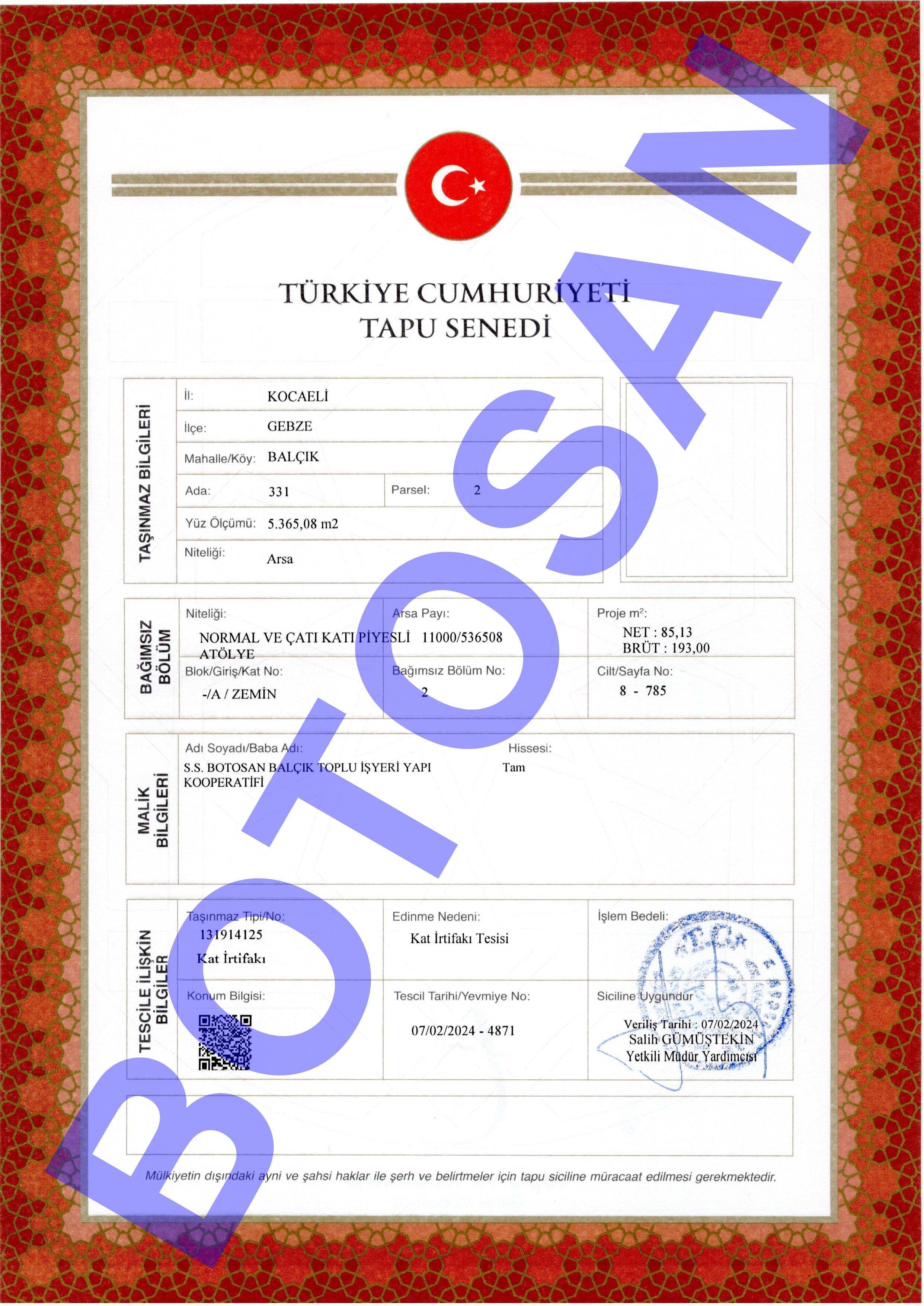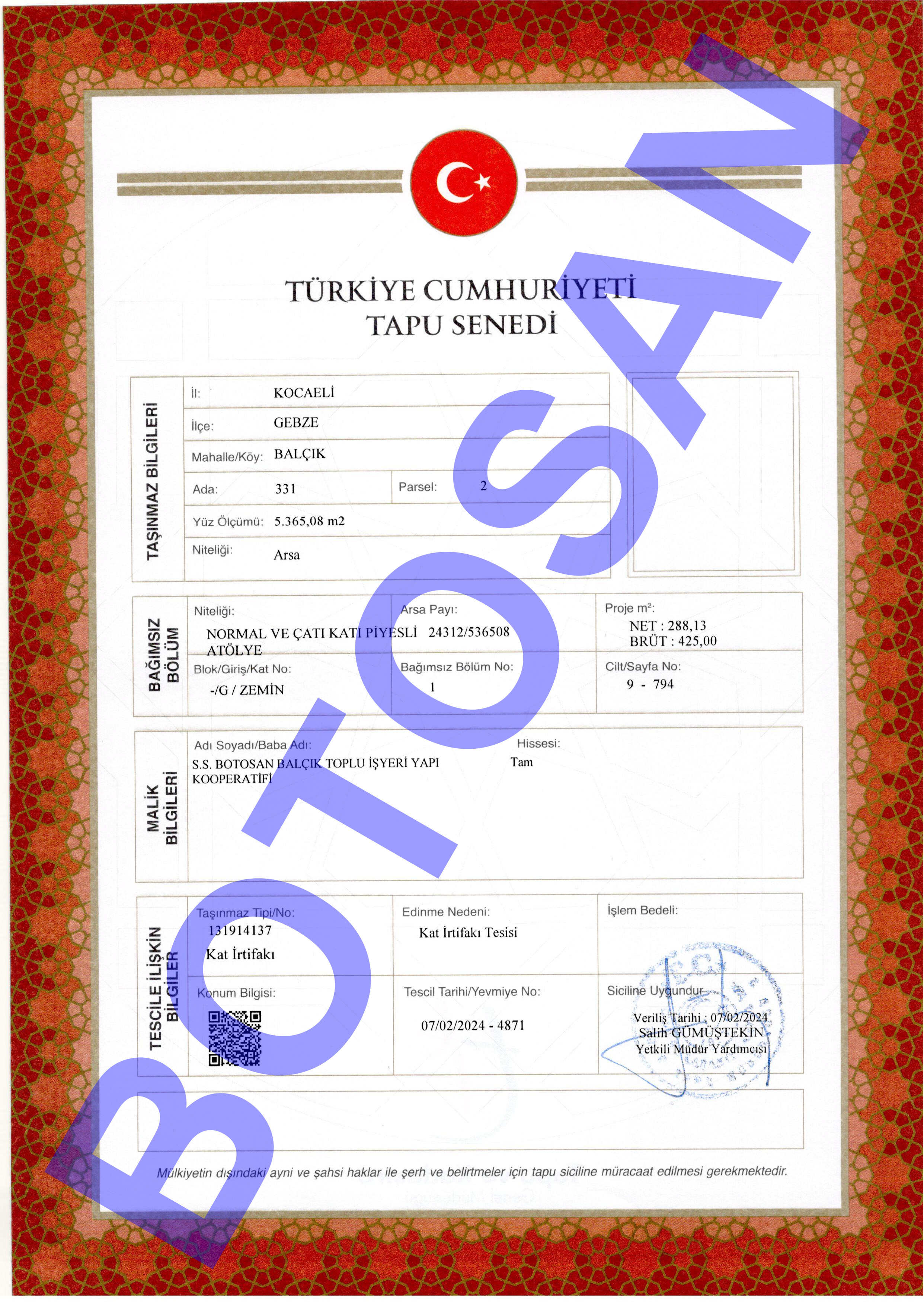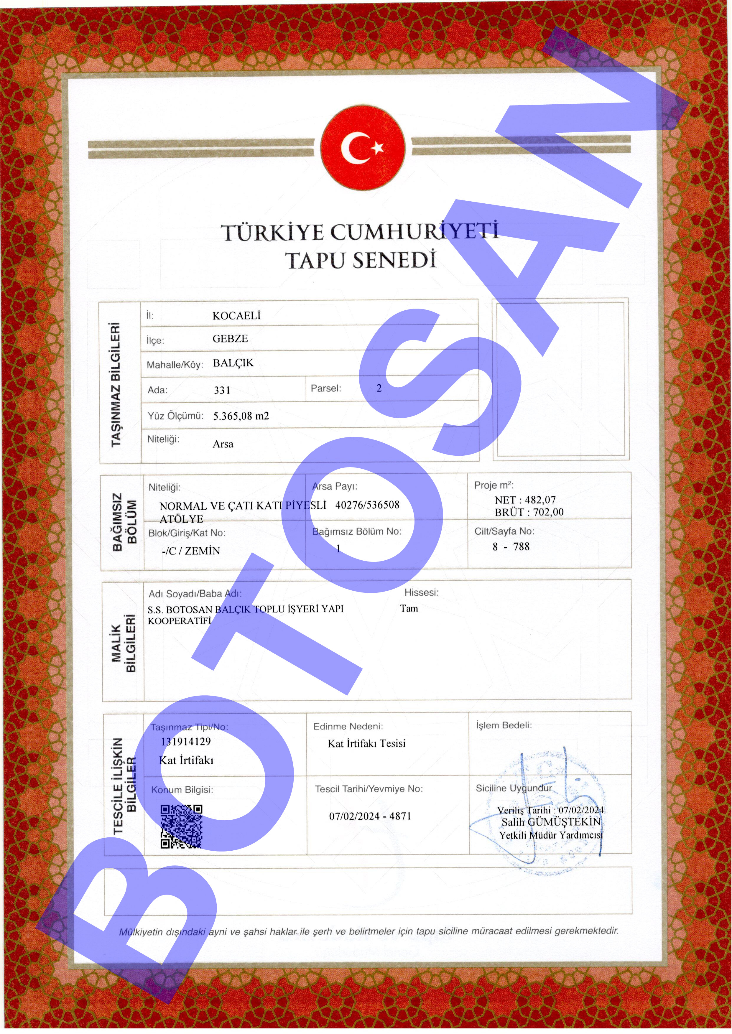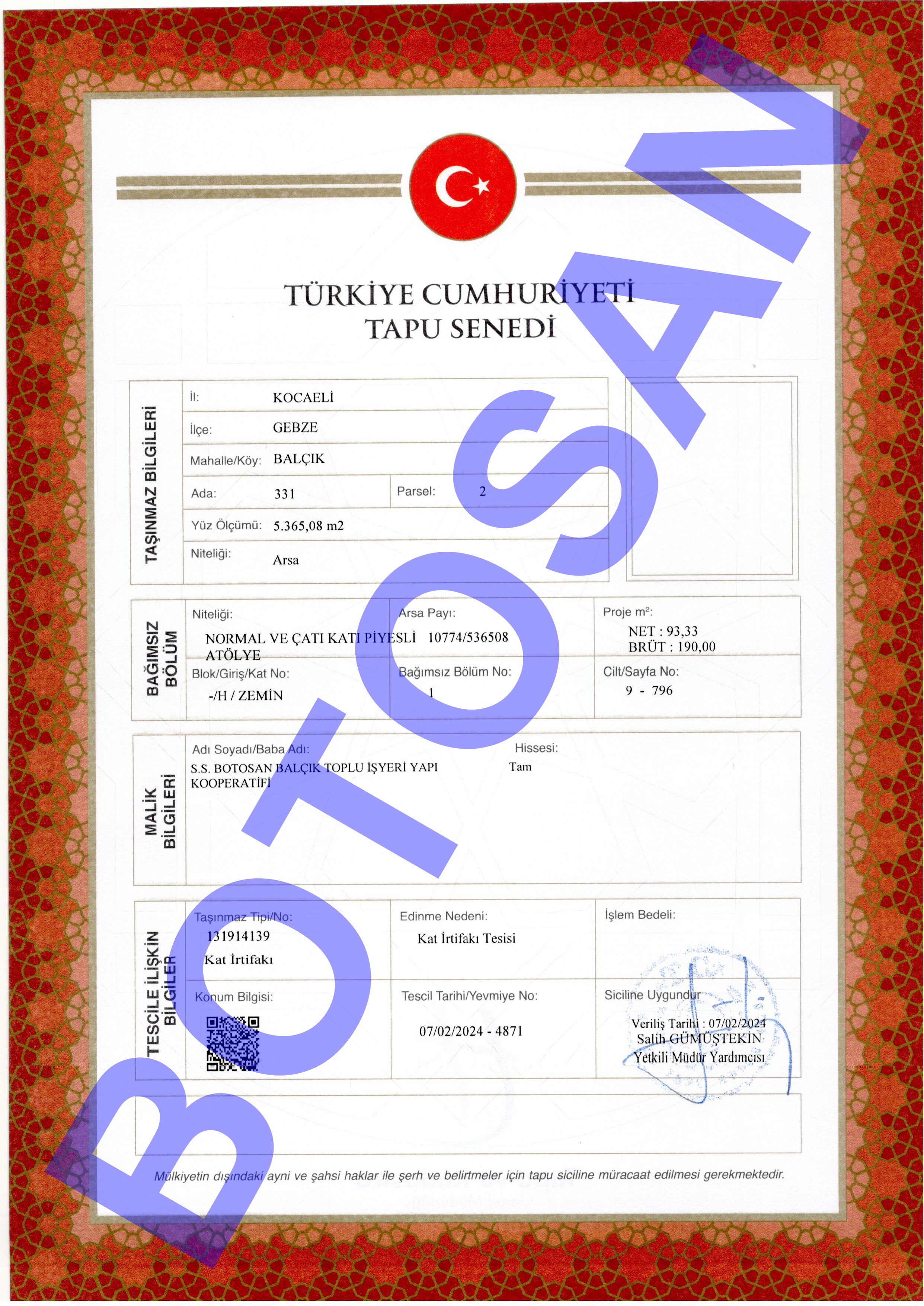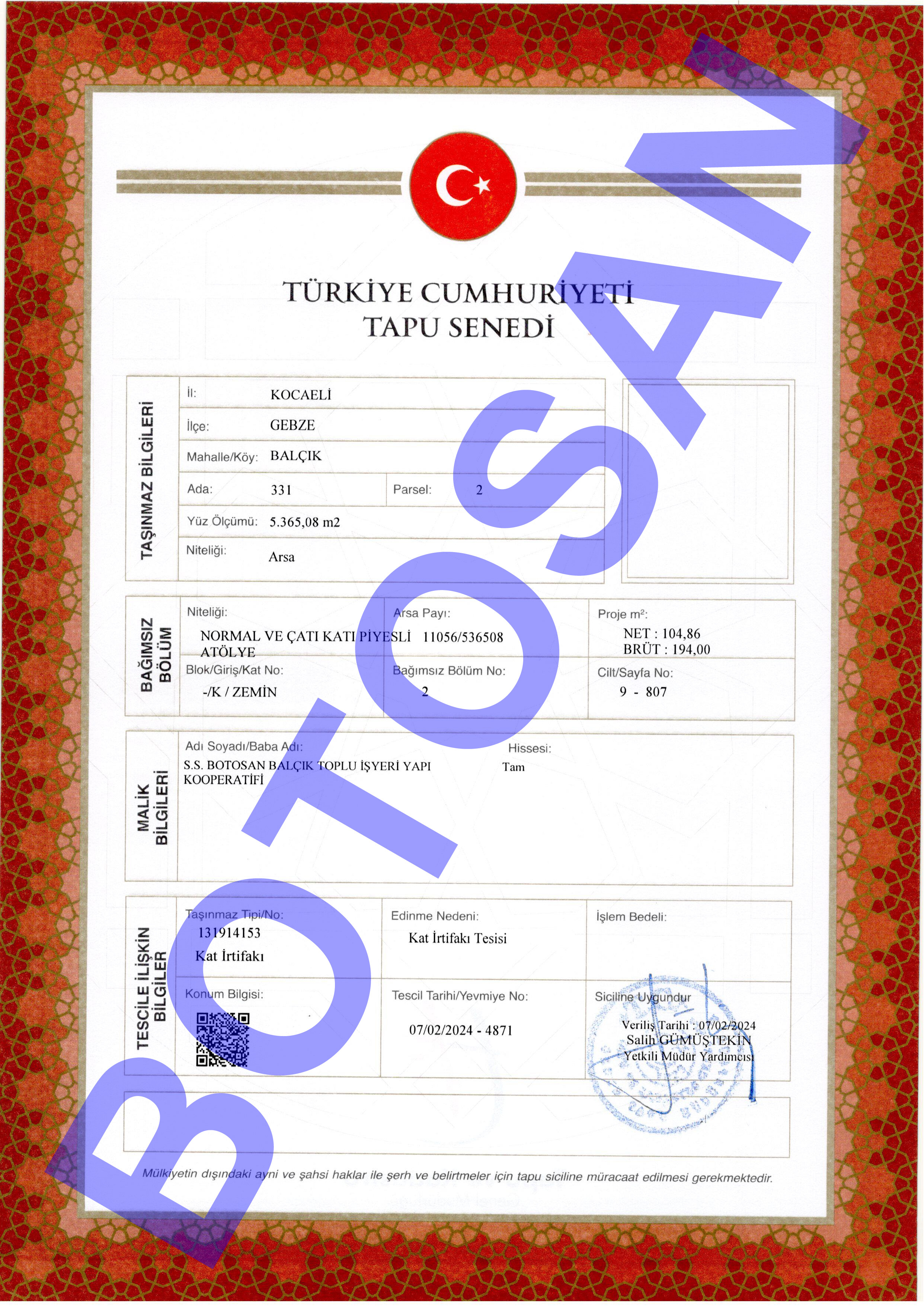 331ADA2PARSEL KAT İRTİFAKLI TAPULARI G1