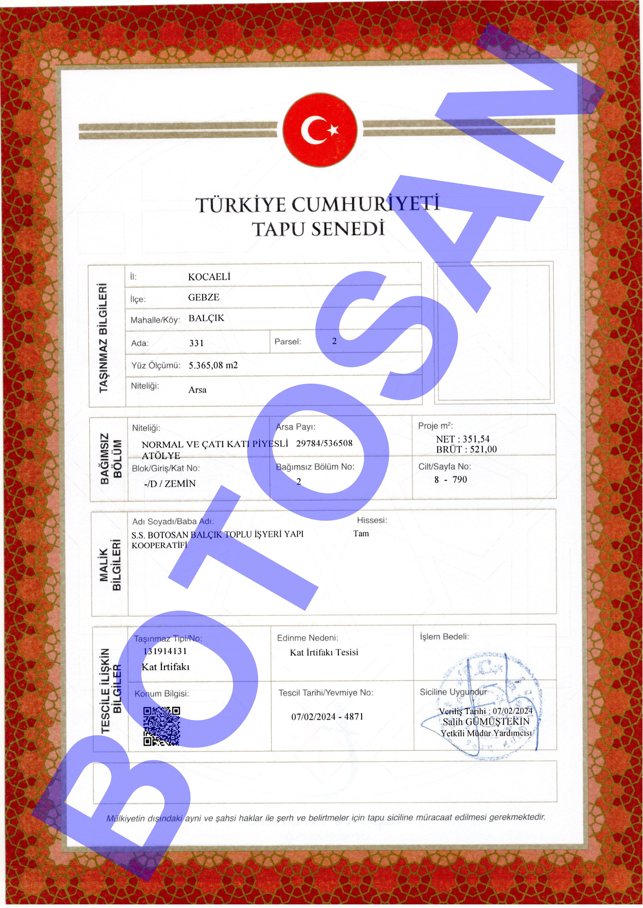 331ADA2PARSEL KAT İRTİFAKLI TAPULARI D1
