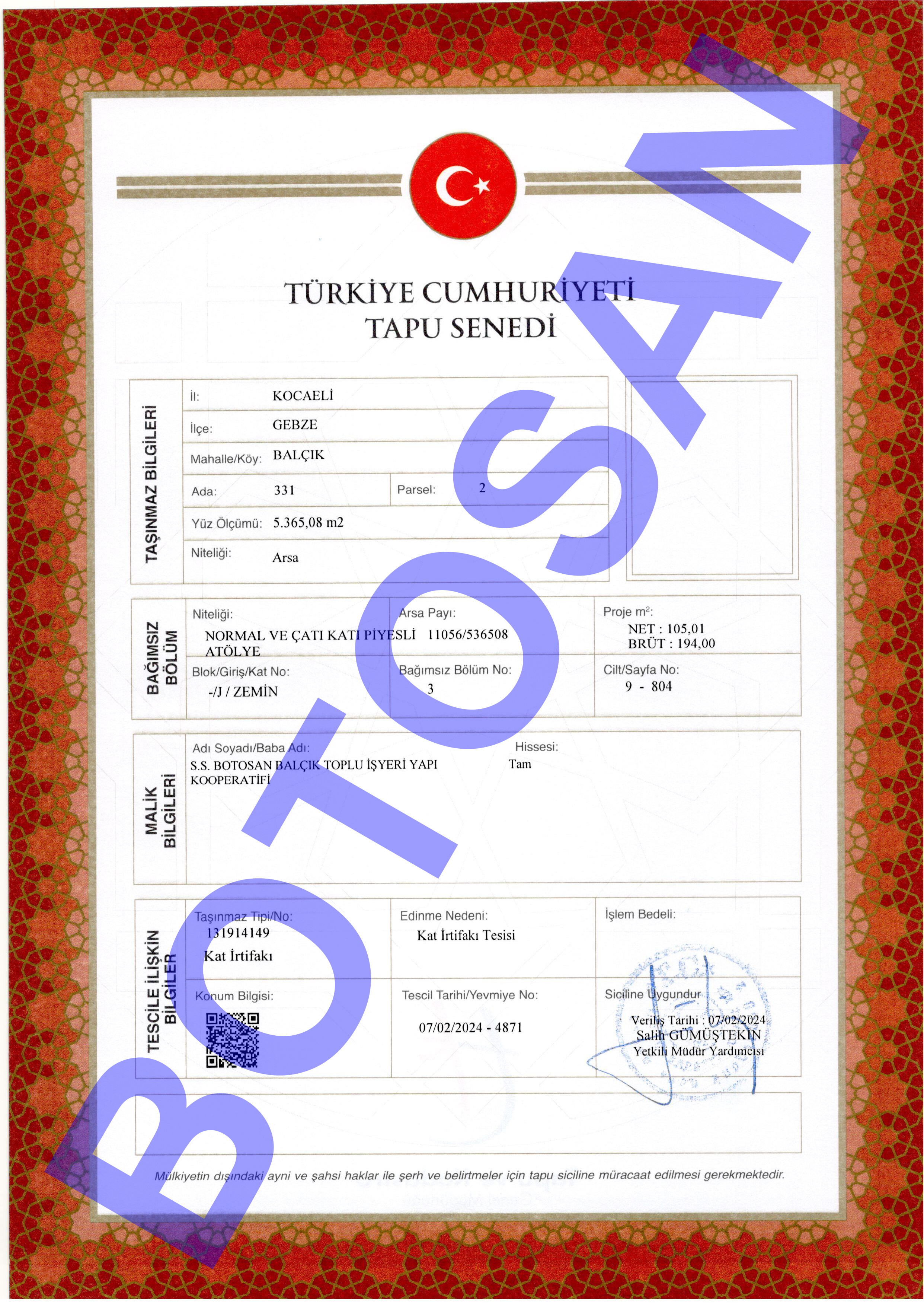331ADA2PARSEL KAT İRTİFAKLI TAPULARI J4