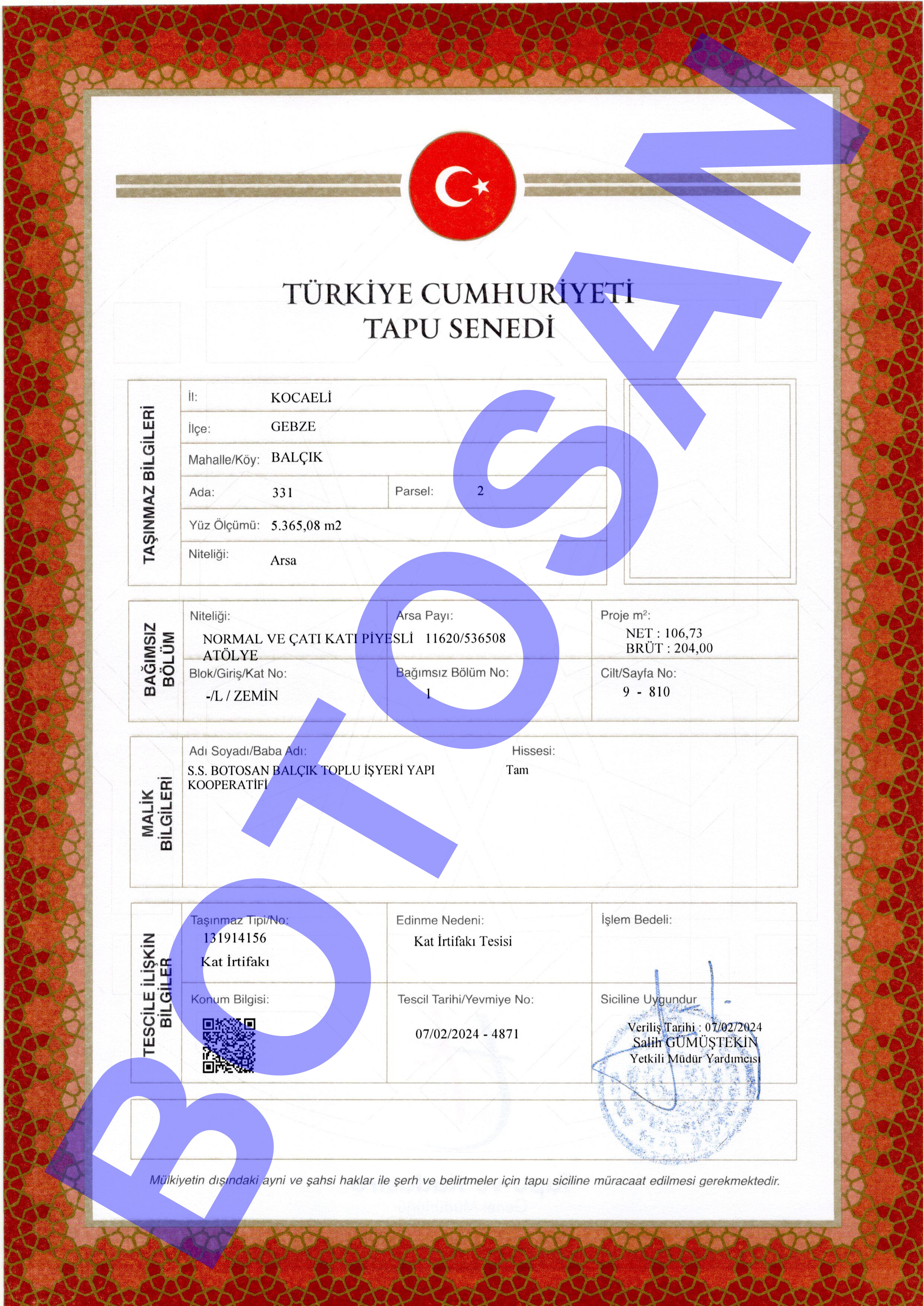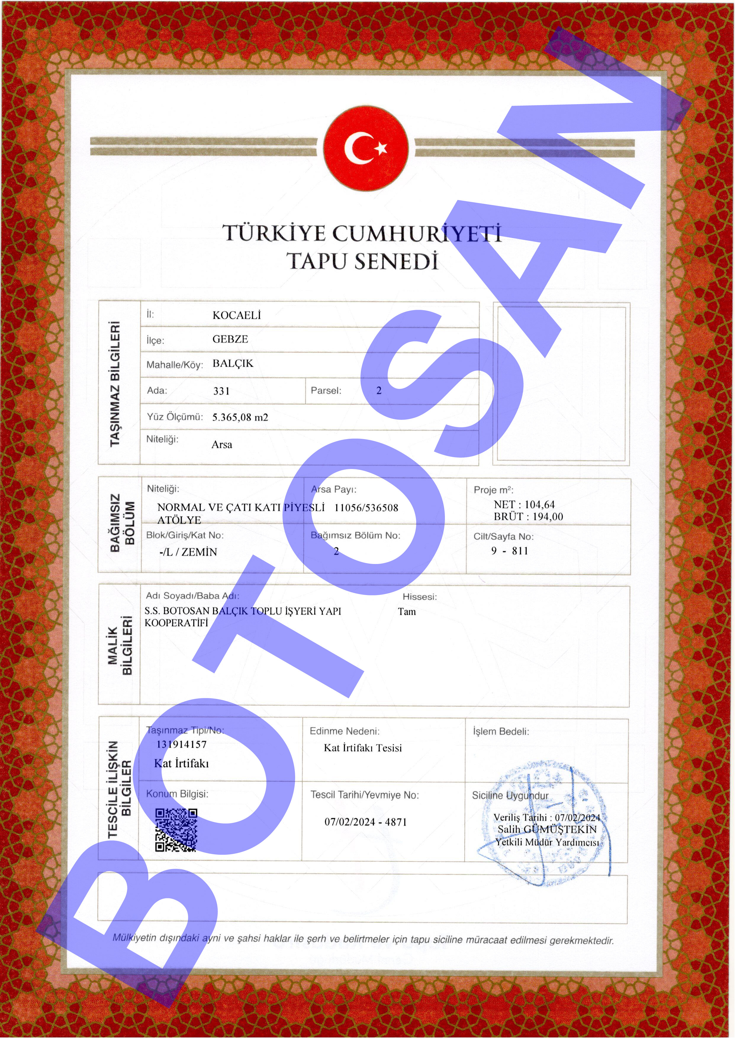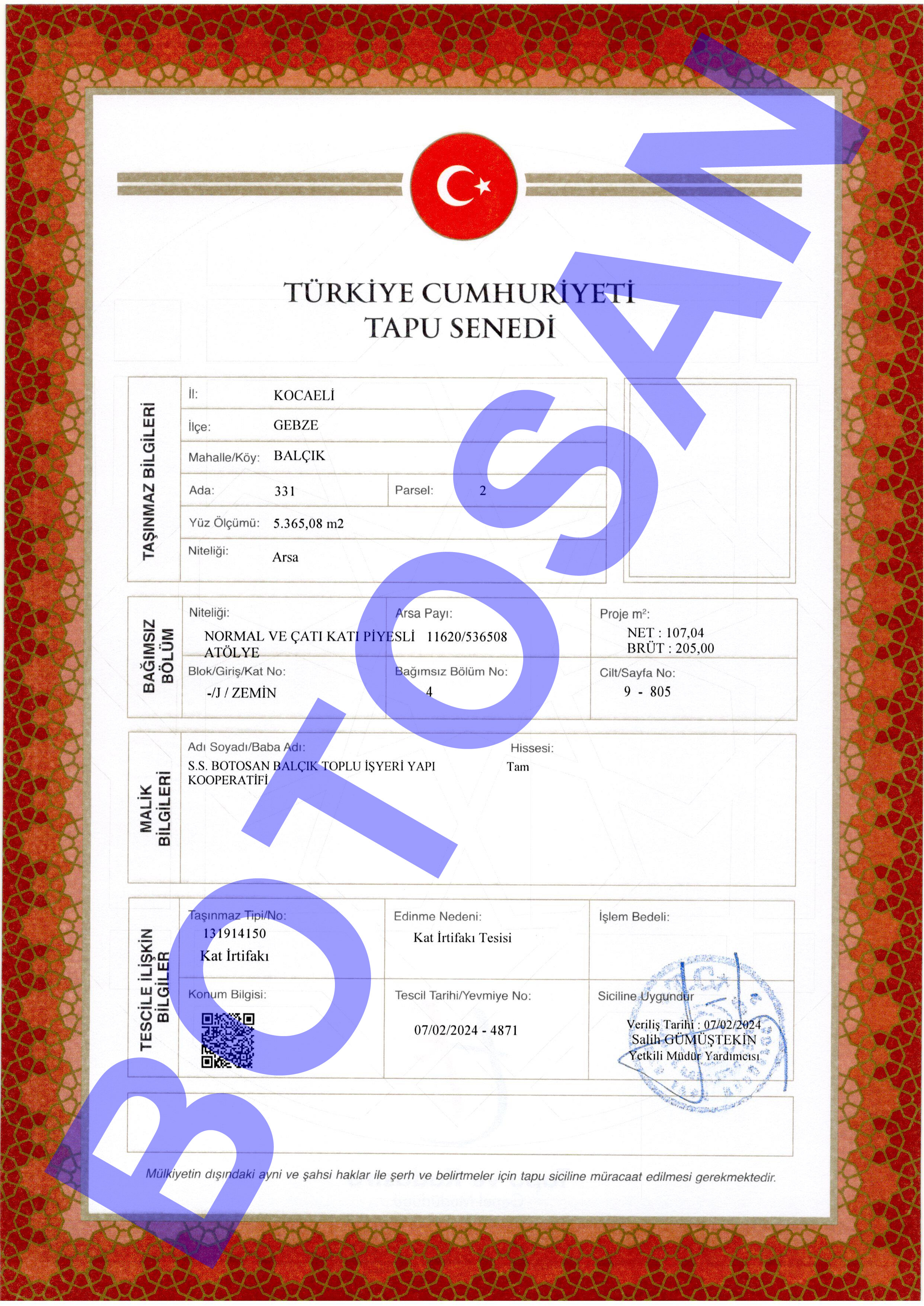 331ADA2PARSEL KAT İRTİFAKLI TAPULARI L4